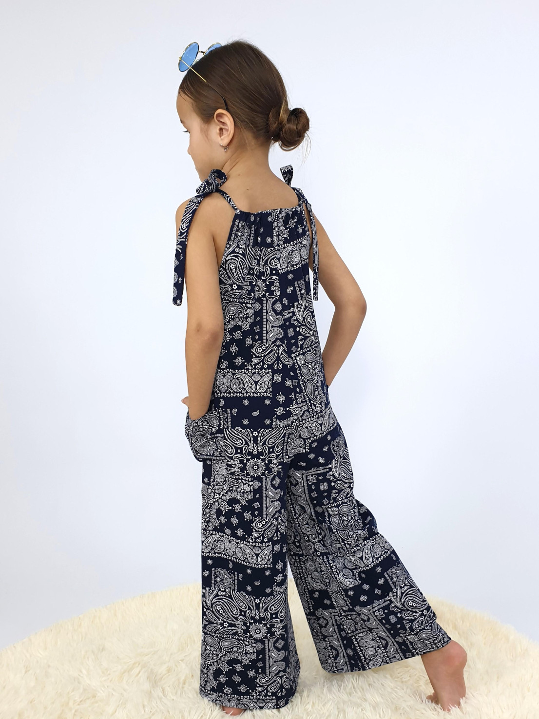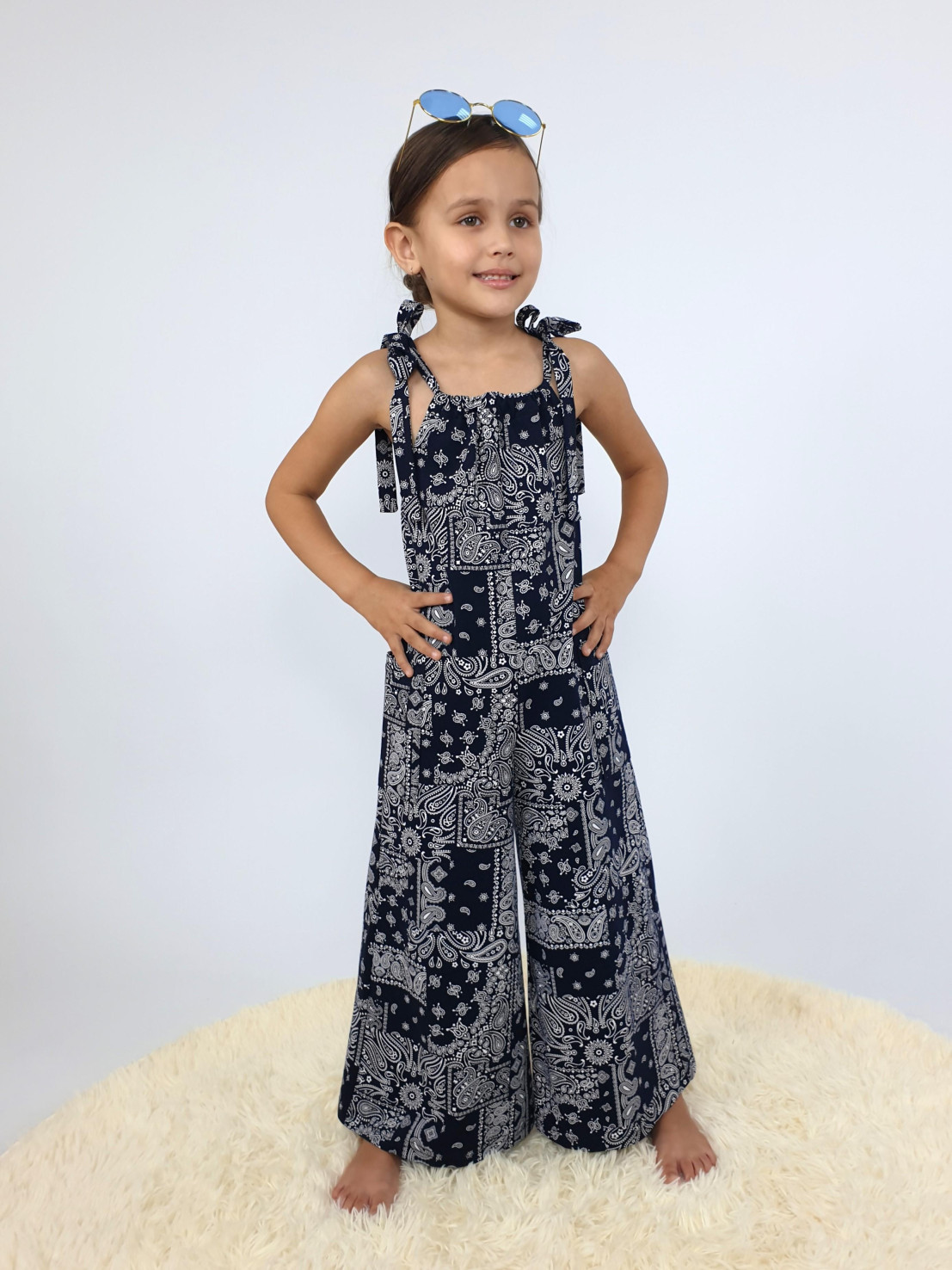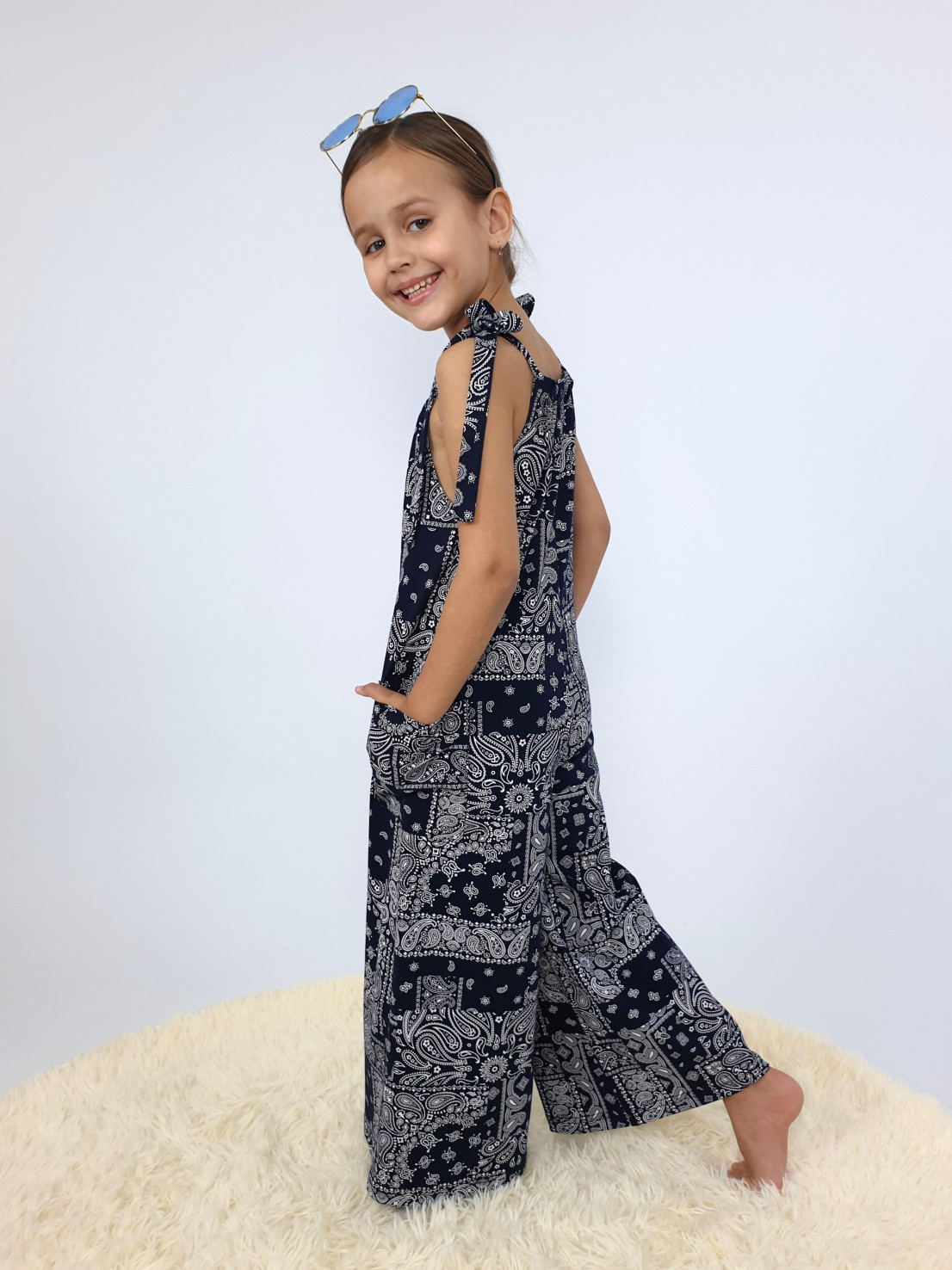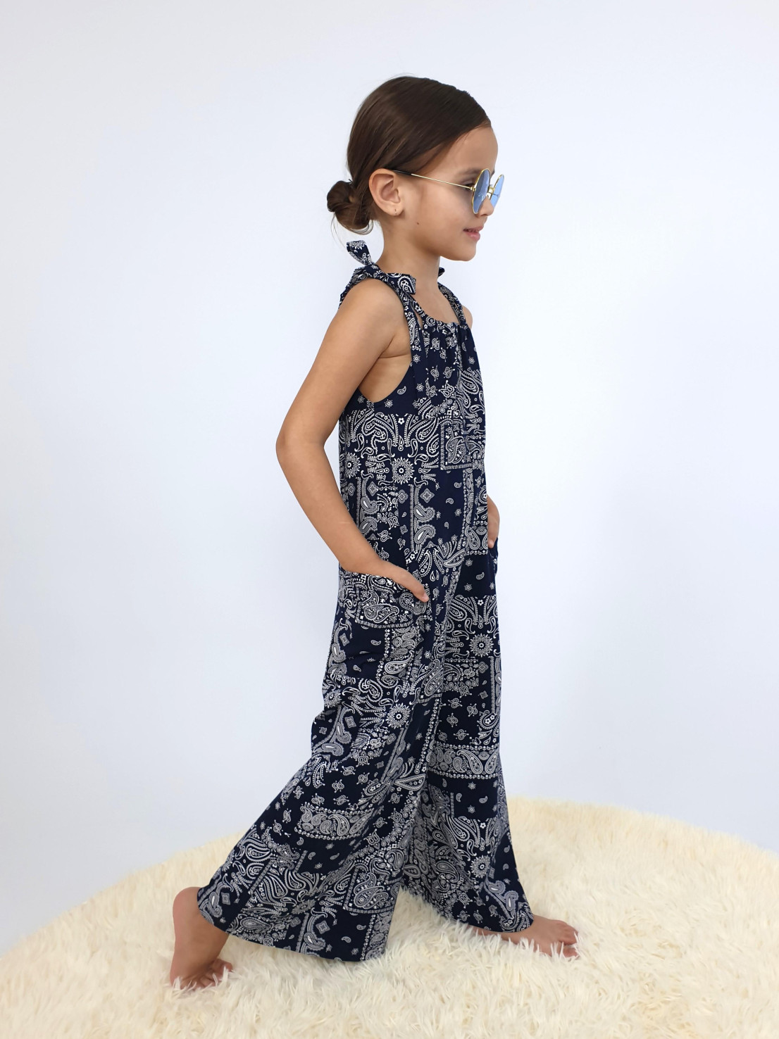 Кулирное полотно:100% х/б. Комбинезон-свободный,на завязках.Два накладных кармана сбоку.