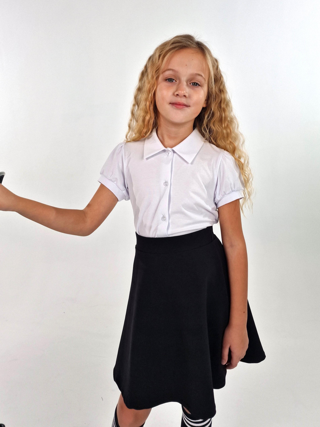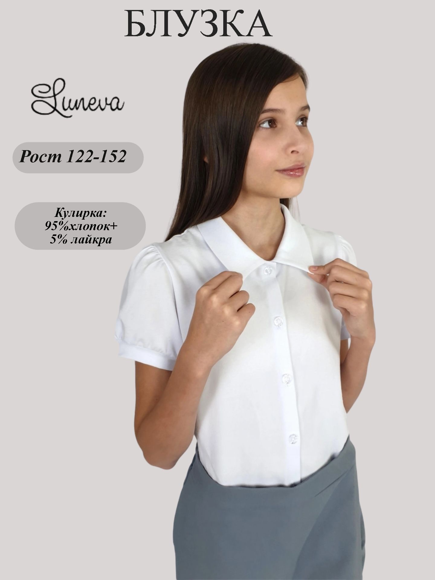 Изящная детская блузка от бренда Lunева — воплощение элегантности! Выполнена из комфортного кулирного полотна (95% хлопок, 5% лайкра), обеспечивающего свободу движений и комфорт в носке. Стильный прямой крой, короткий рукав-фонарик с декоративной манжетой и отложной воротничок придают образу нежность и утонченность. Белый цвет универсален и подходит ко многим образам. Сделано в России, идеально для юных модниц!Кулирное полотно:95% х/б.,5% лайкра. Блузка-прямой силуэт,короткий рукав "фонарик",внизу на манжете.В горловине отложной воротник.Застежка центральная на пуговицы.