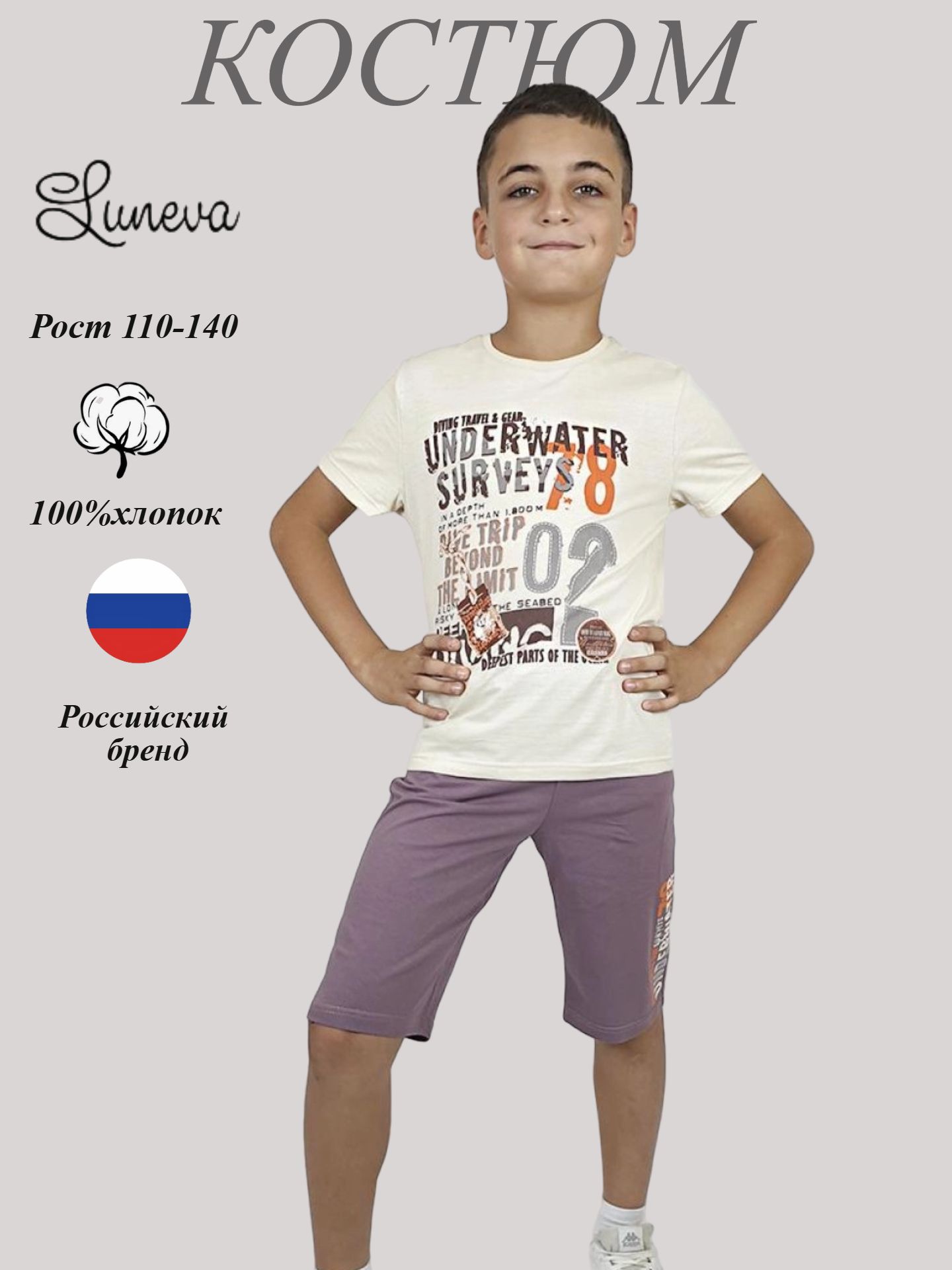 Этот стильный комплект идеально подойдет вашему малышу! Сочетание удобной фуфайки и удлиненных шорт обеспечит комфорт даже в самый активный день. Принт на изделиях добавит яркости и индивидуальности образу. Отзывчивый кулирный трикотаж из чистого хлопка дарит коже нежность прикосновения и свободу движений. Комфорт, качество и мода от бренда "Lunева" – ваш верный выбор!