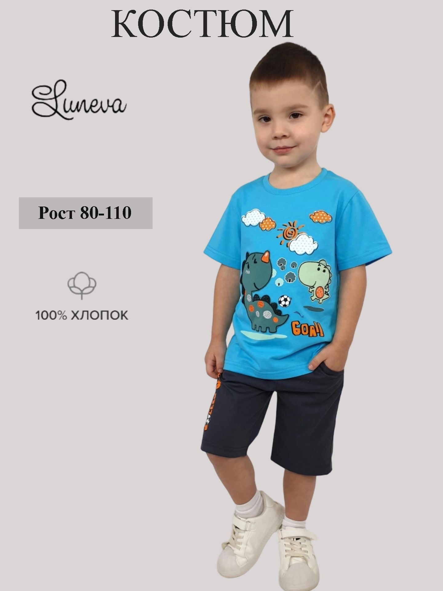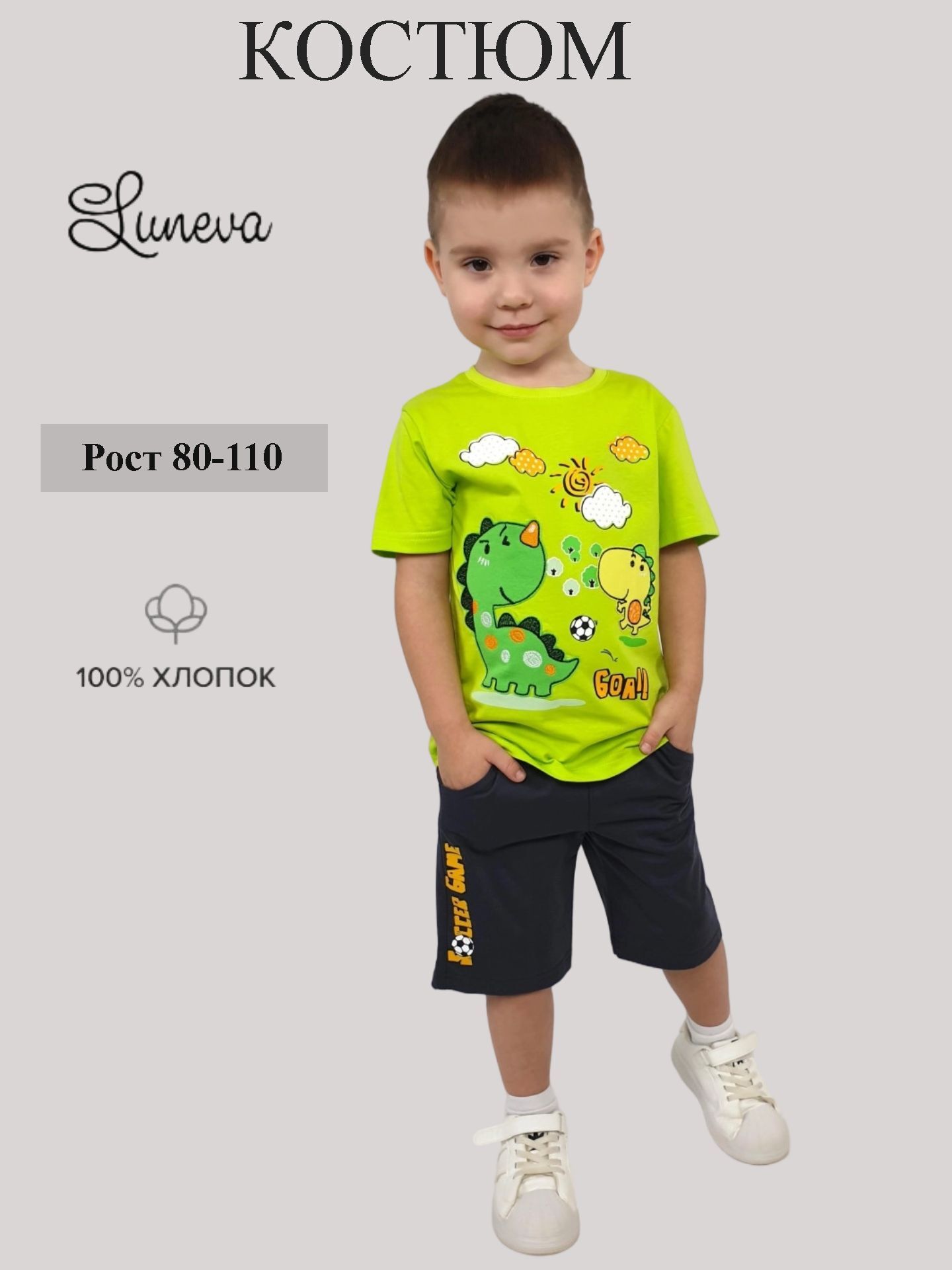 Детский костюм – идеальный выбор для вашего малыша! Удобные шорты с эластичным поясом и фуфайка свободного кроя подарят комфорт даже в активный день. Стильный дизайн с яркой печатью и вышивкой привлечет внимание окружающих. Качественное исполнение из натурального хлопка обеспечивает безопасность кожи ребенка и отличную воздухопроницаемость. Идеально подойдет для прогулок, игр и повседневного ношения. Купите сейчас по выгодной цене комплект детской одежды от бренда Luneva и порадуйте своего маленького героя стильным нарядом!