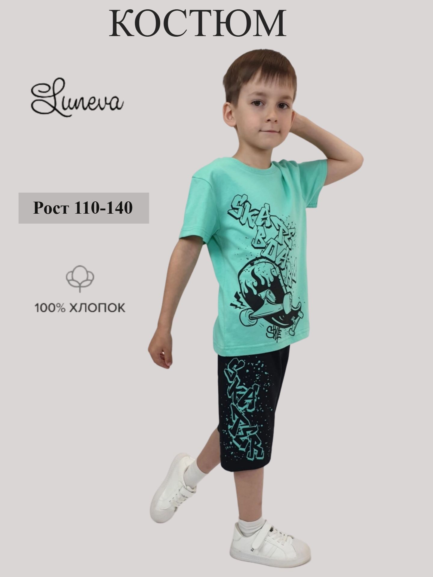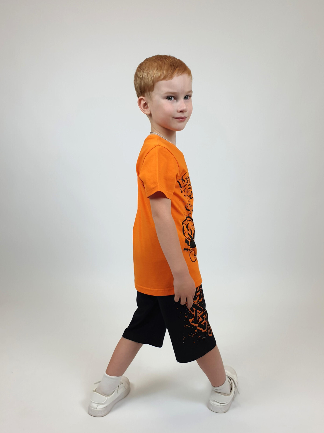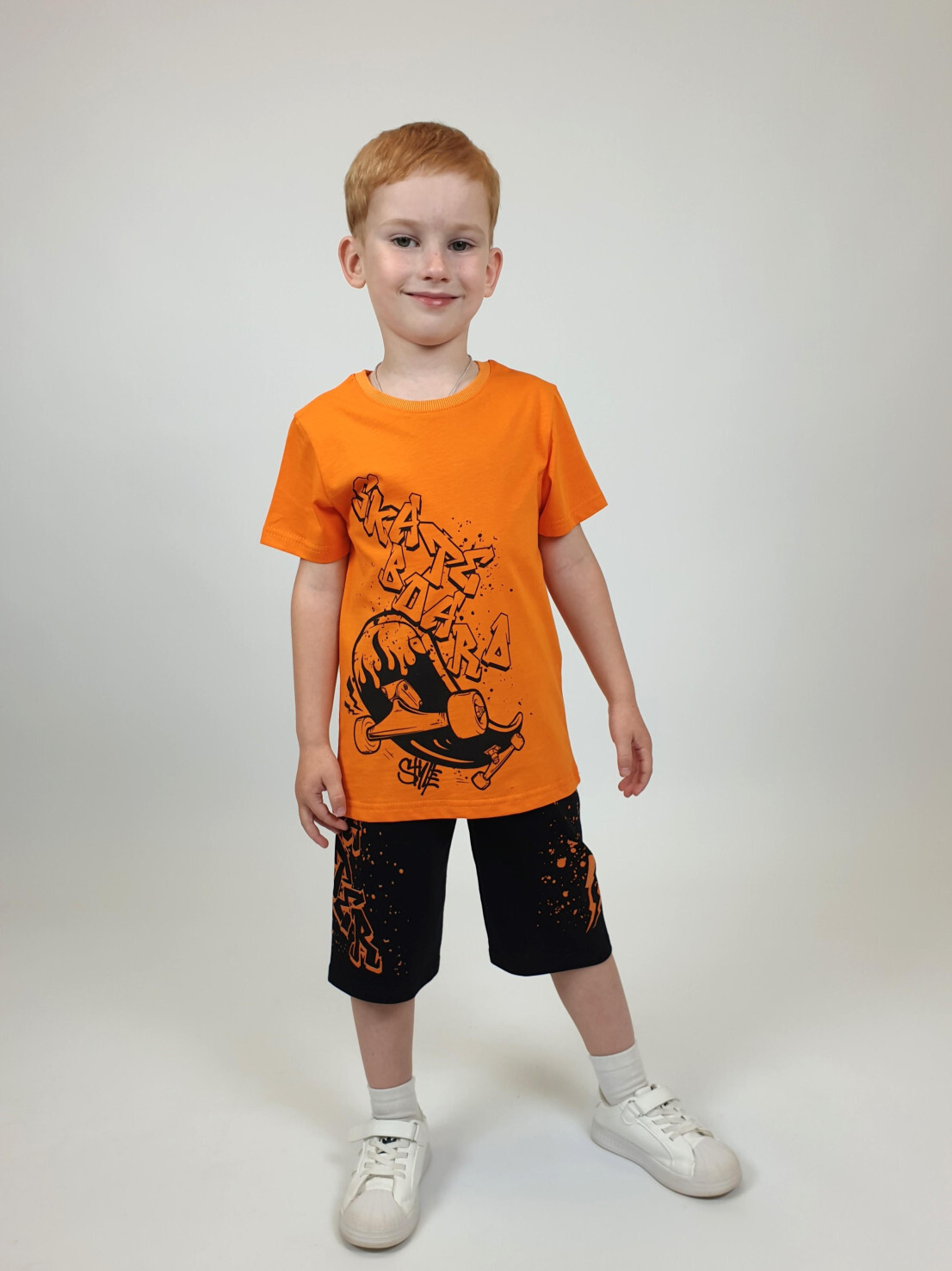 Кулирное полотно: 100% х/б. Джемпер-прямой,короткий втачной рукав,перед с печатью.Горловина обработана ластиком. Шорты-удлиненные с притачным поясом,с резинкой.без бокового шва.Печать сбоку.