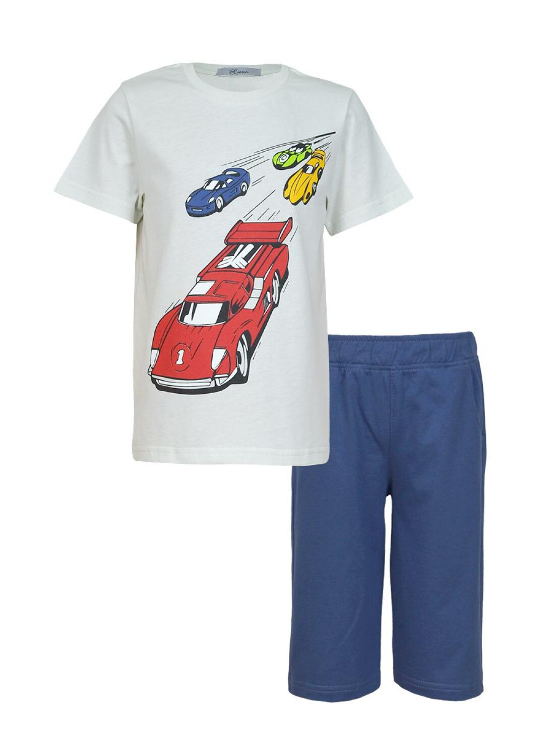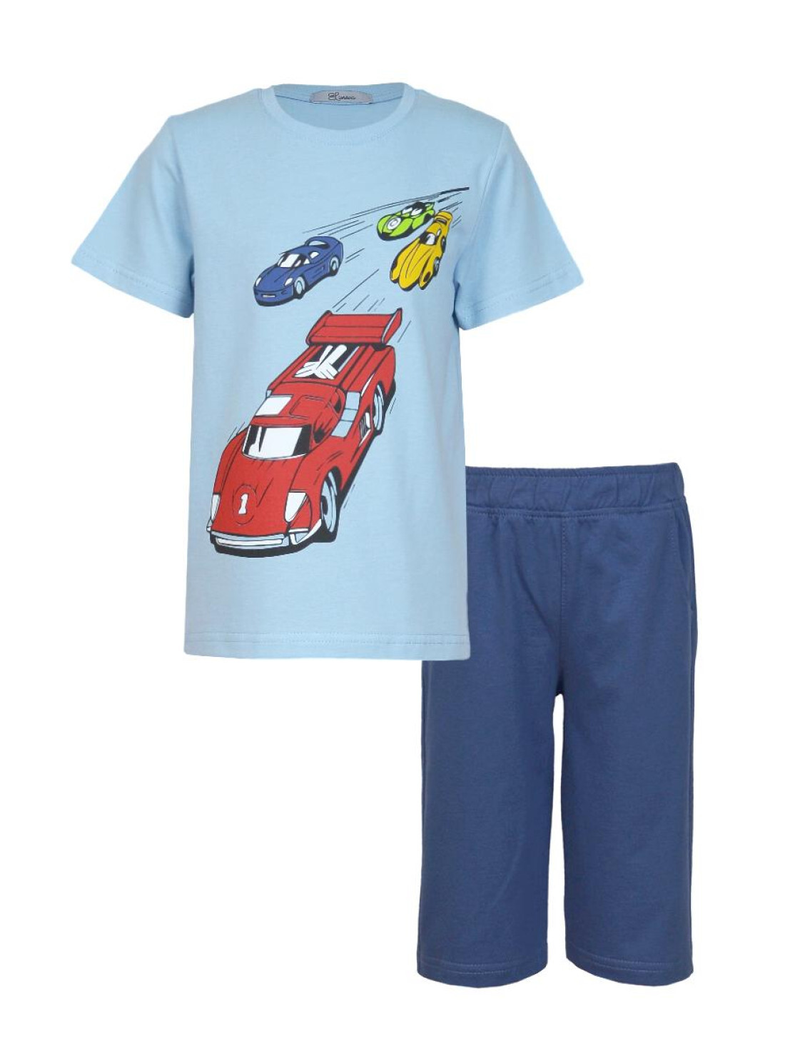 улирное полотно: 100% х/б. Джемпер-прямой,перед и спинка с печатью.Короткий,втачной рукав.Горловина обработана ластиком. Шорты-удлиненные с притачным поясом и резинкой.Два боковых кармана.
