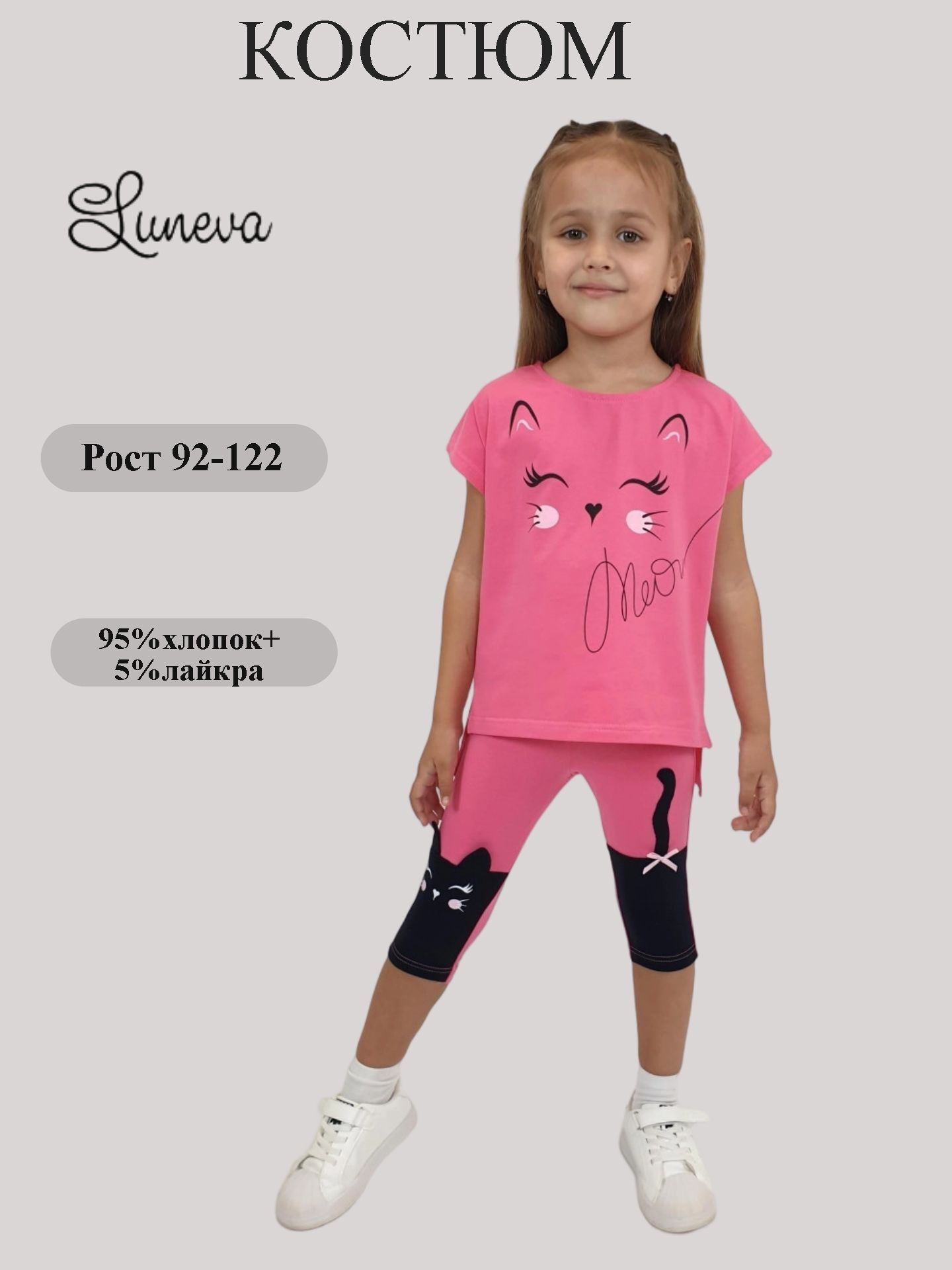 Костюм от фабрики детской одежды Лунева Н.Г.-это идеальный выбор для маленькой принцессы! Комплект из фуфайки и лосин выполнен из мягкого кулира с добавлением эластана, обеспечивающего комфорт и свободу движений. Стильный дизайн с аппликациями и яркими деталями подчеркнет индивидуальность вашего ребенка и станет украшением любого гардероба. Удобен в носке и прост в уходе – ваш малыш будет радовать вас своим очарованием каждый день!