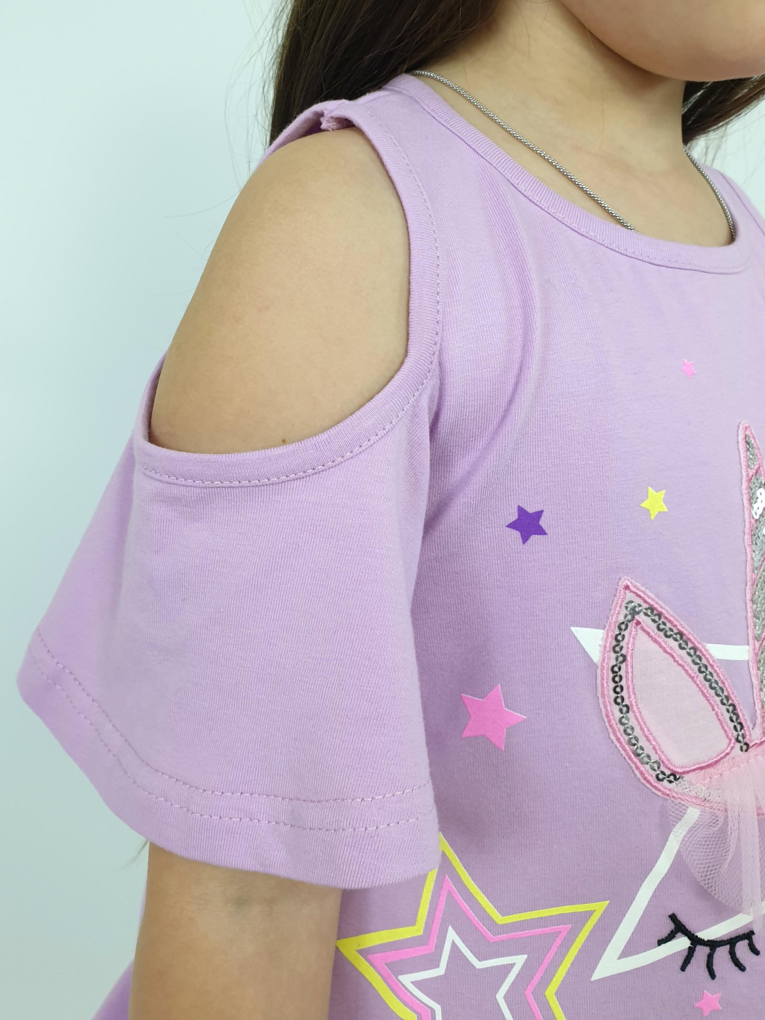 Привлекательный костюмчик для маленьких модниц! Комфорт кулира, изысканность кроя и яркость декоративных элементов создадут малышке настроение праздника каждый день!
