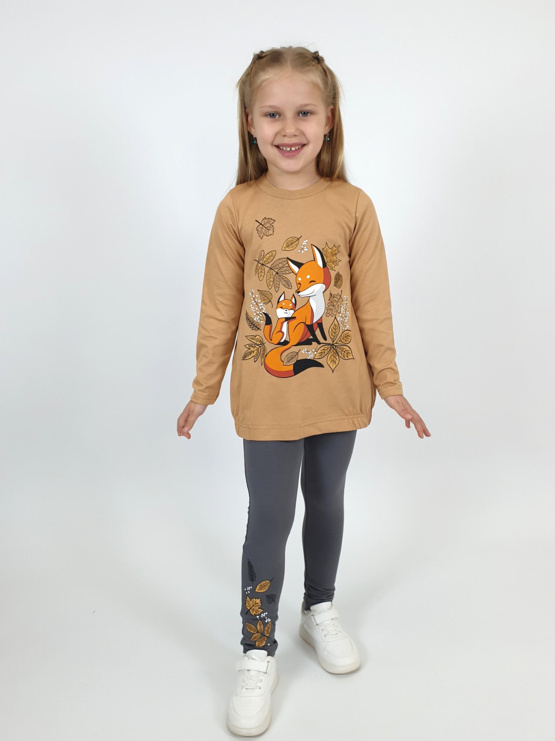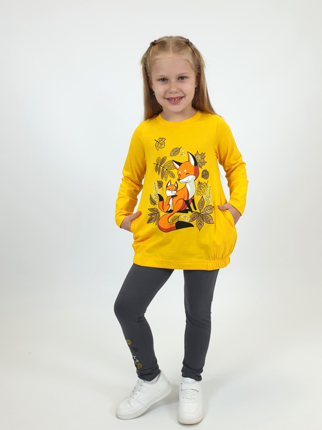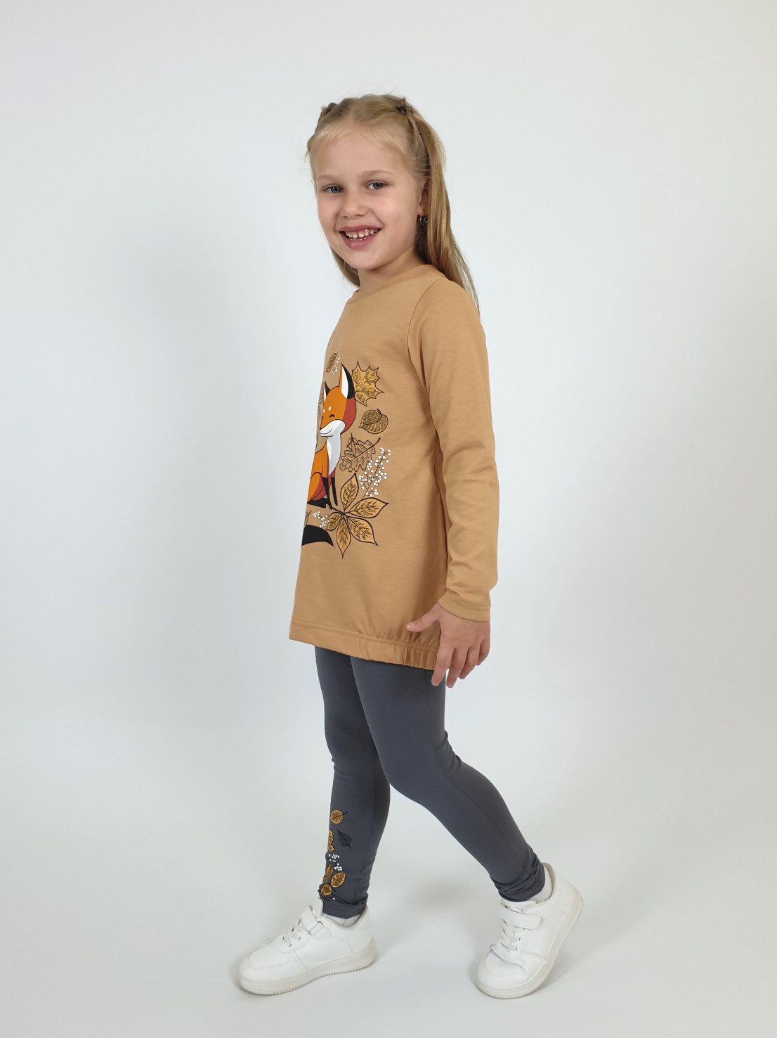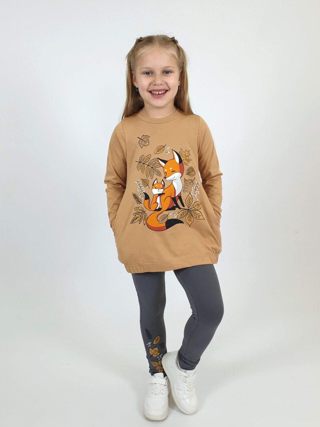 Этот уютный комплект от бренда Lunева идеально подойдет для прогулок и повседневного образа! Верх – джемпер свободного кроя из мягкого 100%-го хлопка с стильной принтированной вставкой и удобными карманами. Нижняя часть – лосины с эластичным составом (95% хлопка и 5% лайкры), обеспечивающим комфорт и свободу движений. Элегантность дизайна сочетается с практичностью материалов, созданных в России.