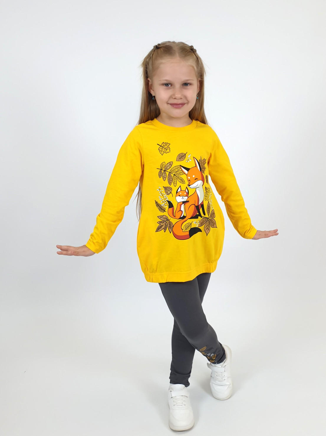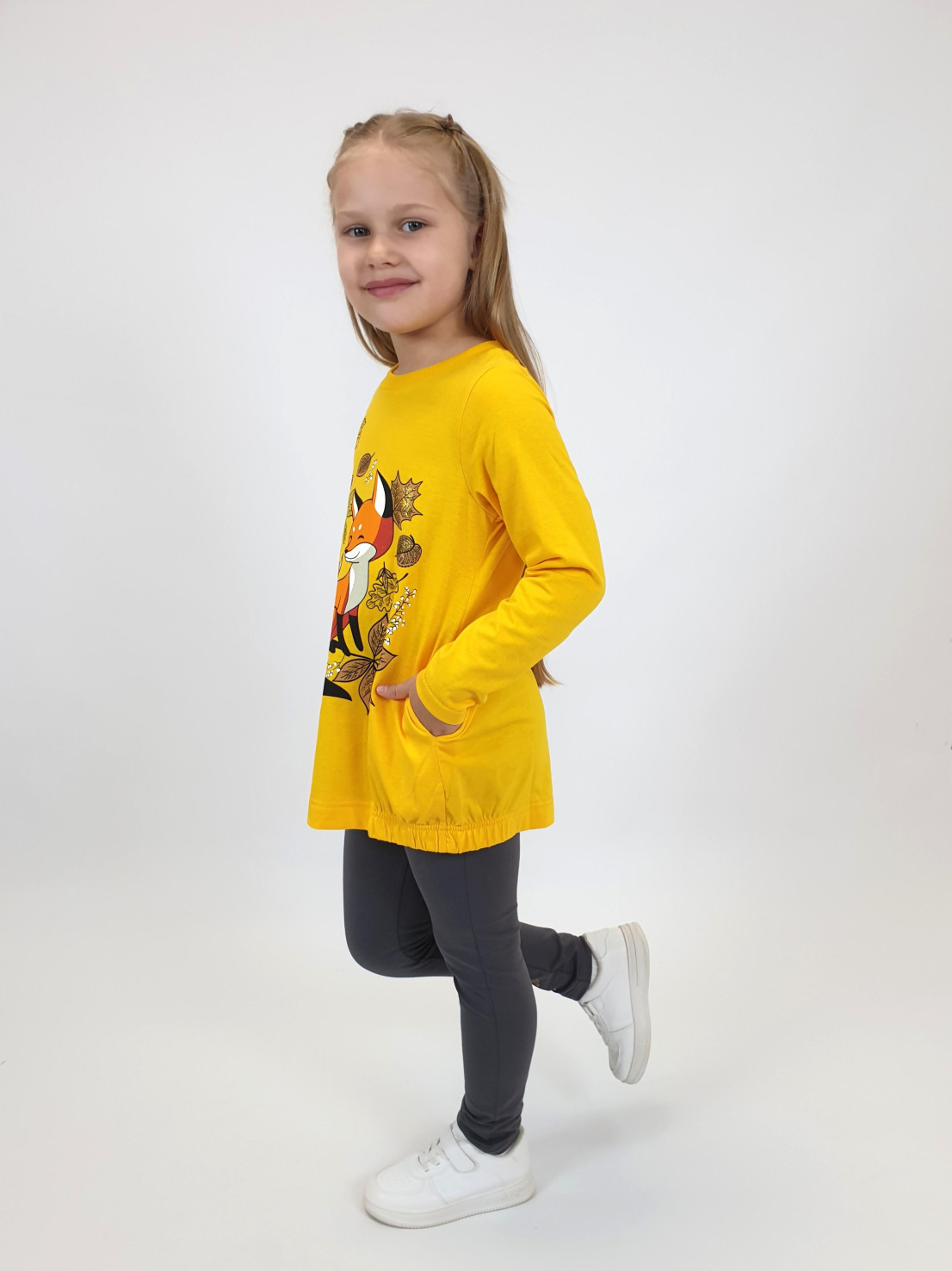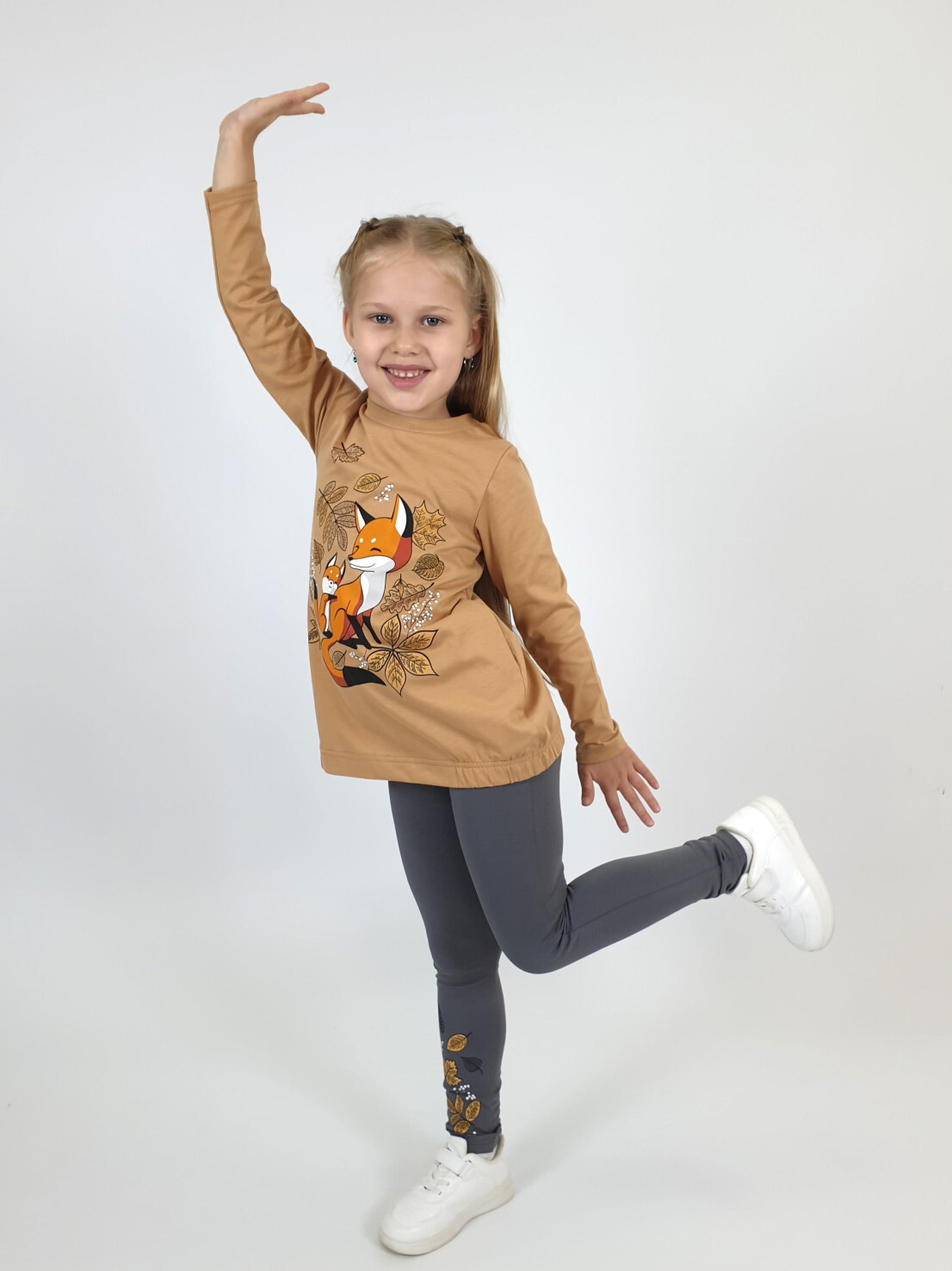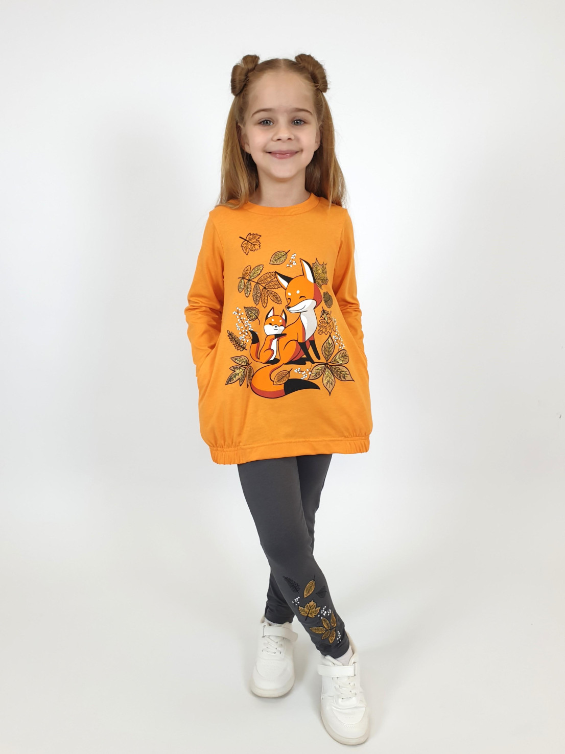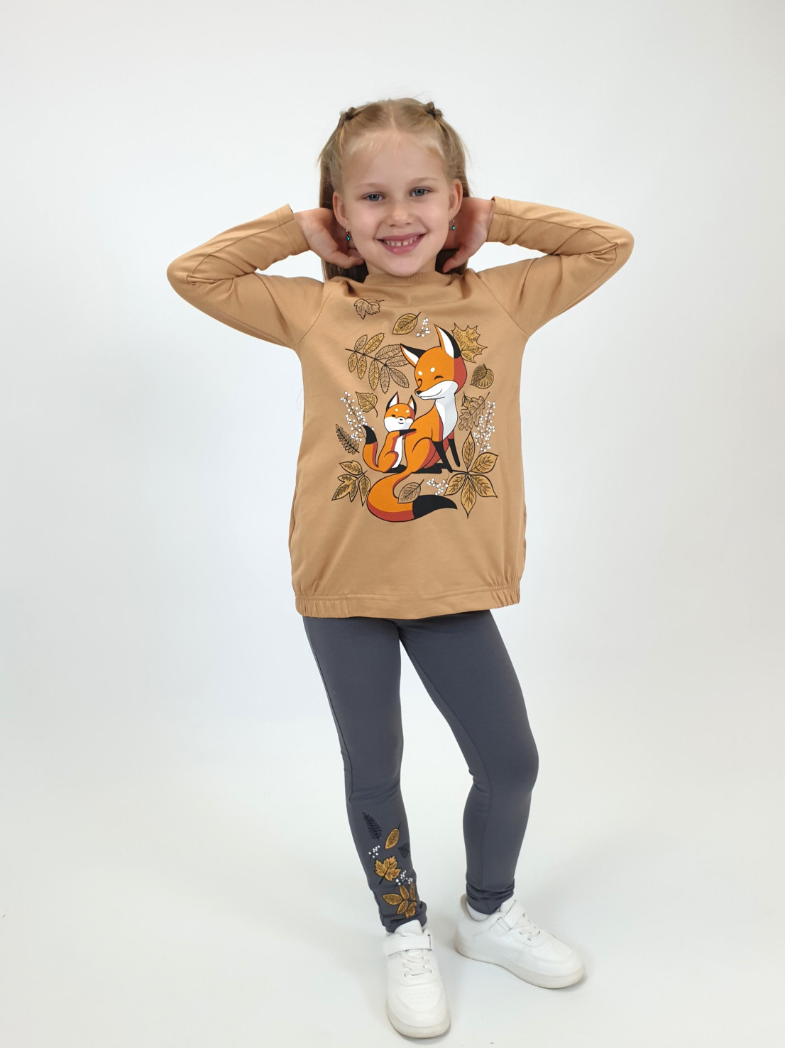 Этот уютный комплект от бренда Lunева идеально подойдет для прогулок и повседневного образа! Верх – джемпер свободного кроя из мягкого 100%-го хлопка с стильной принтированной вставкой и удобными карманами. Нижняя часть – лосины с эластичным составом (95% хлопка и 5% лайкры), обеспечивающим комфорт и свободу движений. Элегантность дизайна сочетается с практичностью материалов, созданных в России.