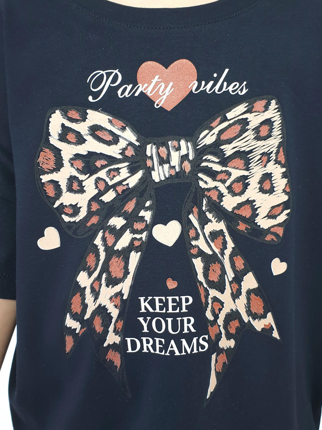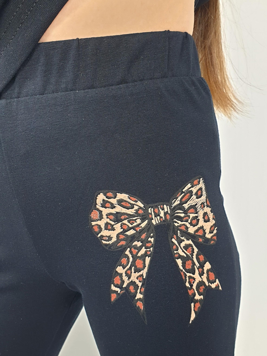 Кулирное полотно:95% х/б,5% лайкра. Джемпер(оверсайз),спущенное плечо,короткий рукав.Горловина обработана планкой.Печать на переде. Брюки-на поясе с резинкой,расширены к низу.Печать слева,вверху.