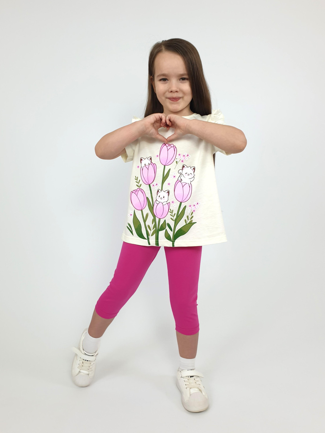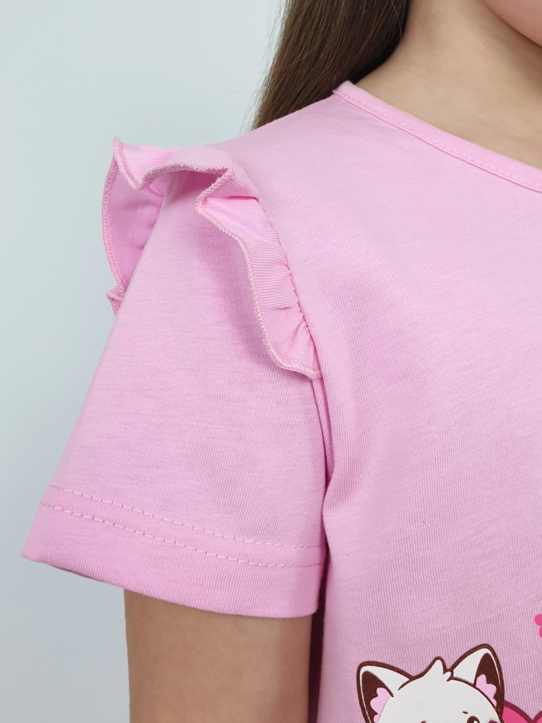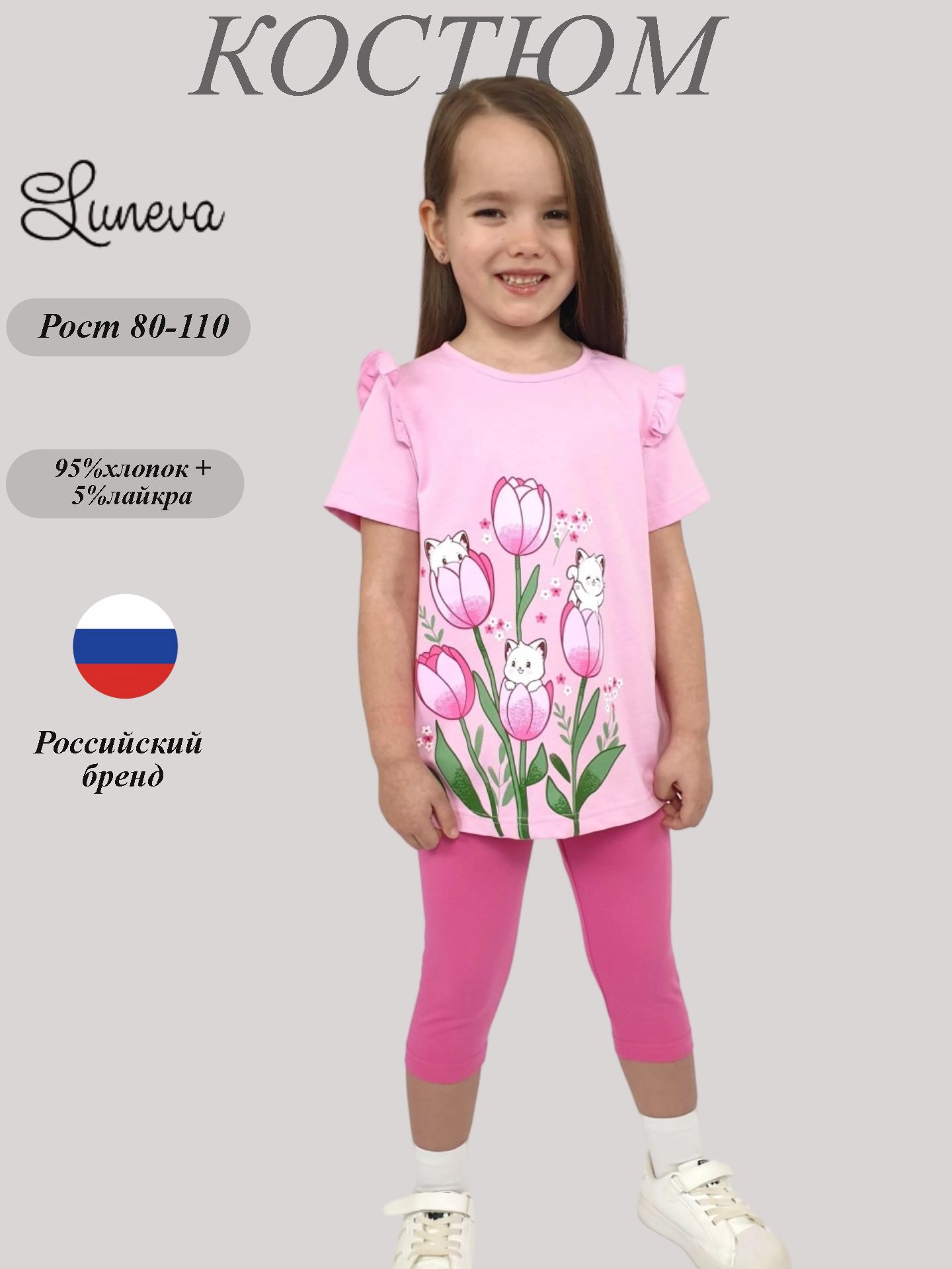 Этот игривый комплект подарит девочке комфорт и свободу движений! Купив его, вы подарите ей не просто одежду — целый мир улыбок и радости! Удобные бриджи на мягкой резиночке и стильная маечка-комбинация с нежной рюшкой станут её любимыми вещами. Испытайте волшебство вместе с маркой Lunева!