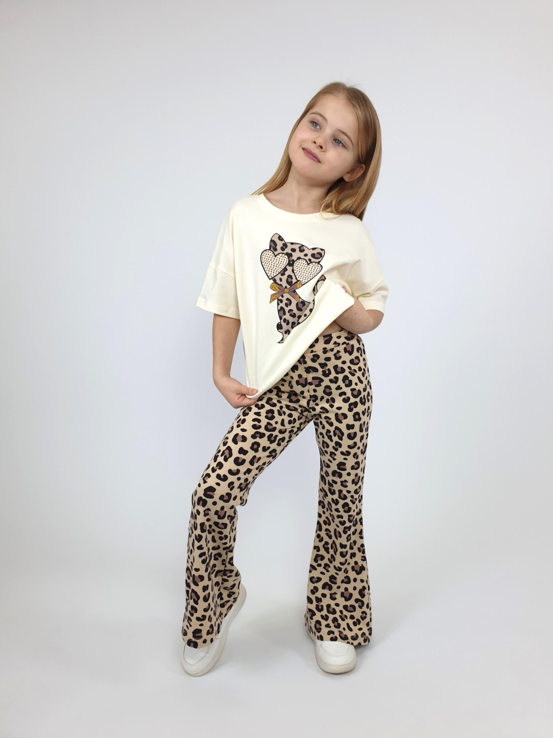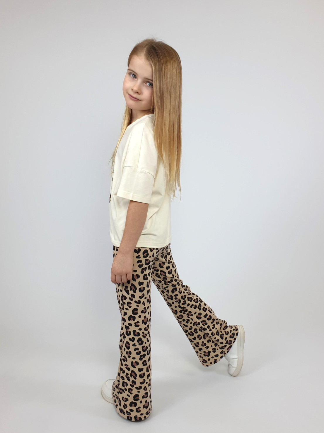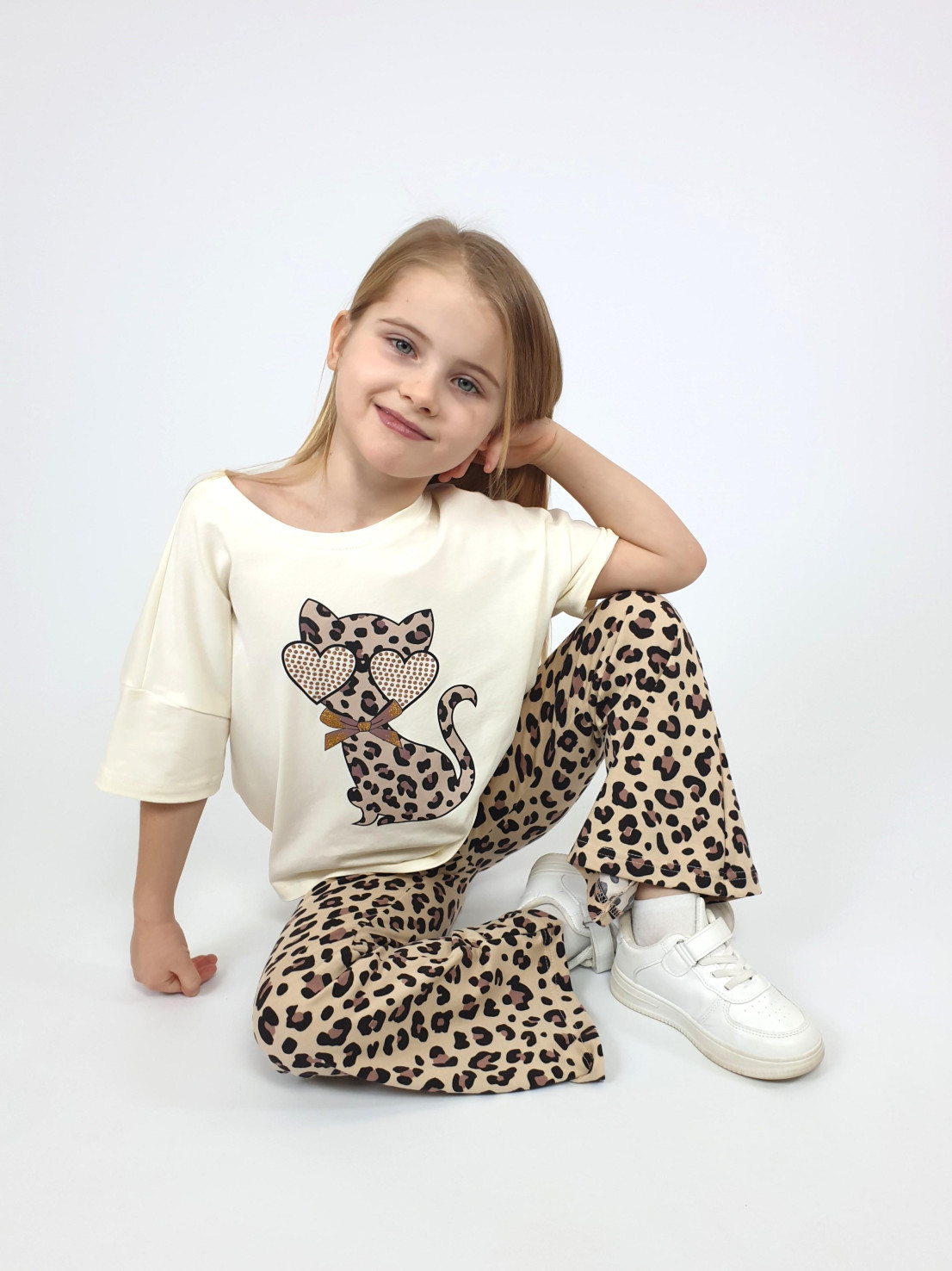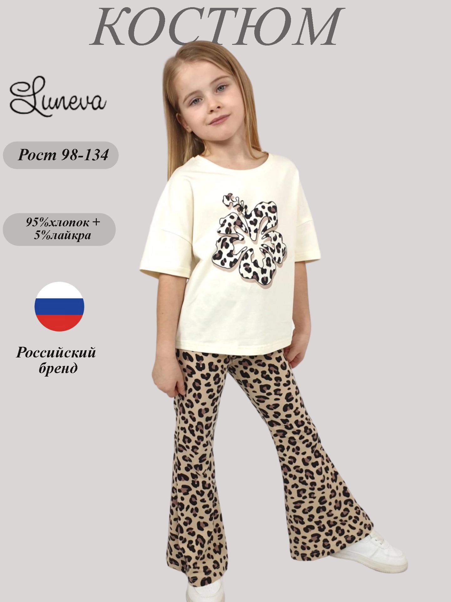 Этот стильный комплект из джемпера оверсайз и брюк с эластичным поясом станет ярким акцентом детского гардероба! Леопардовый принт добавит образу оригинальности и шарма, а качественный состав кулирного полотна (95% хлопка и 5% лайкры) обеспечит комфорт даже при длительном ношении. Бренд Lunева предлагает модную и удобную одежду для девочек, соответствующую последним тенденциям моды.