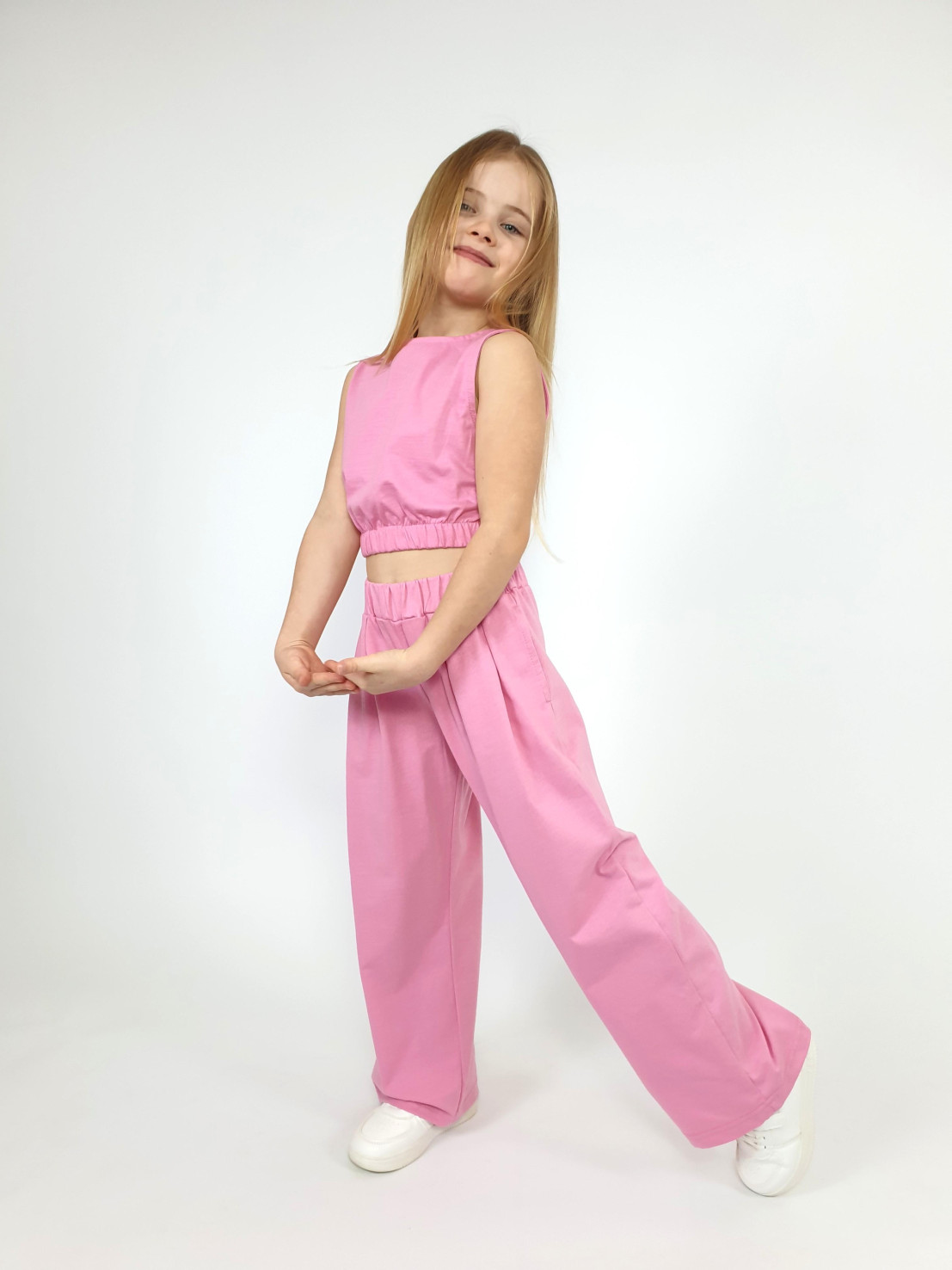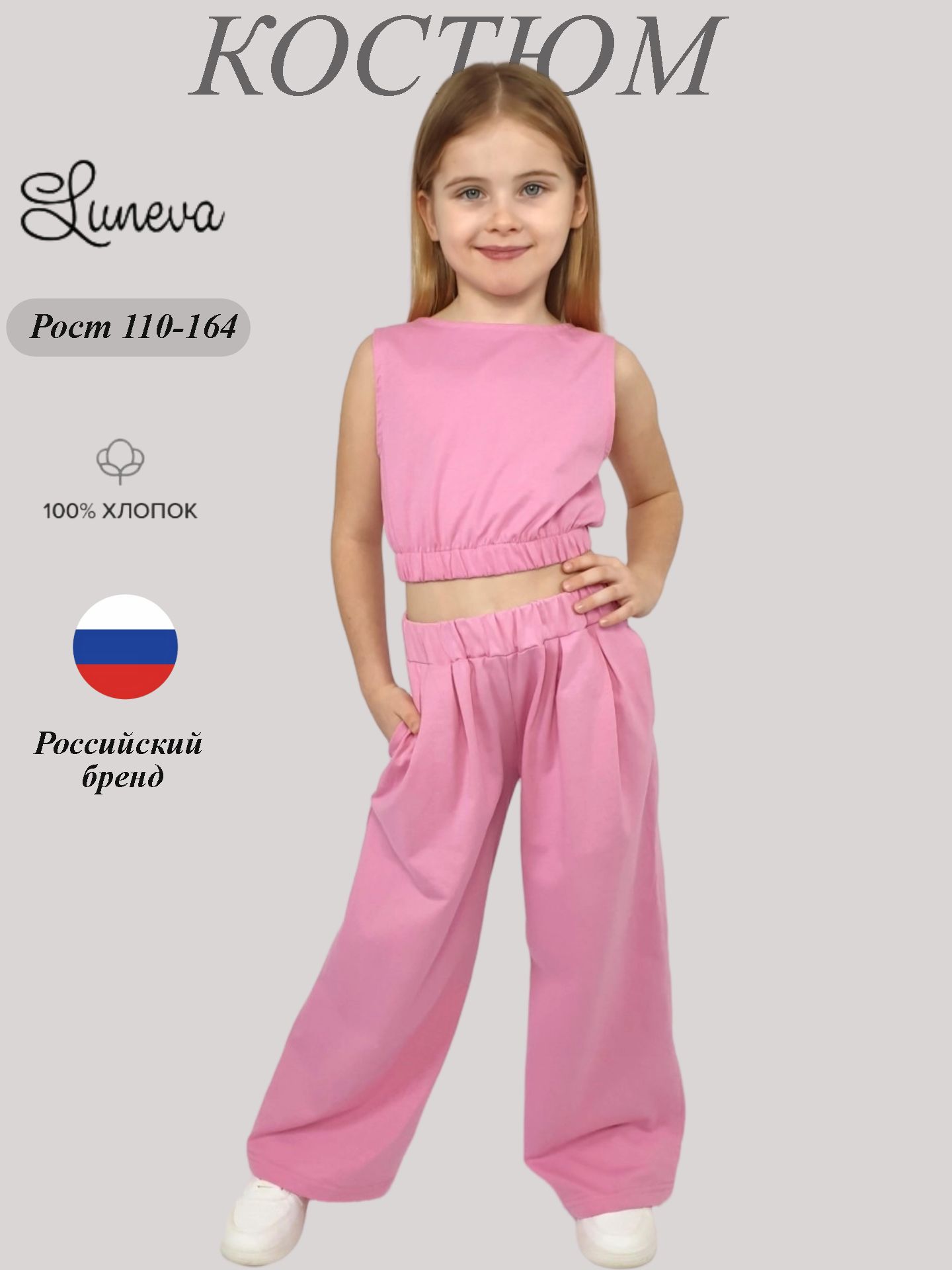 Представляем стильный детский костюм — идеальный выбор для вашего малыша! Комфортный джемпер из мягкого кулирного полотна (100% хлопок) сочетается со свободными брюками с удобными карманами. Элегантная резинка по низу и пояску обеспечивает свободу движений. Яркий сочный розовый цвет и известный бренд Luneva подчеркнут индивидуальность ребенка. Идеально подойдет для прогулок и повседневных дел.