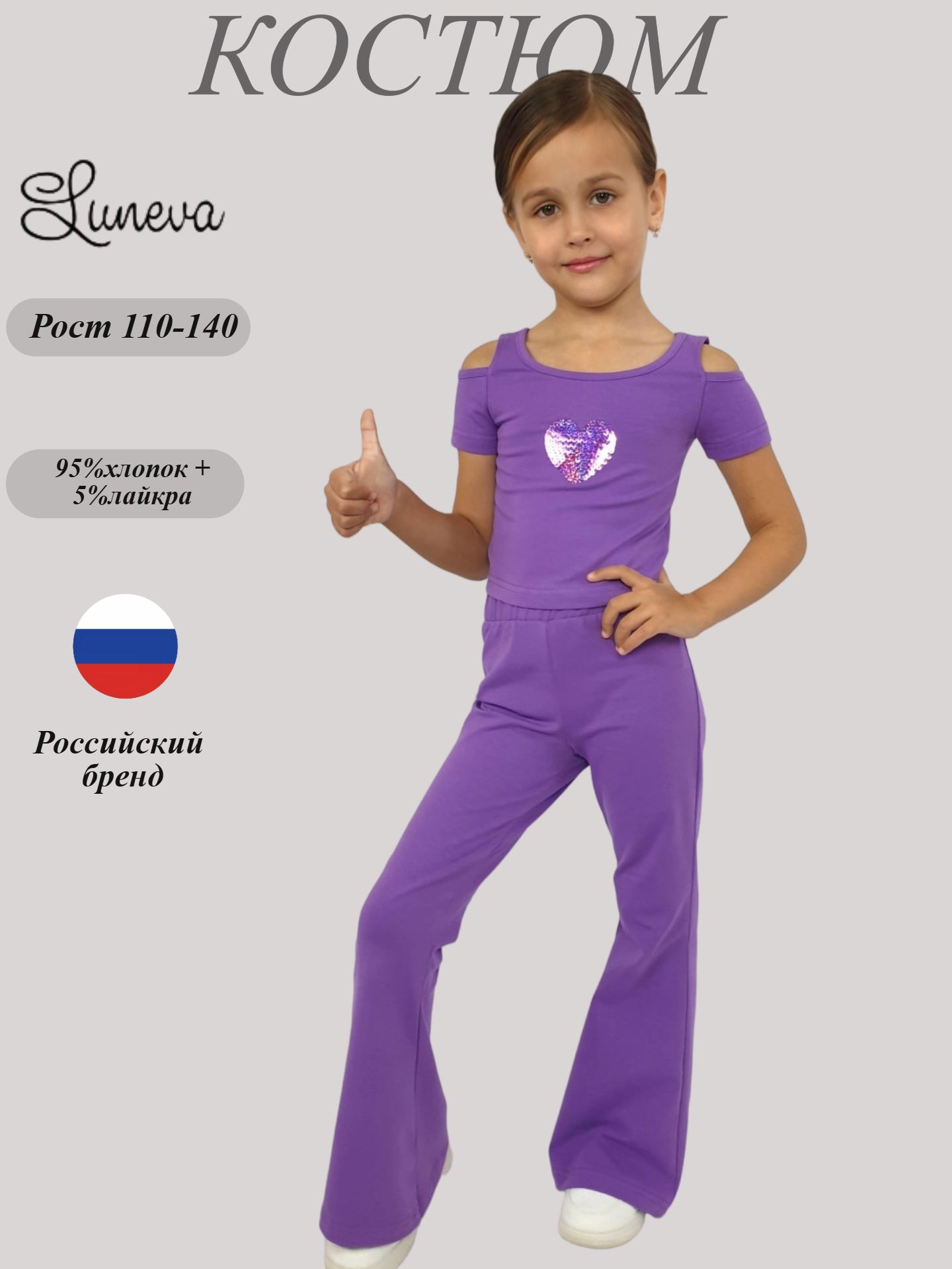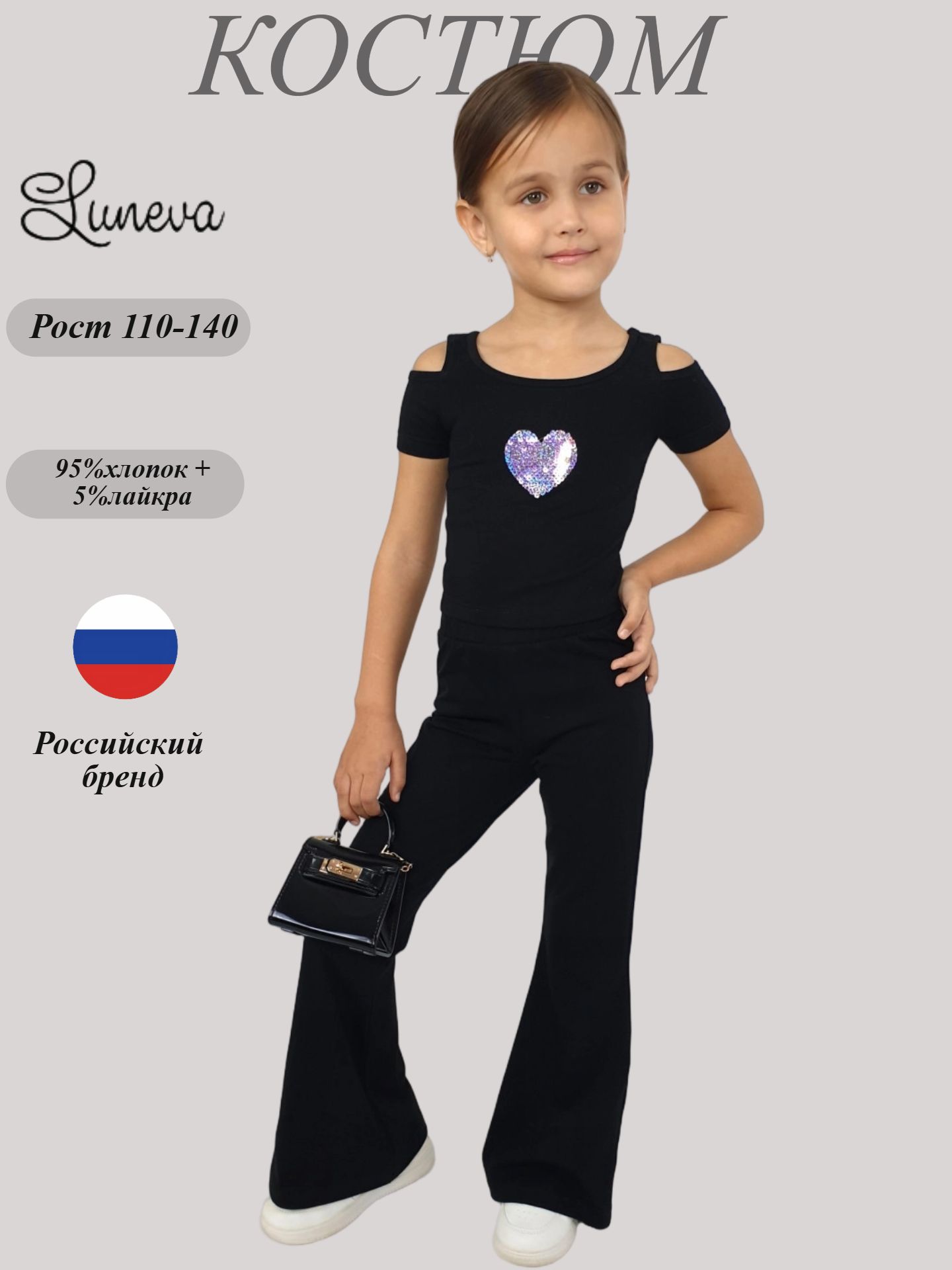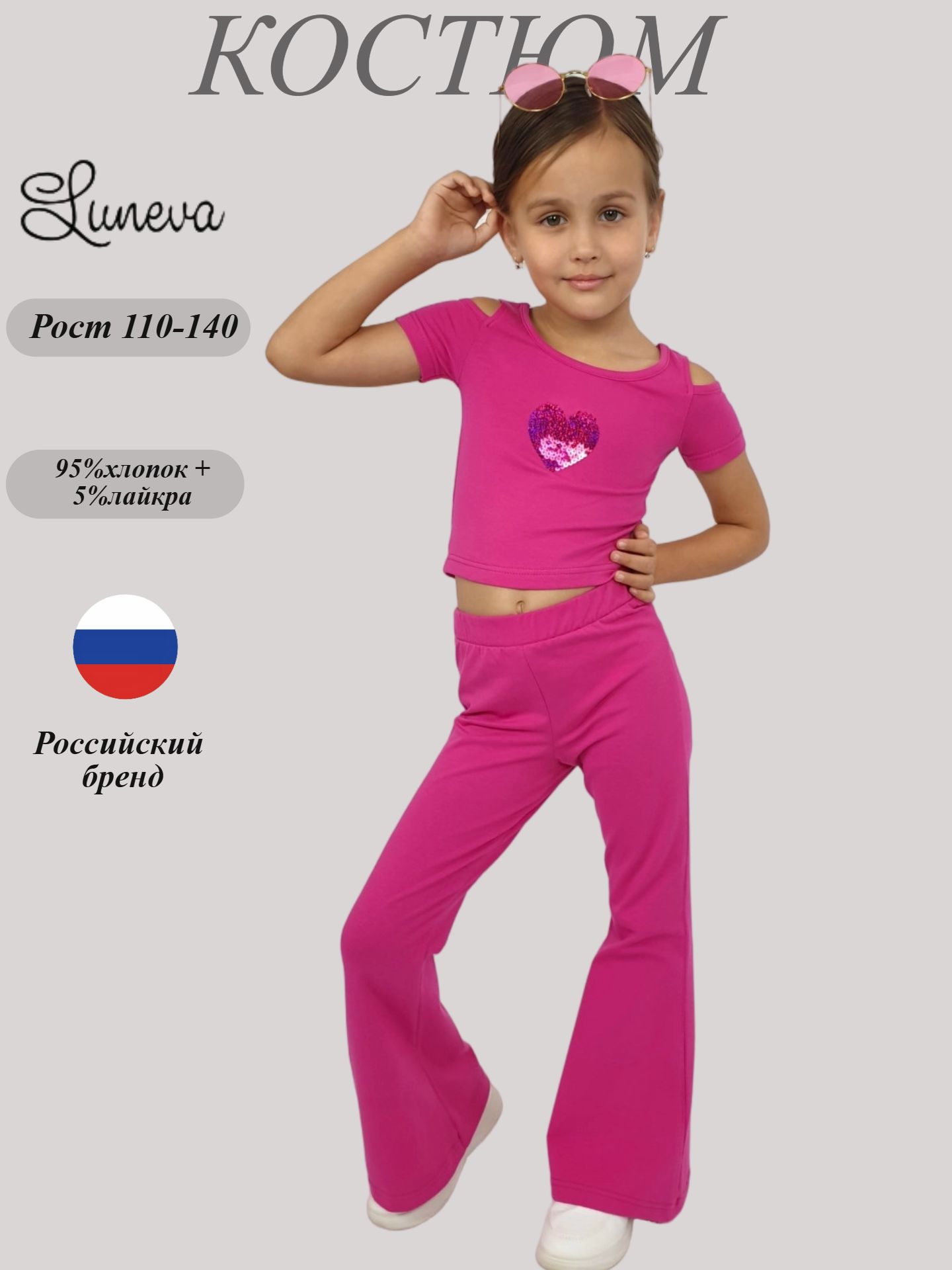 Этот стильный комплект идеально подойдет маленьким модницам! Визуально привлекательный джемпер с эффектной вышивкой пайетками притягивает взгляды, а удобные брюки-клеш обеспечивают свободу движений. Сочетание хлопка и эластана дарит комфорт и позволяет коже дышать. Идеальный выбор для праздничных мероприятий или повседневного образа от бренда Lunева.