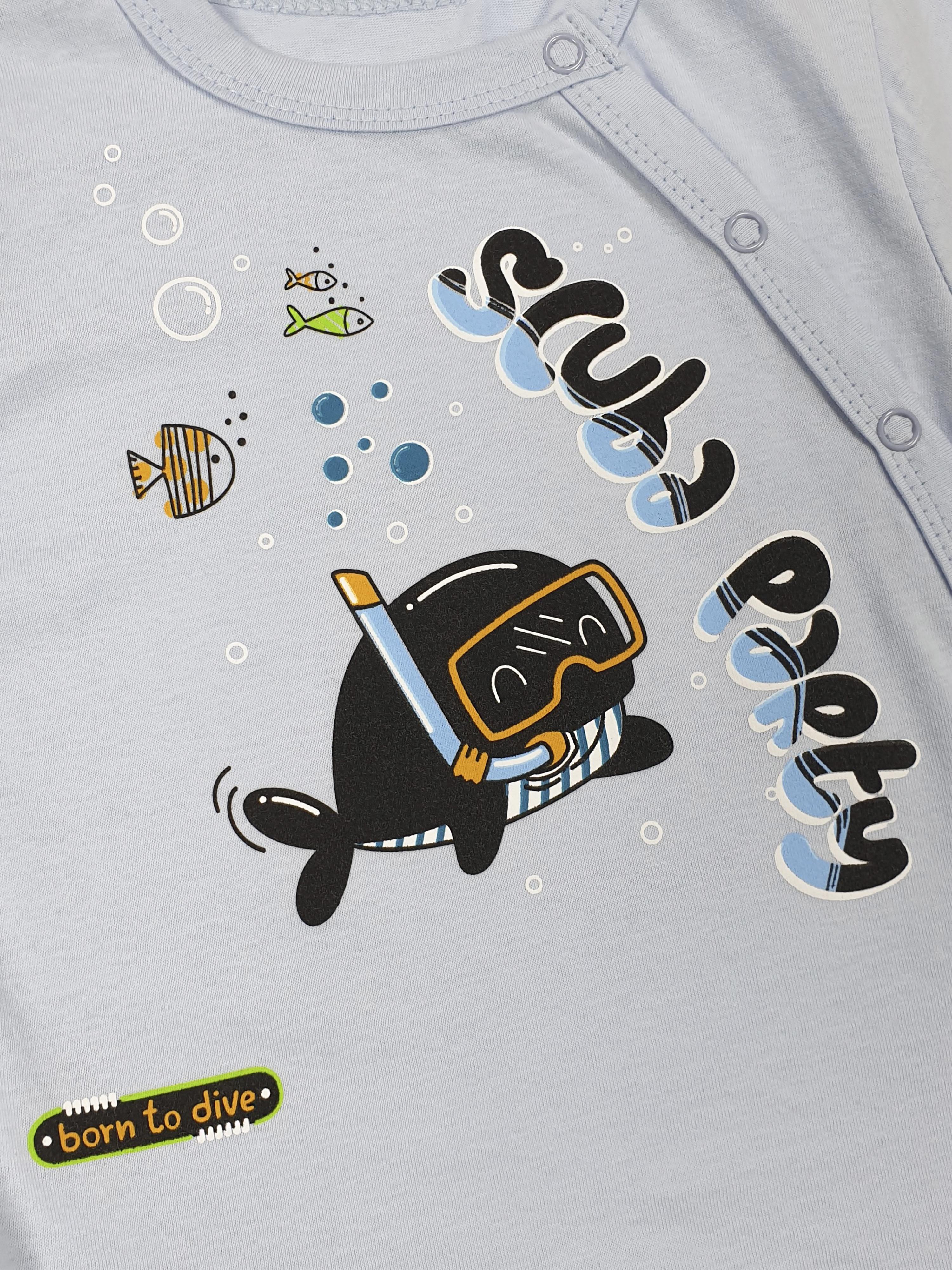 Кулирное полотно:100% х/б. Полукомбинезон(боди)-застежка ассиметричная на переде слева(справа) и по низу изделия на кнопки.Рукав втачной короткий. Перед с печатью.Горловина,край борта и низ изделия окантованы.
