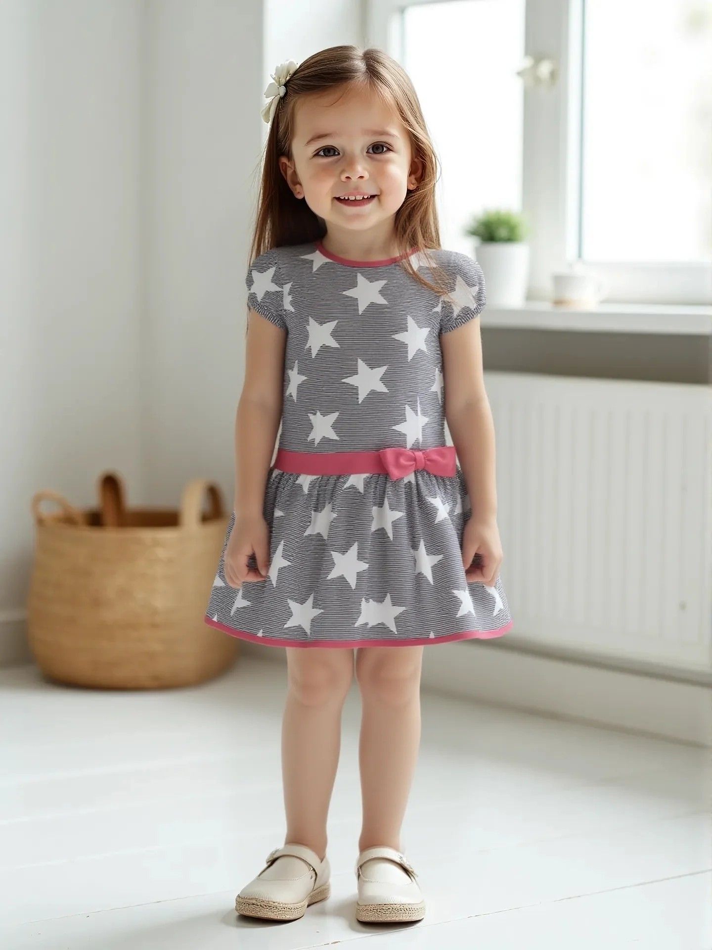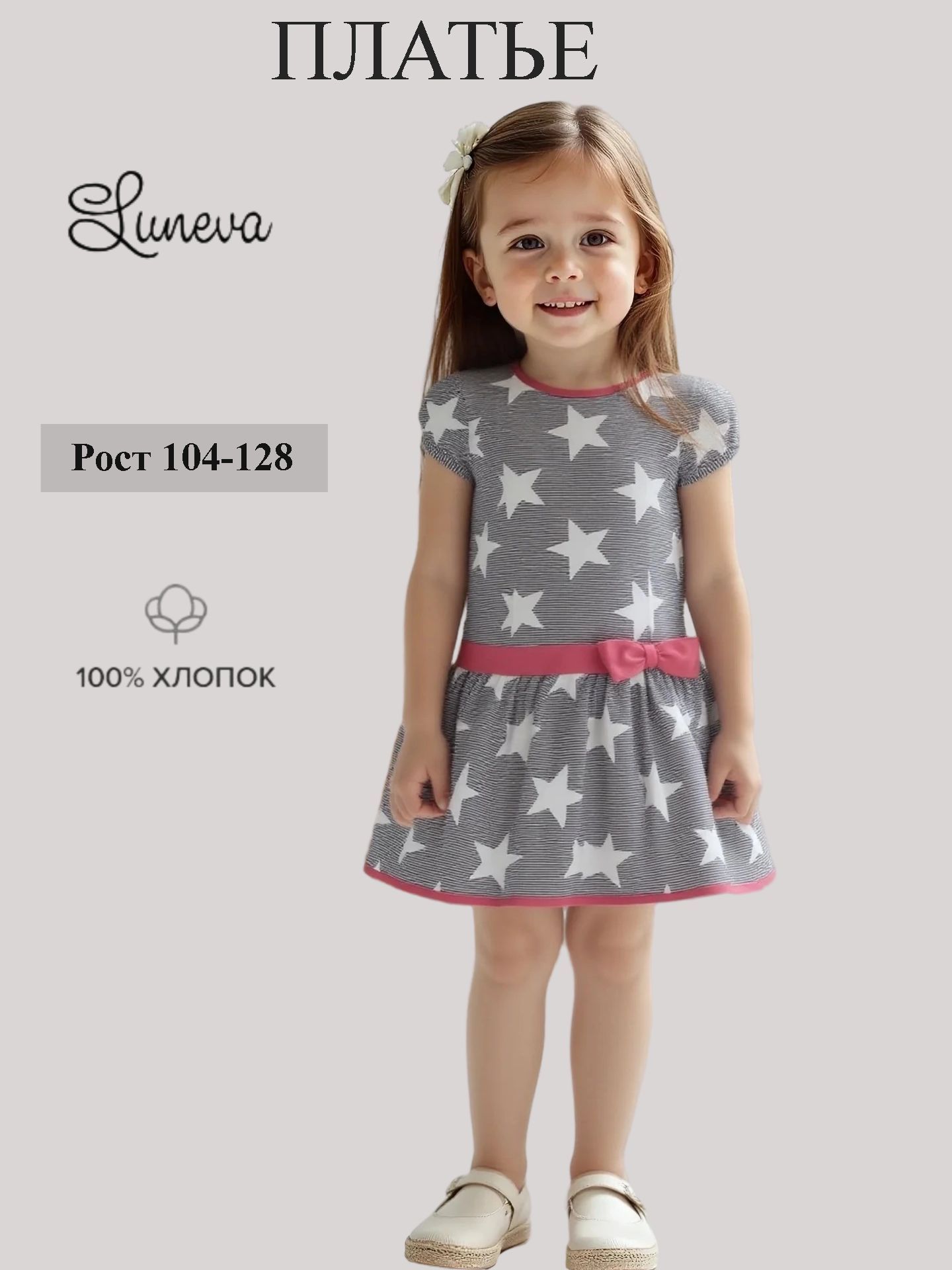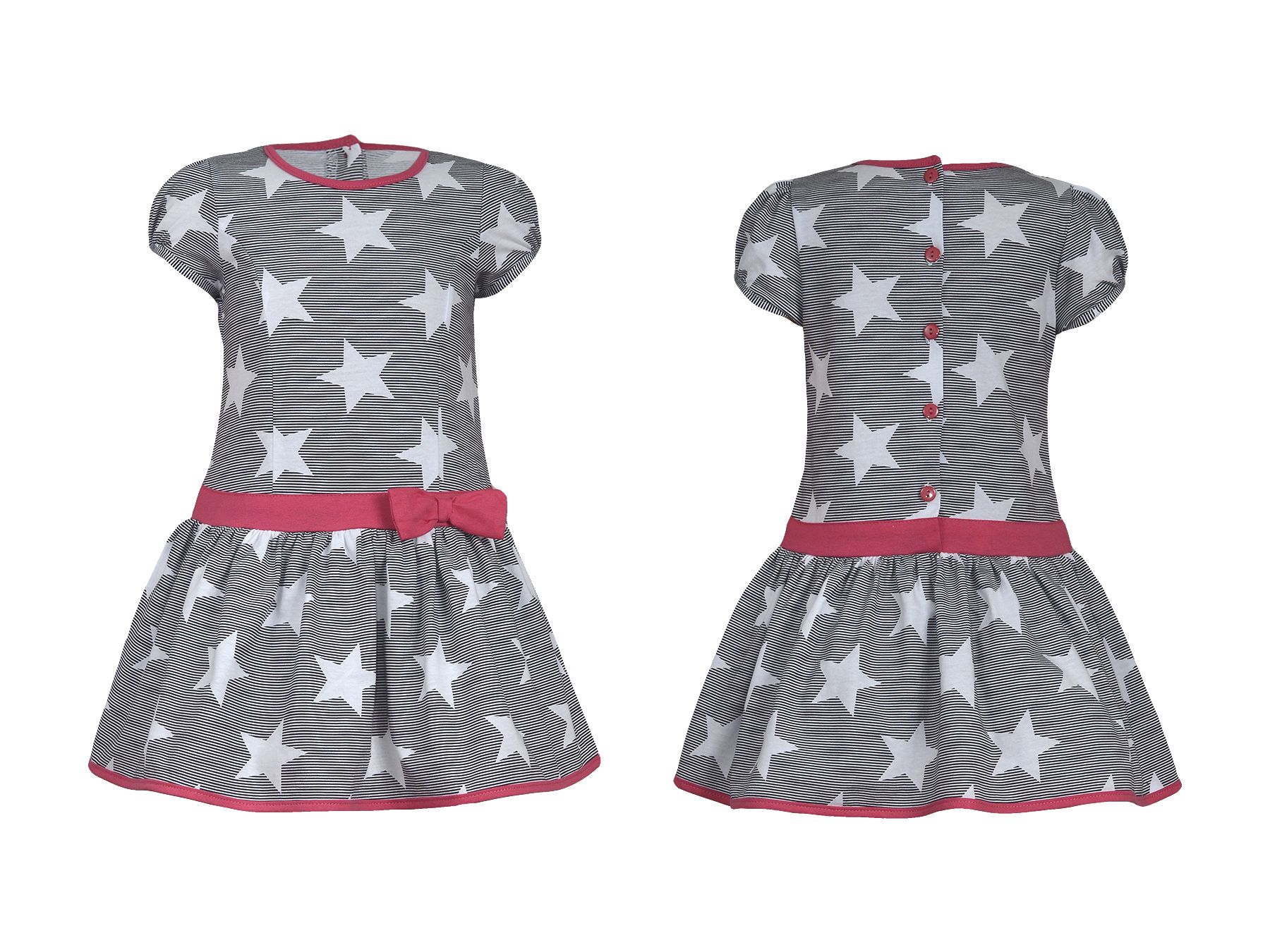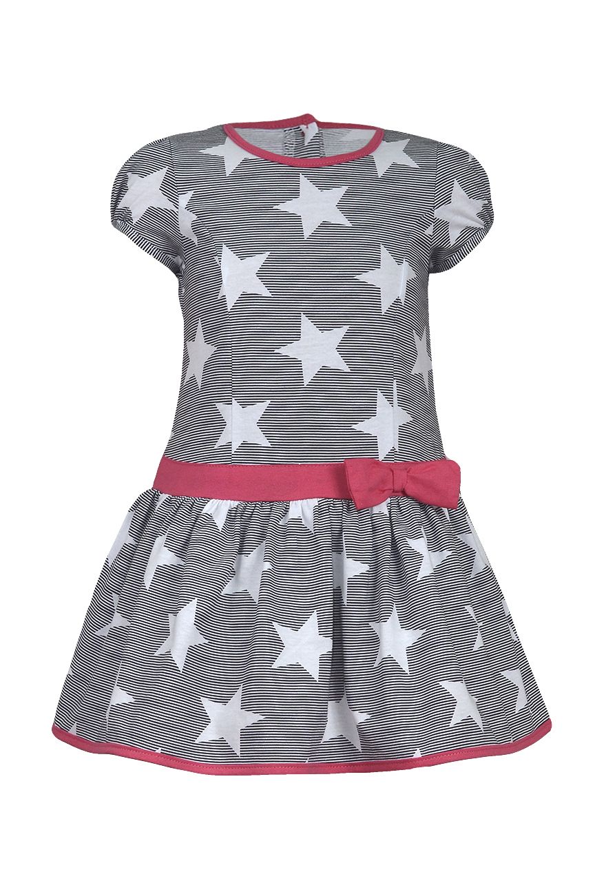 Платье для девочки выполнено из экологичной хлопковой ткани – кулирное полотно (100% хлопок). Модный наряд имеет короткий рукав, заниженную линию талии, отрезную юбку со сборкой и пояс с бантом. Платье летнее подойдет, как для ежедневной носки, так и для похода в детский сад, школу и даже в гости.