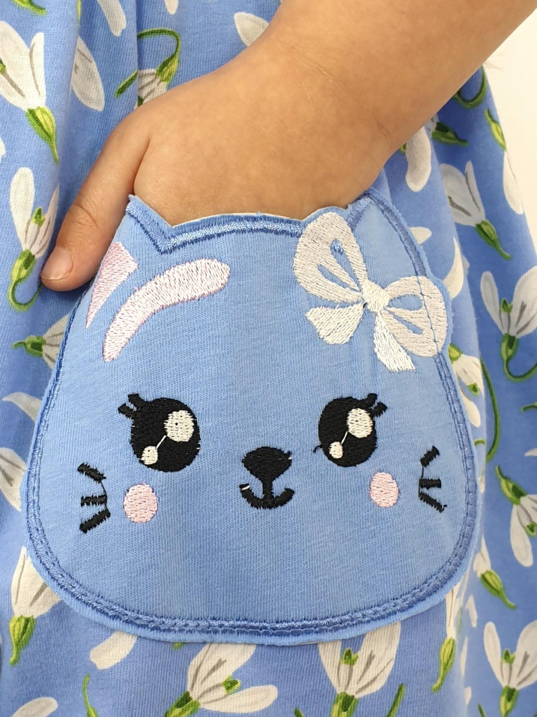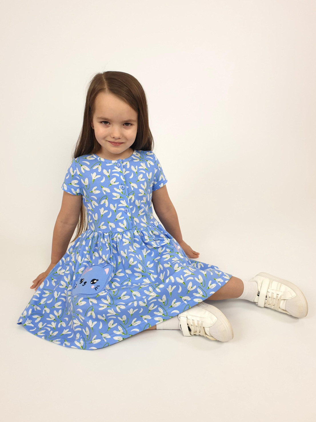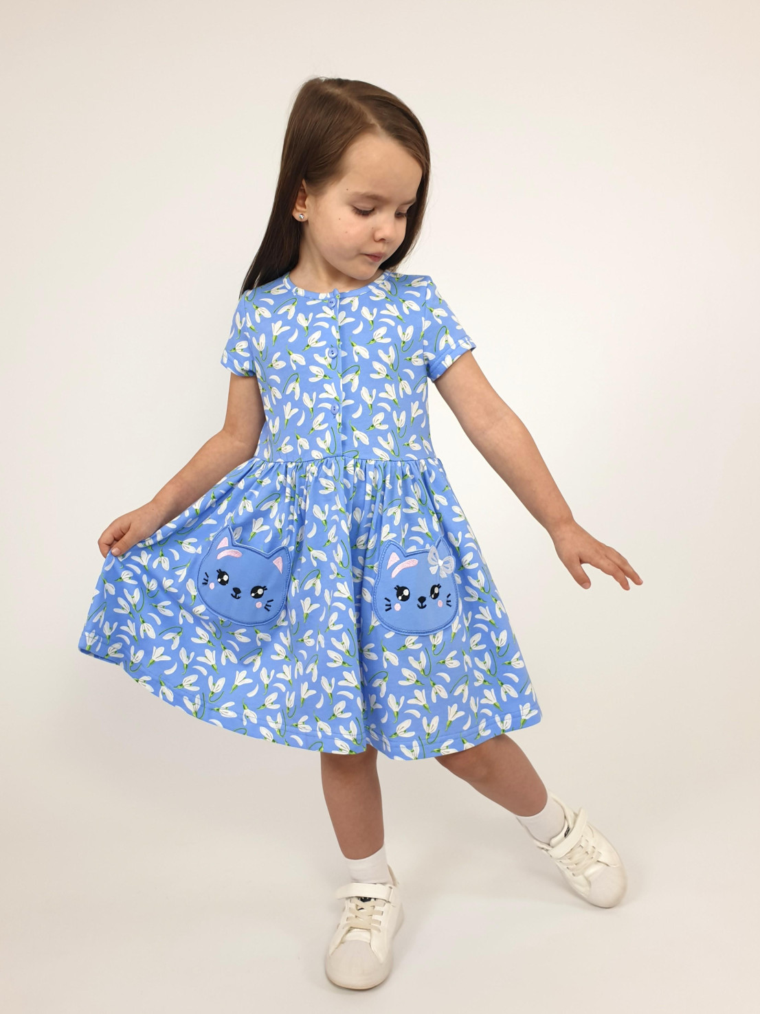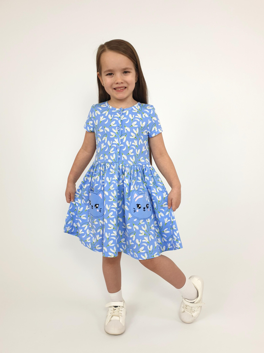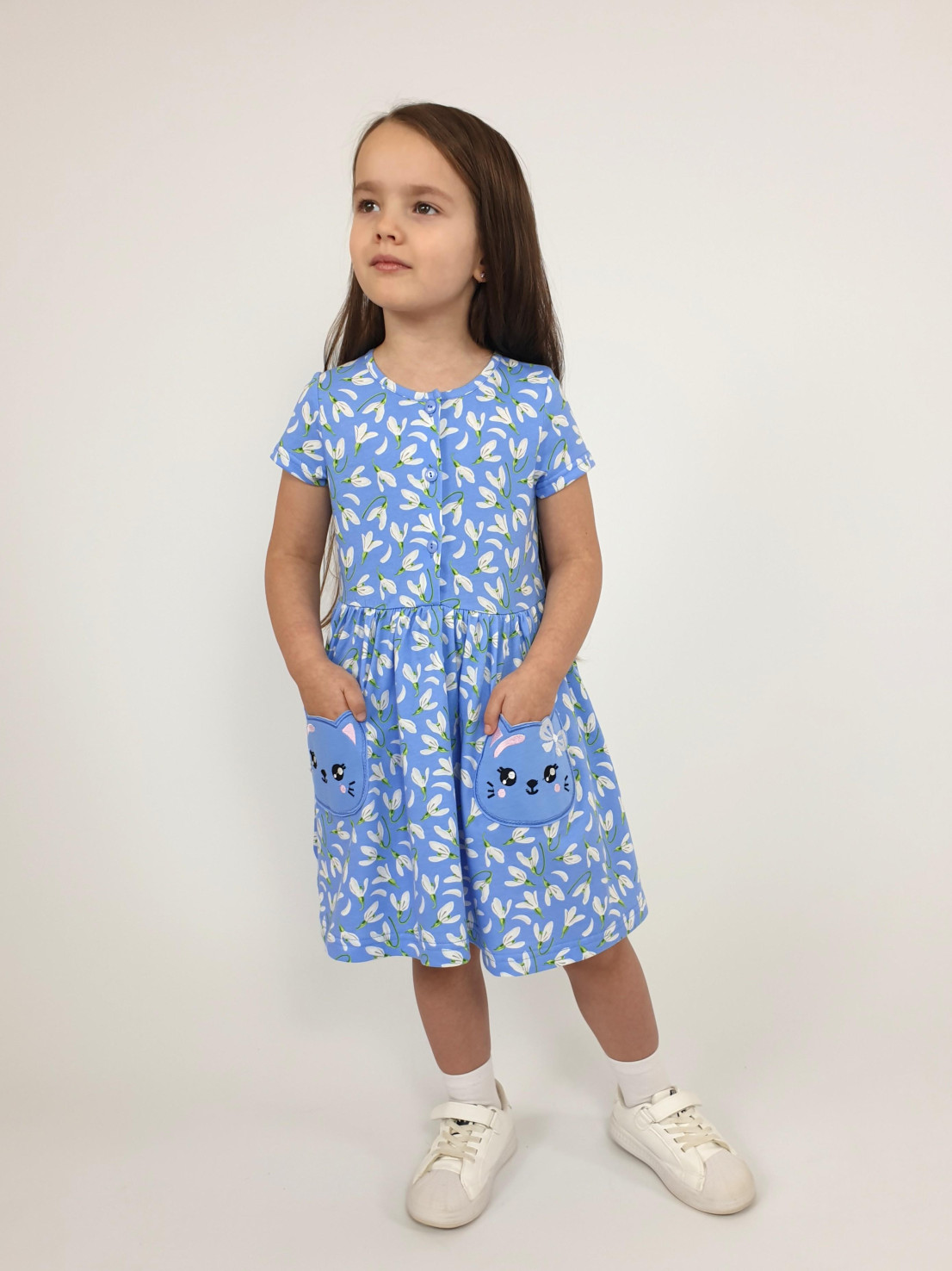 Летнее платье для девочки выполнено из качественного кулирного полотна (100% хлопок).Модель – приталенного силуэта ,декорирована оригинальными накладными карманами и удобной застежкой на пуговицы. Такое платье идеально подойдёт как на каждый день, так и при особых случаях. Материал легкий, приятный на ощупь, устойчивый к частым стиркам.