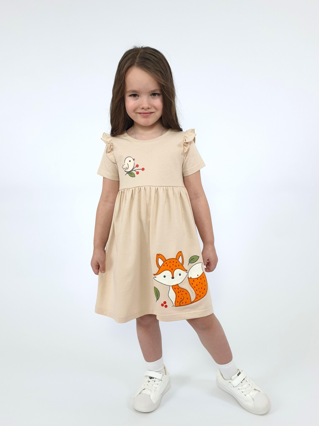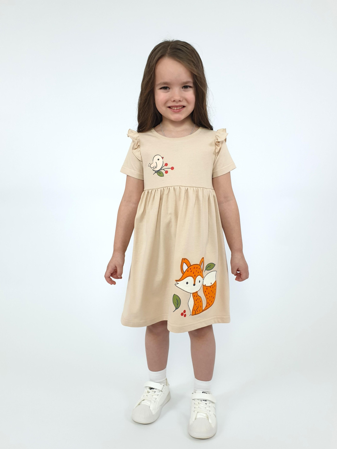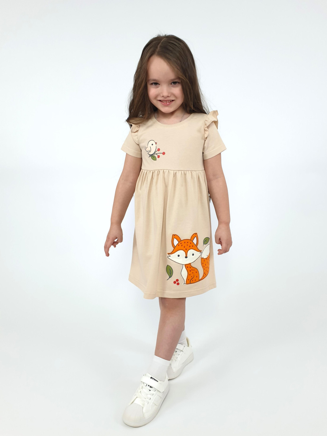 Мягкое кулирное полотно из чистого хлопка обеспечивает комфорт даже самым маленьким модницам! Элегантные платья от бренда "Lunева" подчеркнут очарование маленькой принцессы. Выполнено в нежных оттенках песка, украшено изящной вышивкой и стильной кокеткой с яркой печатью. Идеально подходит как для повседневного образа, так и для особого случая – маленький шедевр гардероба по доступной цене!