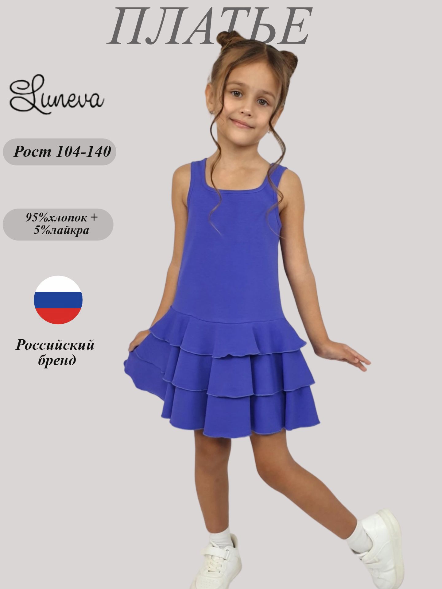 Малиновое платье для девочек от бренда Lunева — стильный выбор для вашего ребенка! Эластичное кулирное полотно (95% хлопка + 5% лайкры) обеспечивает комфорт и свободу движений. Три объемных волана придают юбке особую изящность, а полуприлегающий крой подчеркивает фигуру. Сделано в России. Стильный аксессуар для праздничного настроения и ярких детских моментов!