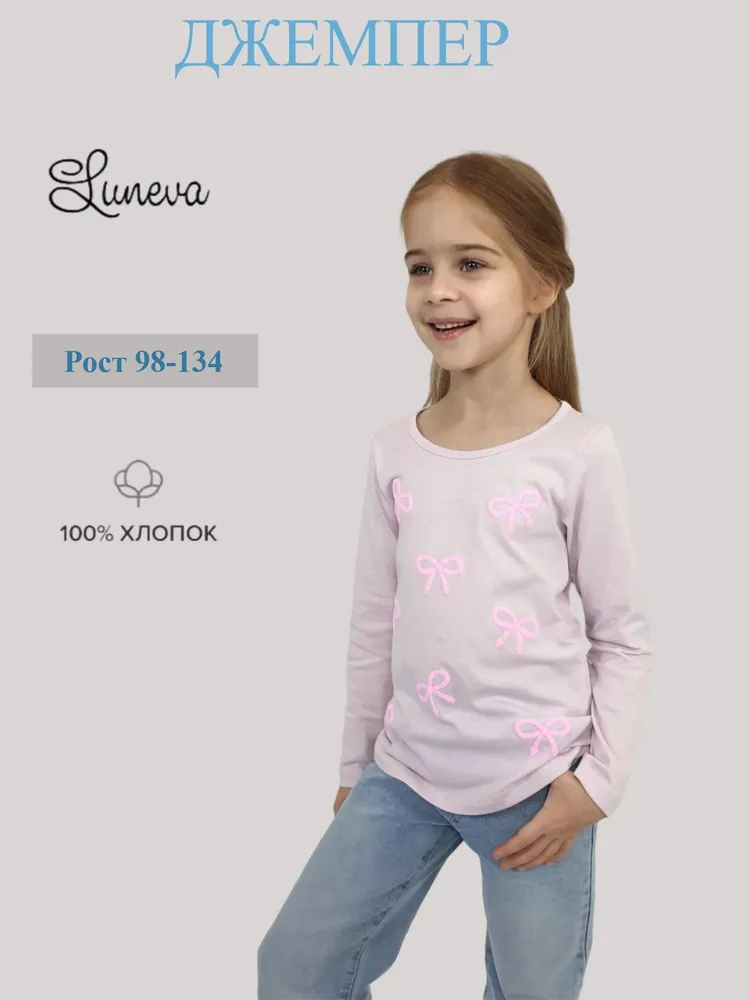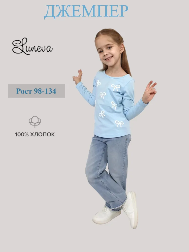 Кулирное полотно:100% х/б. Джемпер-полуприлегающий силуэт,перед с печатью.Рукав длинный,втачной.Горловина окантована.