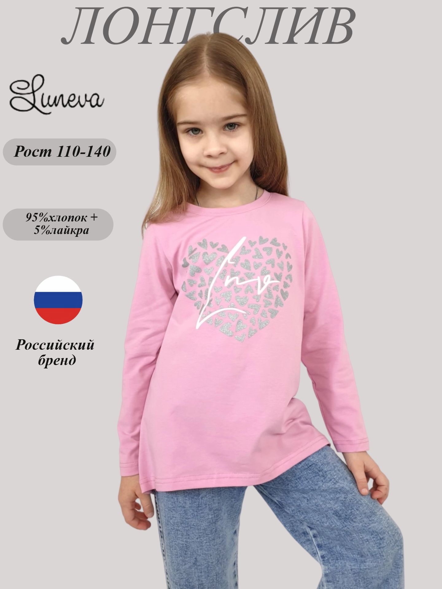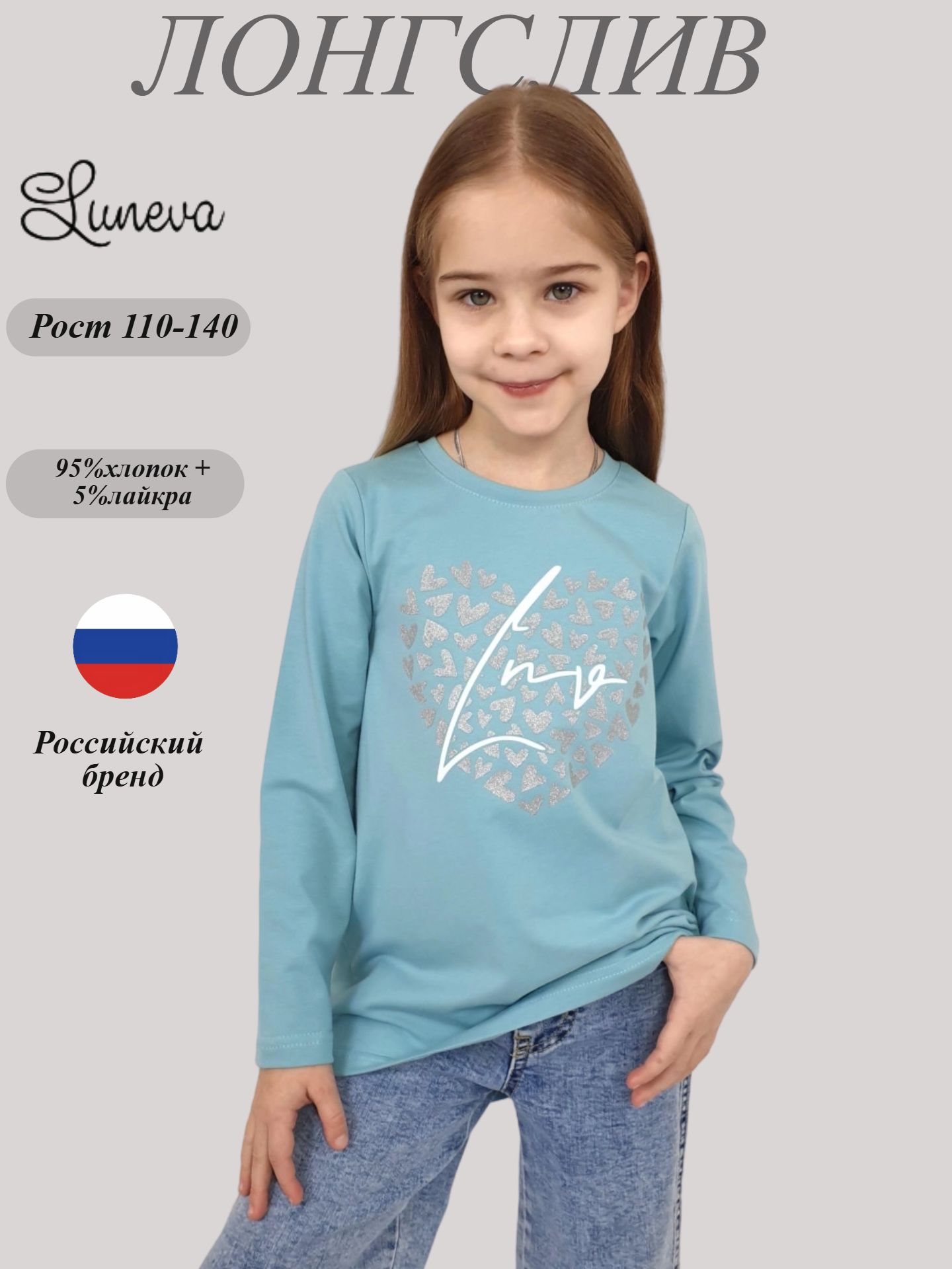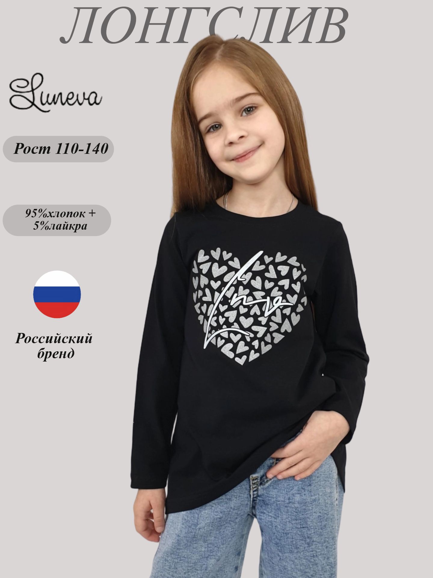 Лонгслив от бренда Lunева выполнен из комфортного кулирного полотна (95% хлопок, 5% эластан). Трапециевидный силуэт подчеркивает женственность образа, а принт спереди привлекает внимание и придает оригинальности. Длинные рукава и закрытая горловина делают этот джемпер идеальным выбором для прохладной погоды. Изделие произведено в России и подойдет девочкам, которые ценят стиль и комфорт.