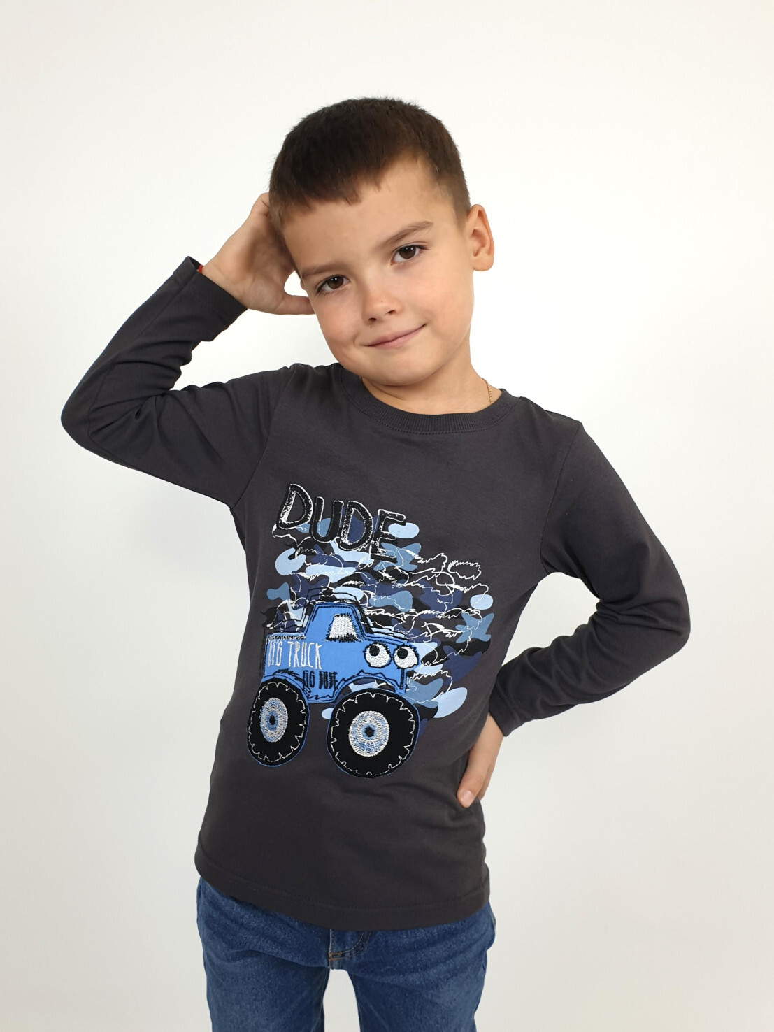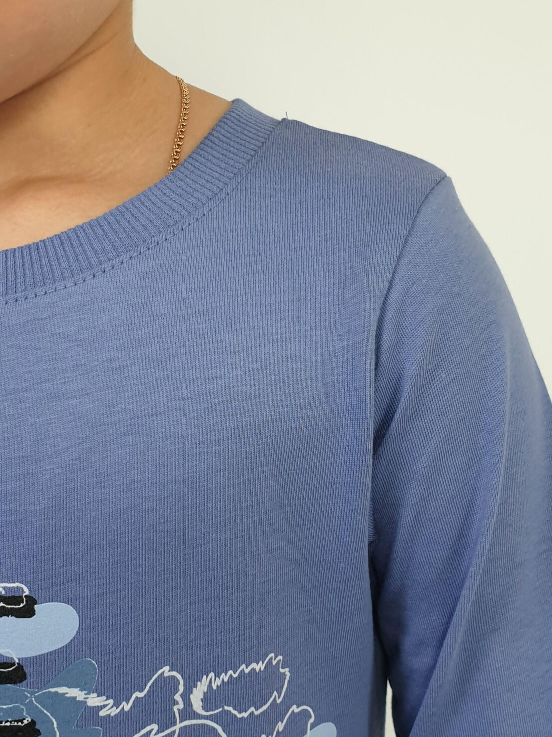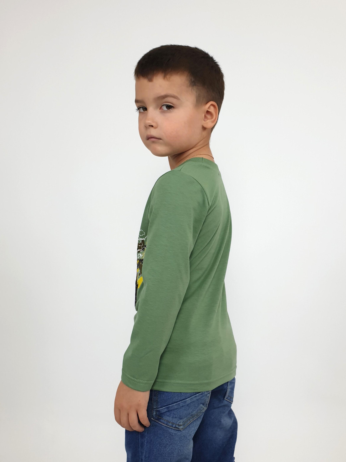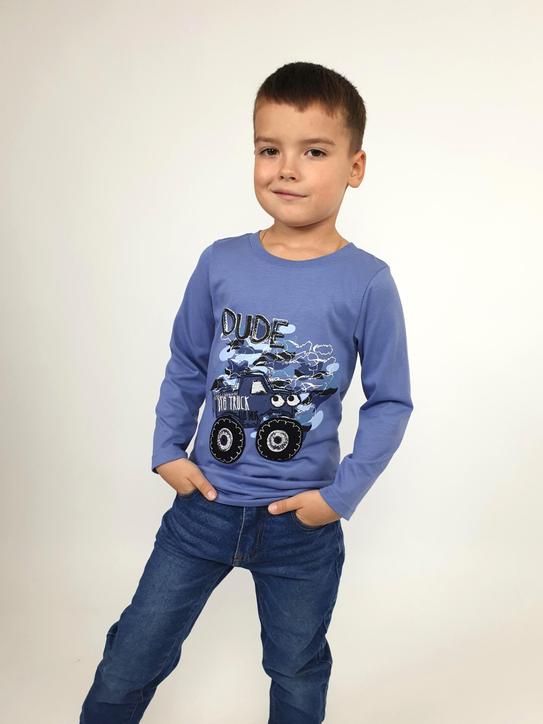 Кулирное полотно:100% х/б. Фуфайка-прямой силуэт,длинный втачной рукав.Горловина обработана ластиком.Печать и вышивка на переде.