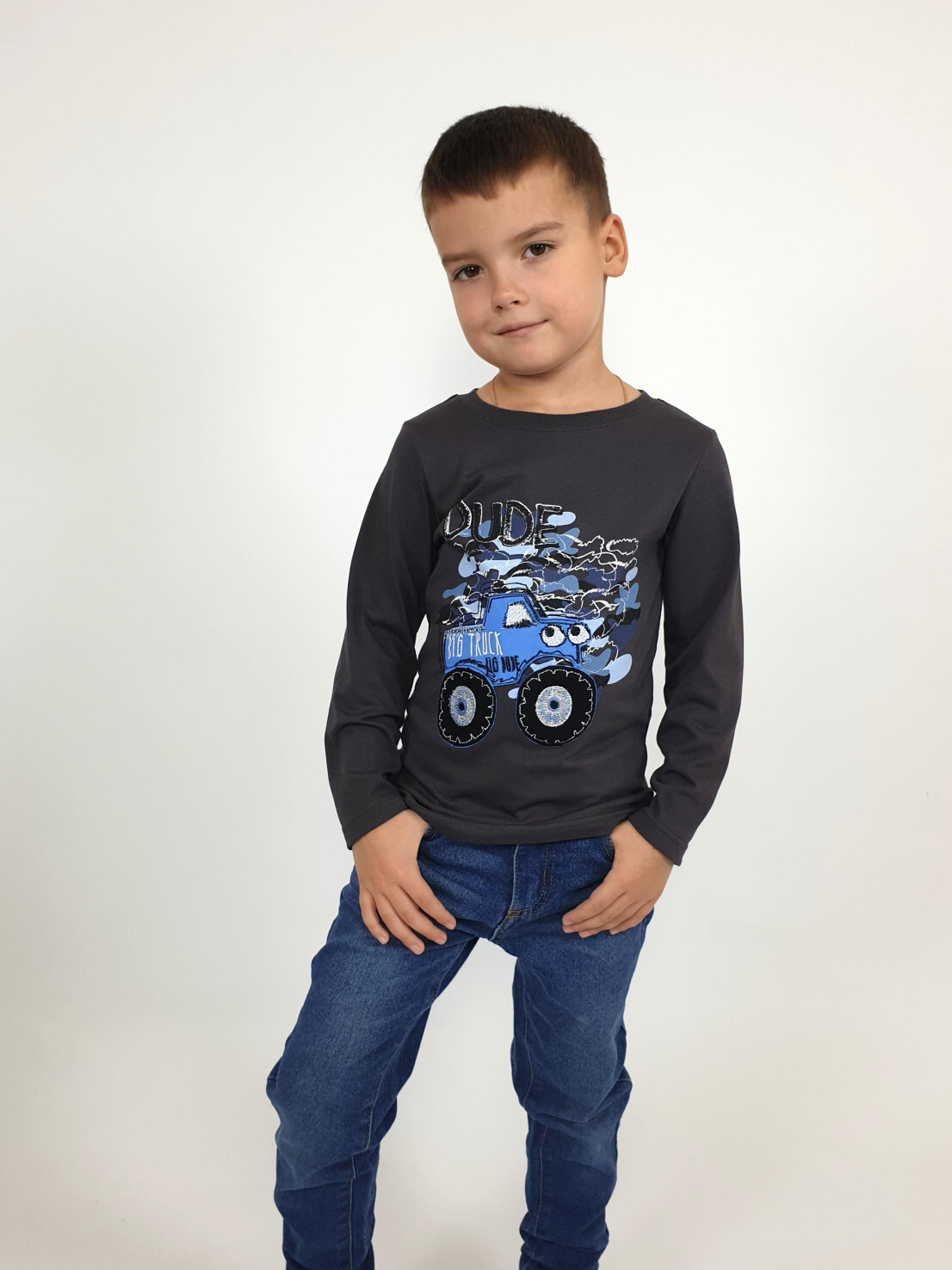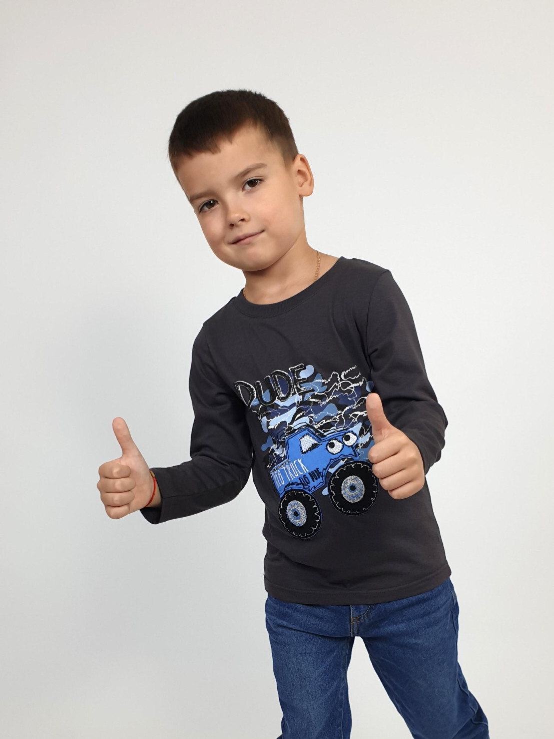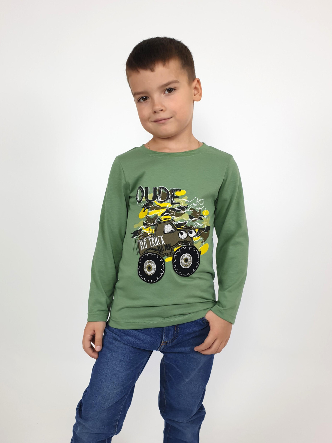 Кулирное полотно:100% х/б. Фуфайка-прямой силуэт,длинный втачной рукав.Горловина обработана ластиком.Печать и вышивка на переде.
