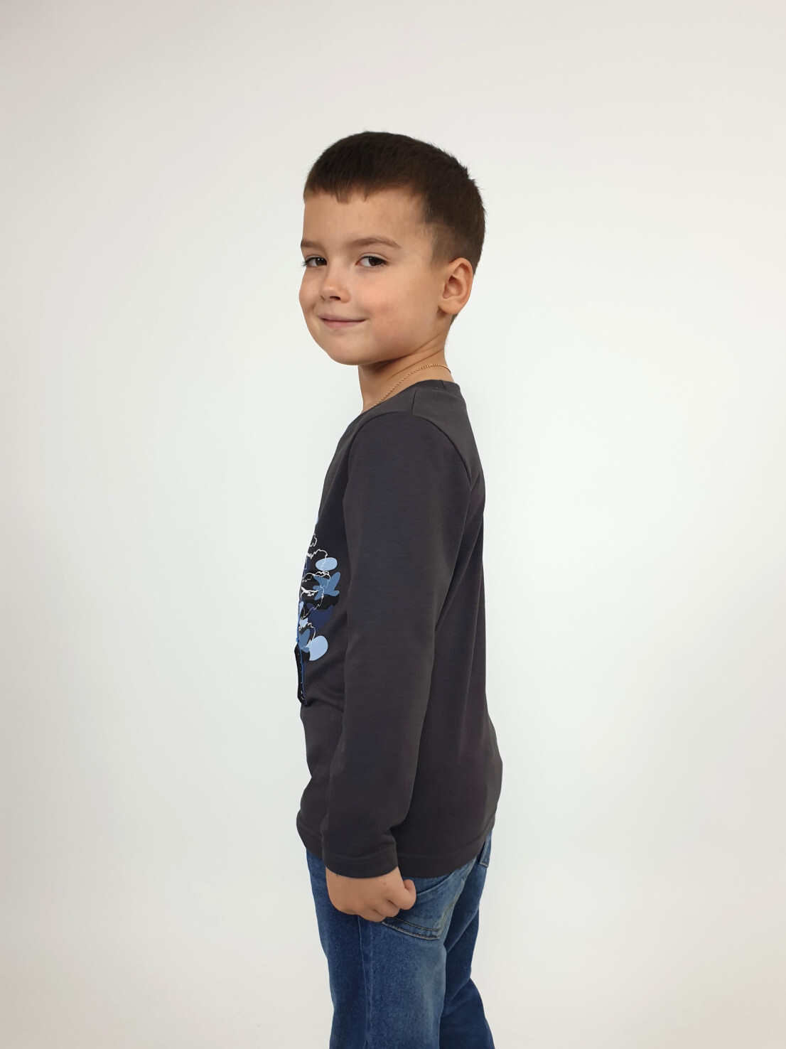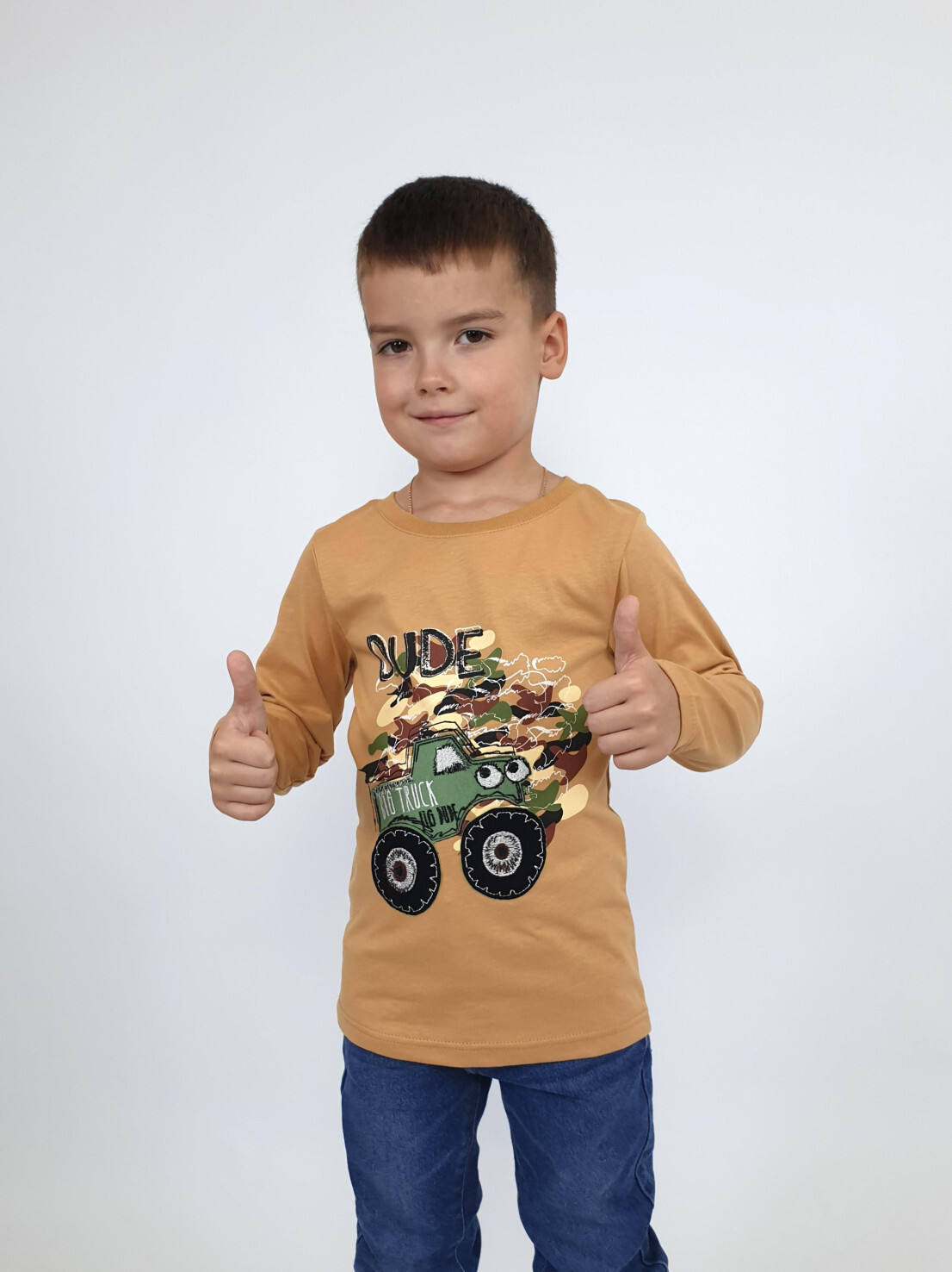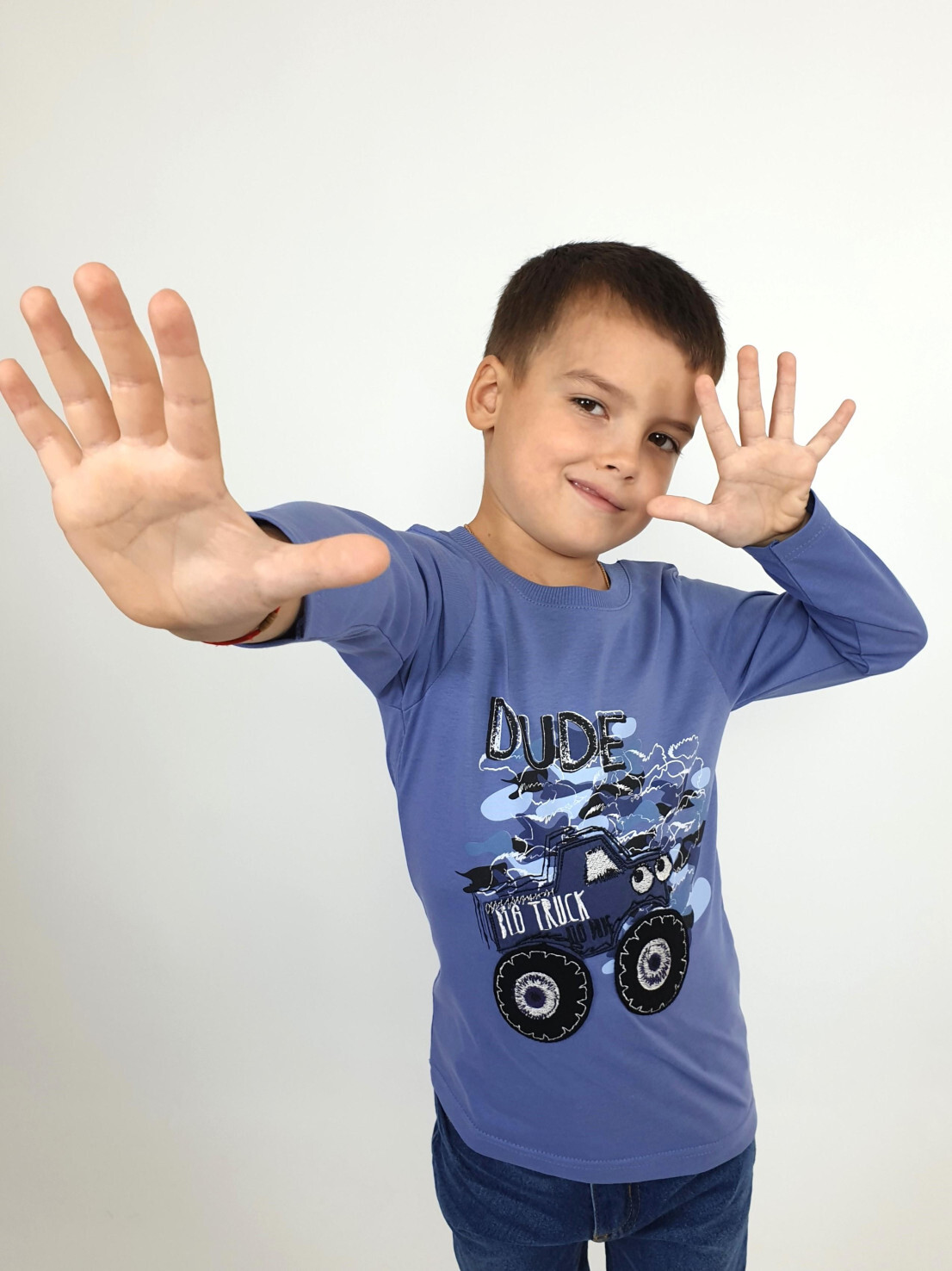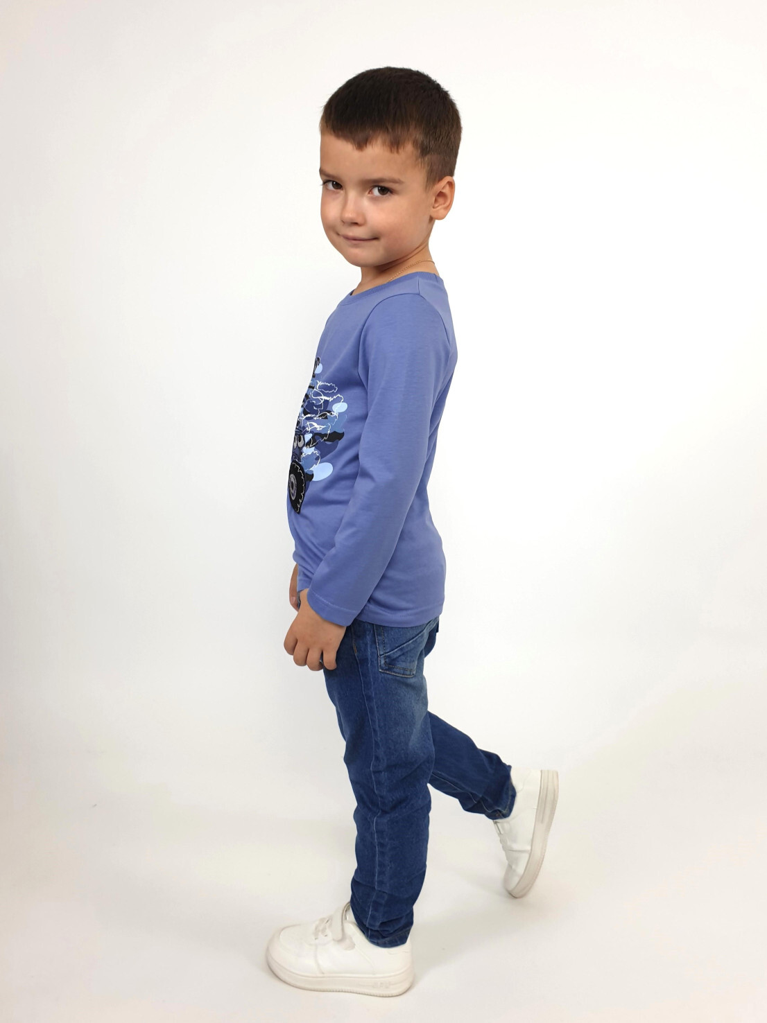 Кулирное полотно:100% х/б. Фуфайка-прямой силуэт,длинный втачной рукав.Горловина обработана ластиком.Печать и вышивка на переде.