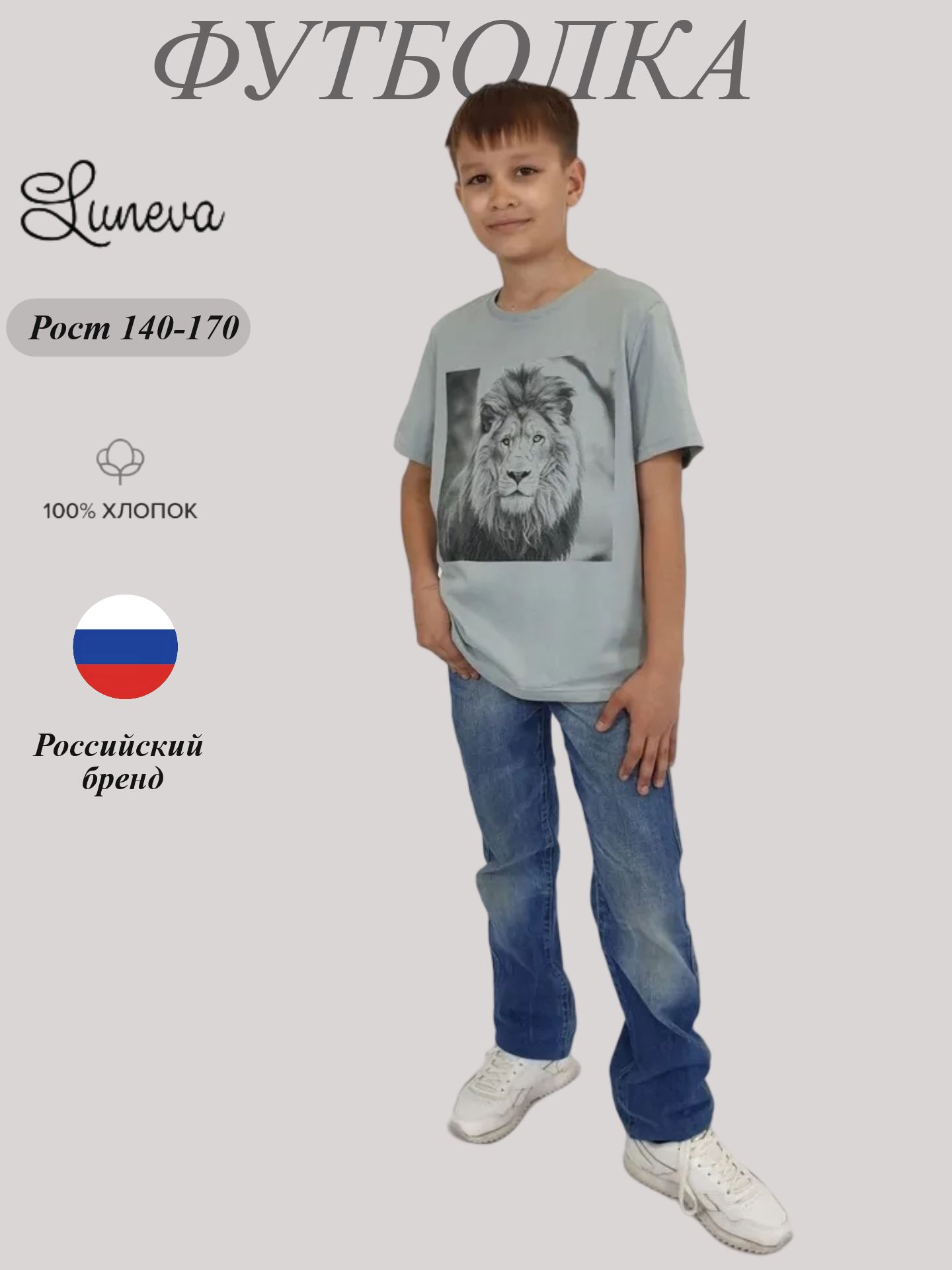Кулирное полотно:100% х/б. Футболка-прямой силуэт,перед с печатью,рукав втачной короткий.Горловина обработана ластиком.Низ изделия и рукава подшиты.