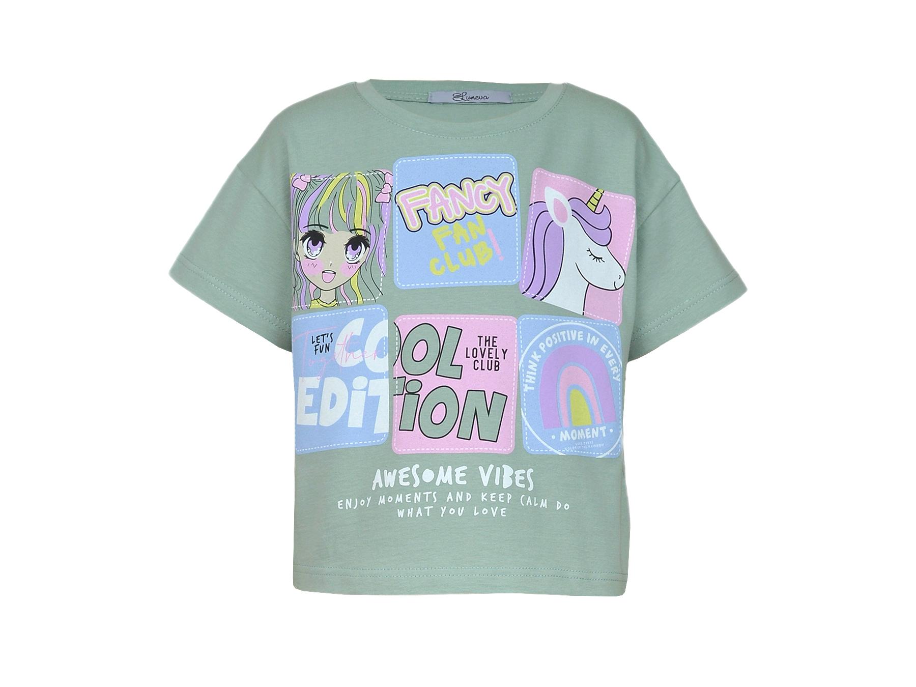 Фуфайка(оверсайз)-спущенное плечо,короткий рукав.Печать на переде,горловина окантована планкой.