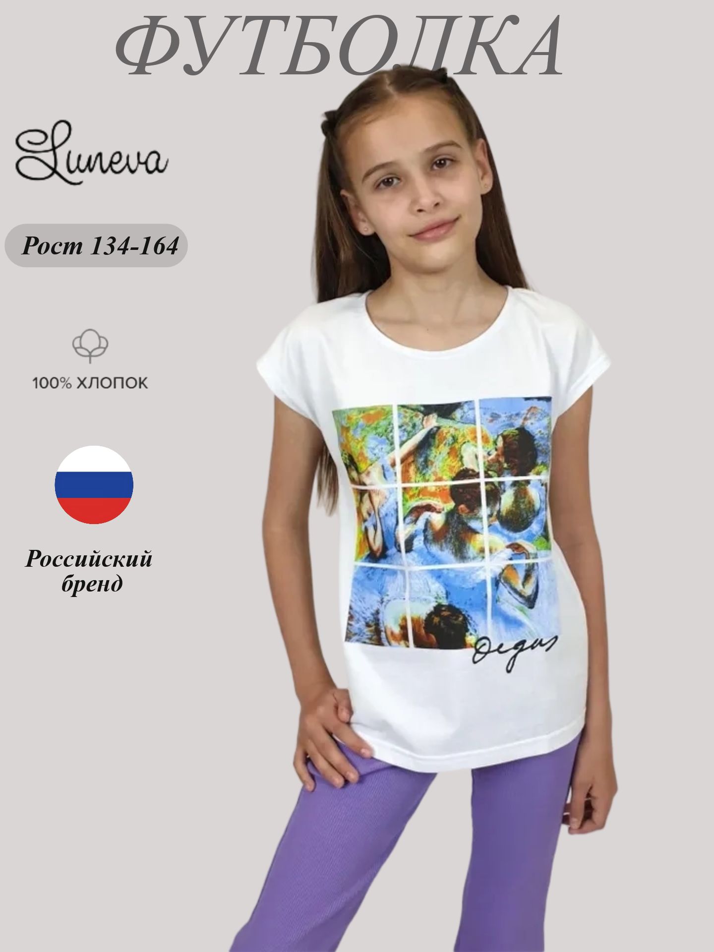 Кулирное полотно:100% х/б. Фуфайка-полуприлегающего силуэта с цельнокроеным рукавом.Перед с печатью.Горловина окантована и подшита.