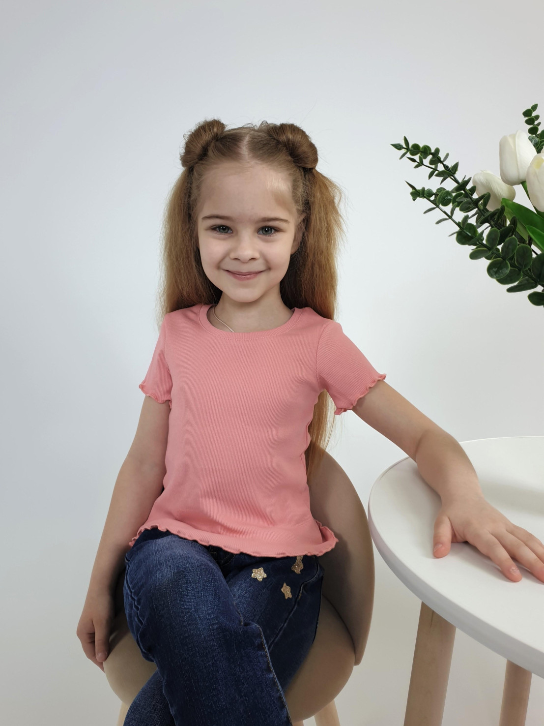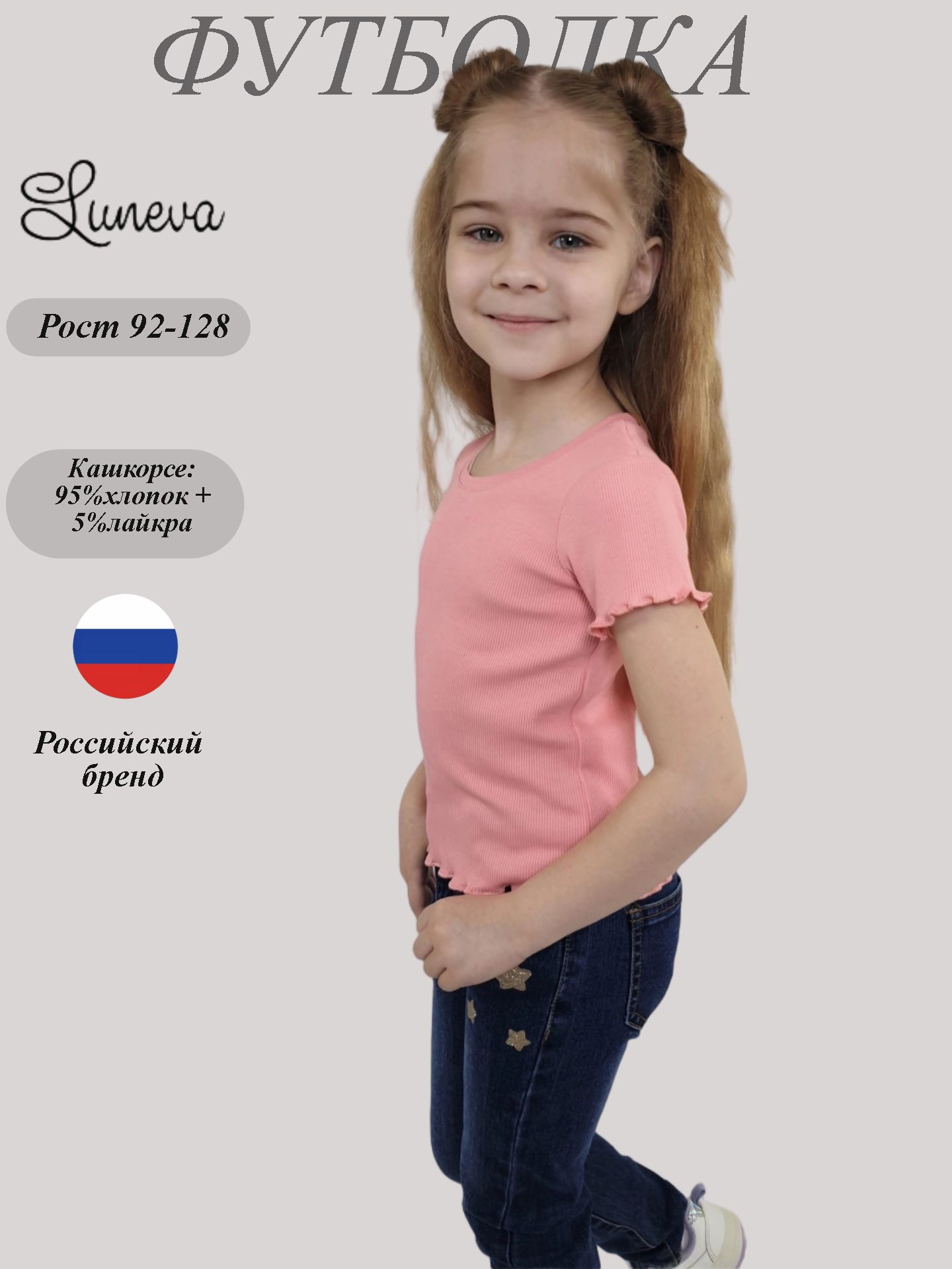 Нежная футболка-кашкорсе для девочек из дышащего хлопка с добавлением эластана. Идеальна для повседневного образа! Яркий акцент – аккуратные детали обработки: горловина с удобной планкой и низ с изящной спиралью. Удобный крой подчеркнёт естественную грацию ребёнка, а мягкий материал обеспечит комфорт даже в жаркие дни. Стильный оттенок "розовый нюд" подходит как для прогулок, так и под джинсами или юбками бренда Luneva.