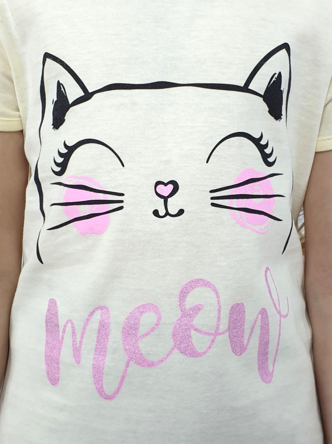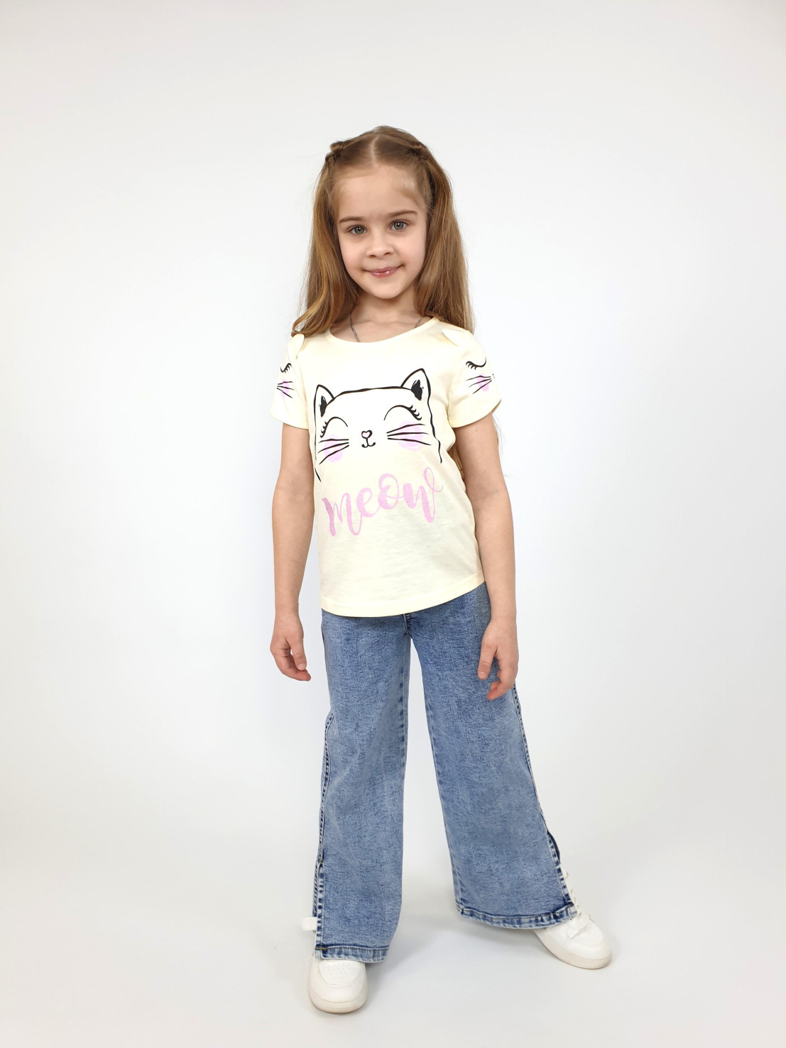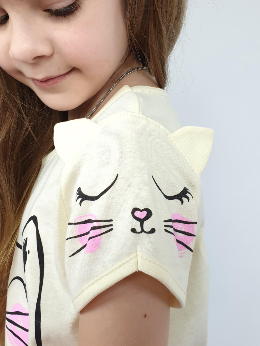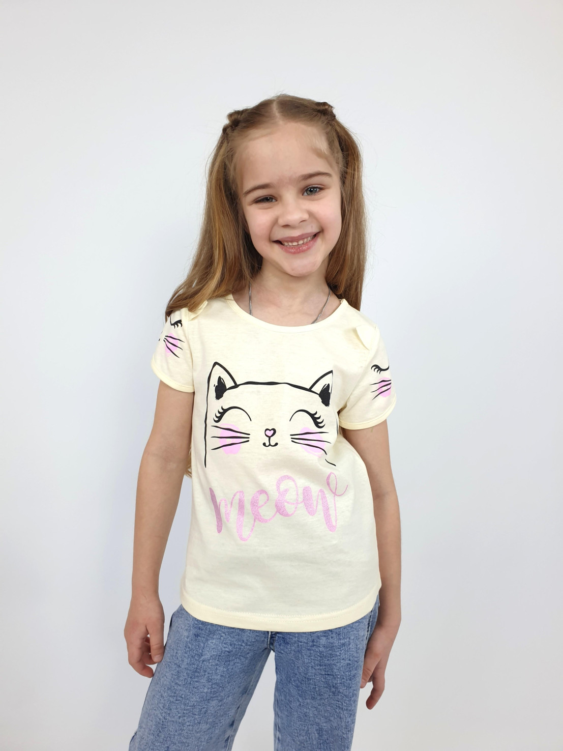 Кулирное полотно:100% х/б. Фуфайка-прямого силуэта,перед и рукава с печатью.Рукав втачной,короткий,с отделочными "ушками".Горловина и низ окантованы.