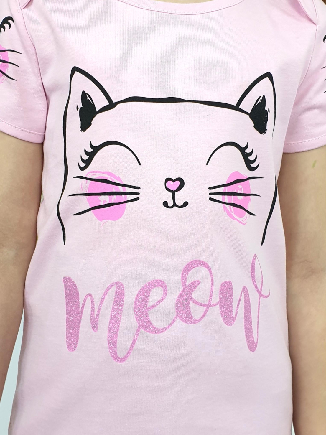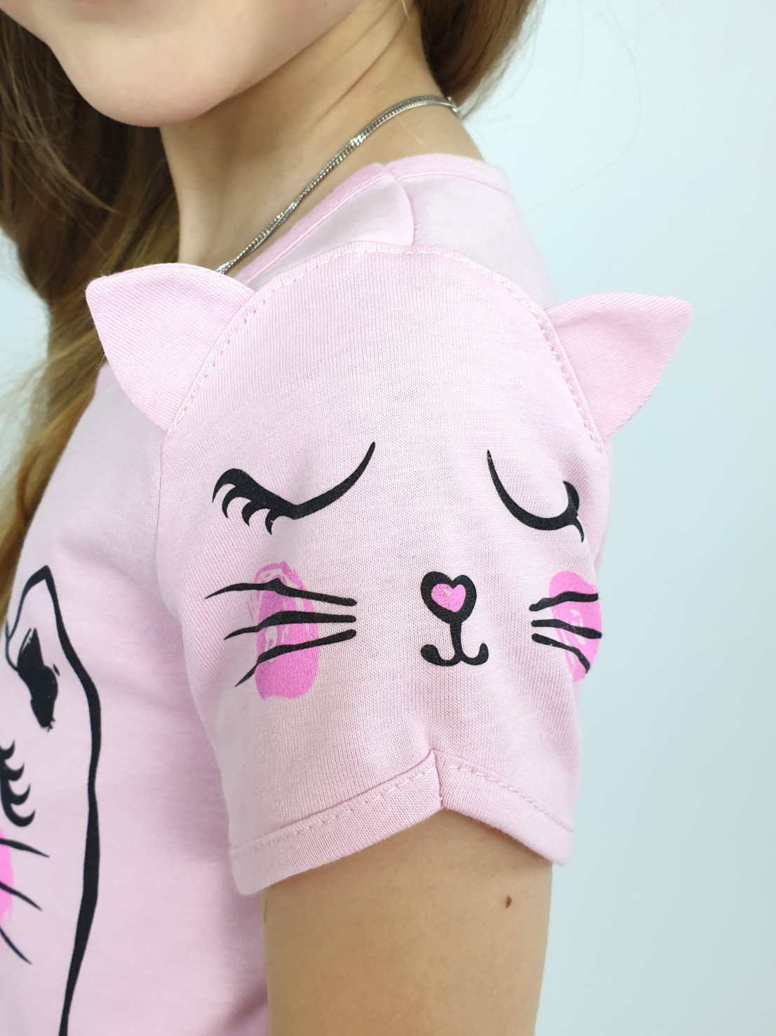 Кулирное полотно:100% х/б. Фуфайка-прямого силуэта,перед и рукава с печатью.Рукав втачной,короткий,с отделочными "ушками".Горловина и низ окантованы.