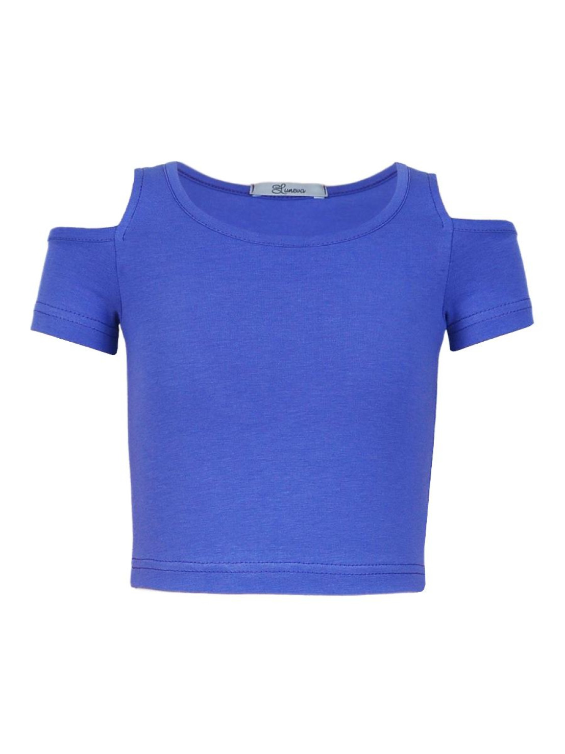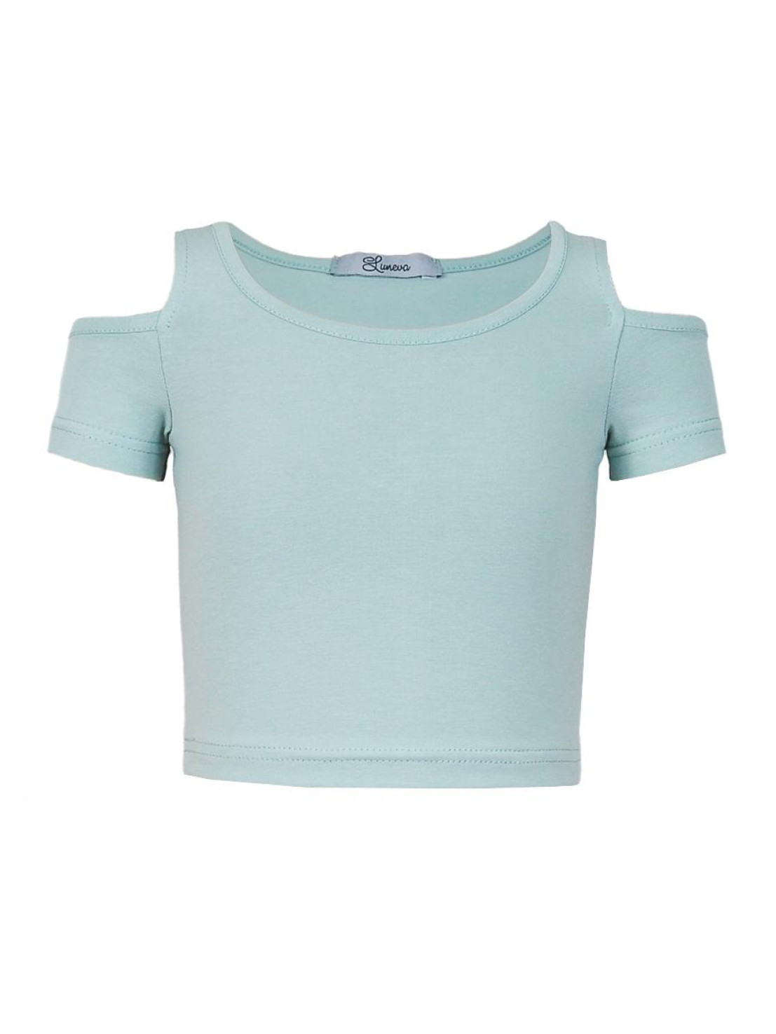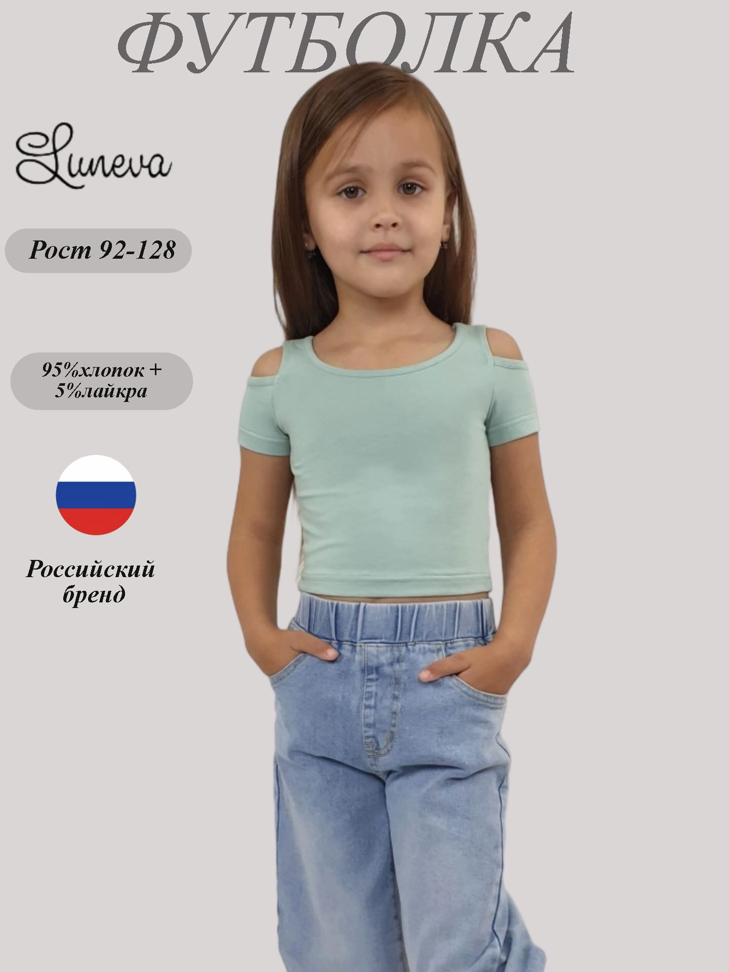 Кулирное полотно: 95% х/б,5% лайкра. Фуфайка-укороченная с коротким рукавом,с вырезом на плече.Горловина окантована.