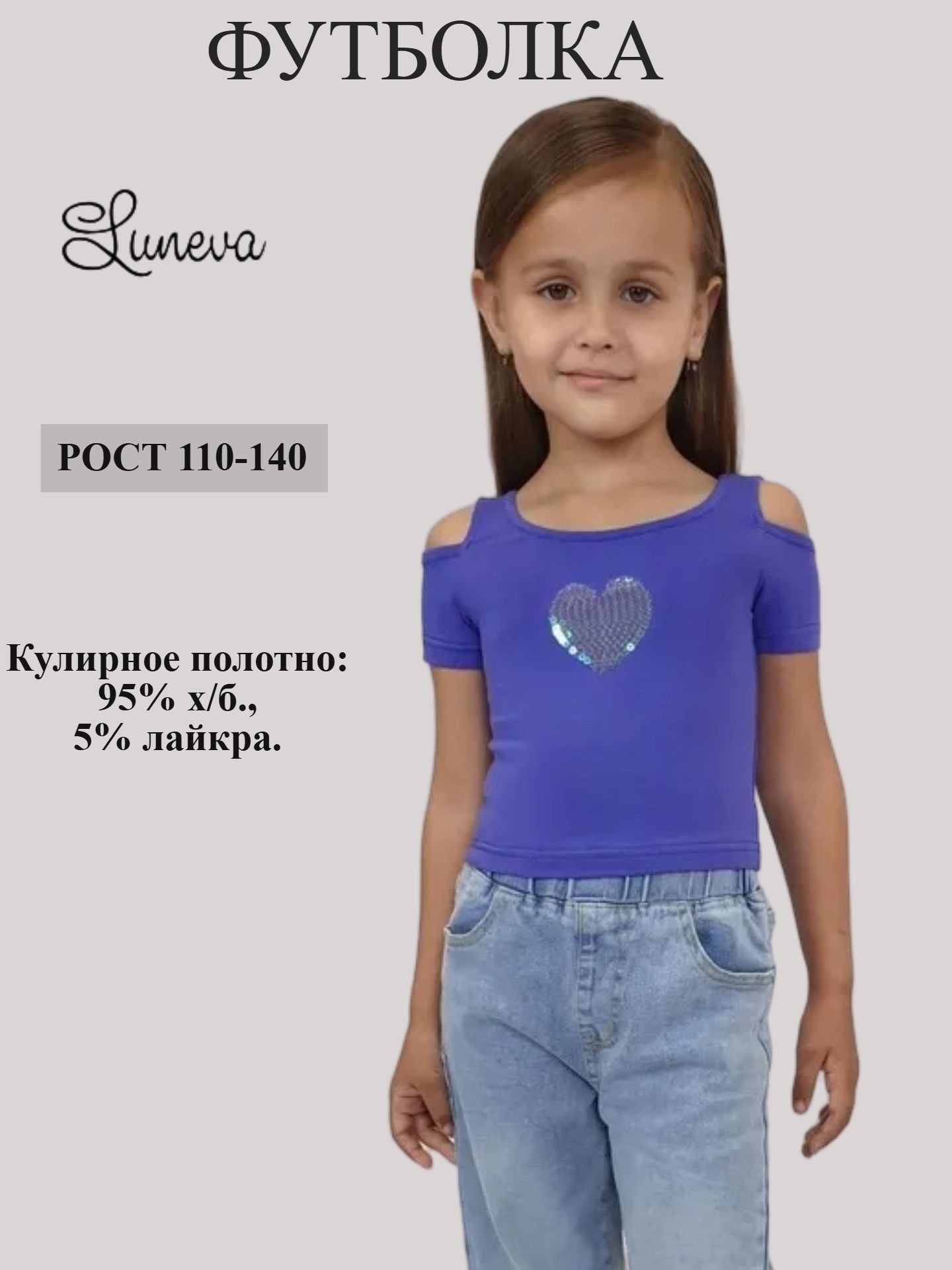 Кулирное полотно: 95% х/б,5% лайкра. Фуфайка-укороченная с коротким рукавом,с вырезом на плече.Горловина окантована.Перед с вышивкой.