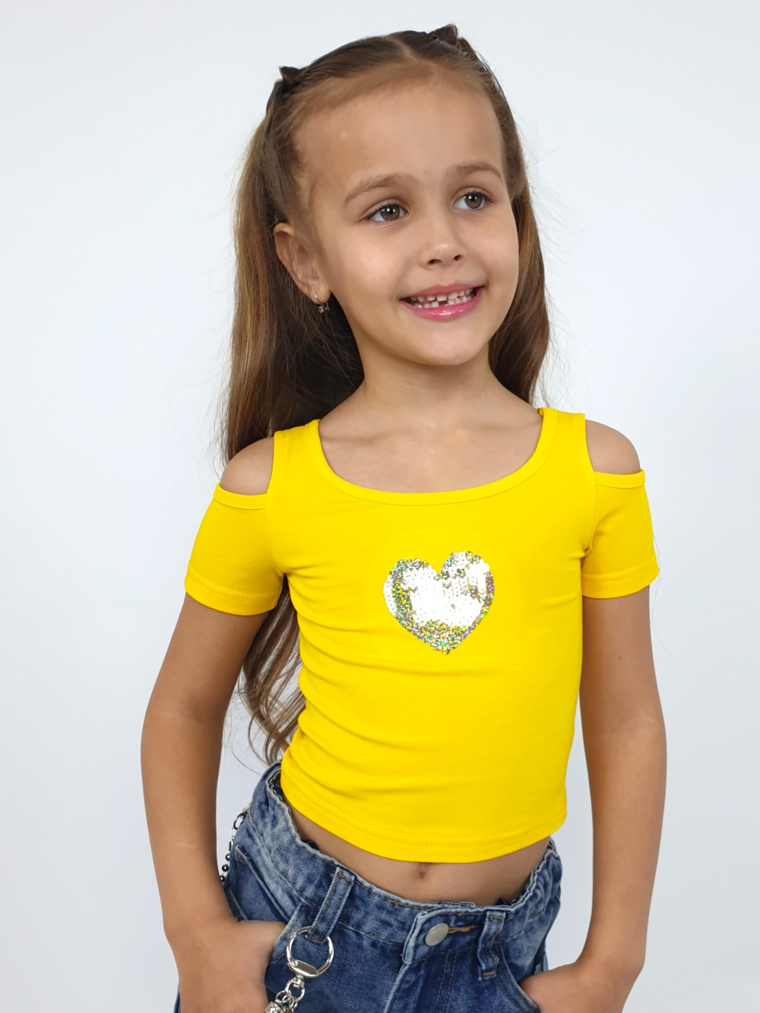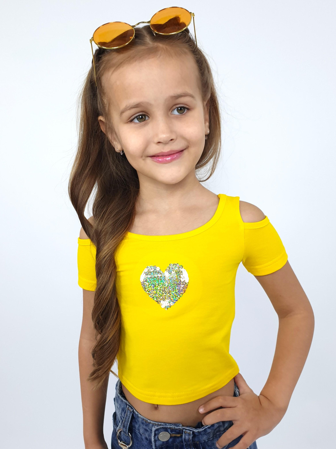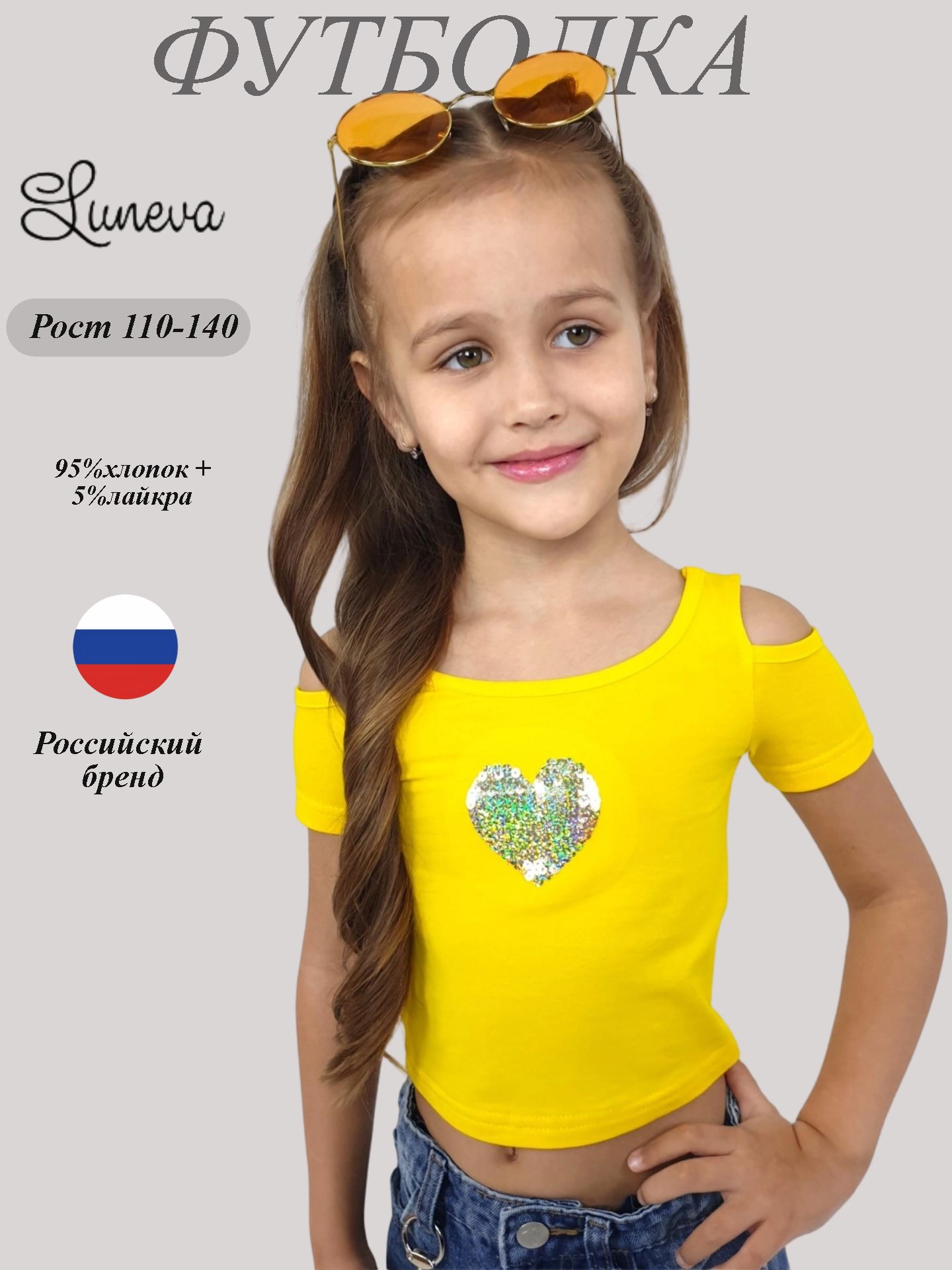 Эта яркая футболочка обязательно привлечёт внимание! Желтый цвет поднимет настроение, а стильный дизайн подчеркнёт индивидуальность вашей малышки. Эластичный кулирный трикотаж обеспечивает комфорт даже при активных играх. Бренд Lunева — качество, проверенное родителями. Выбирайте стильную одежду для своих принцесс уже сейчас!»
