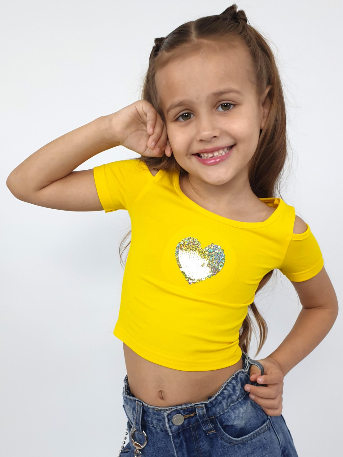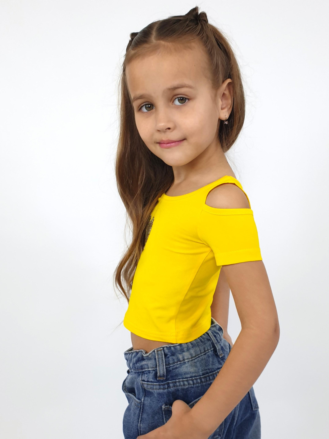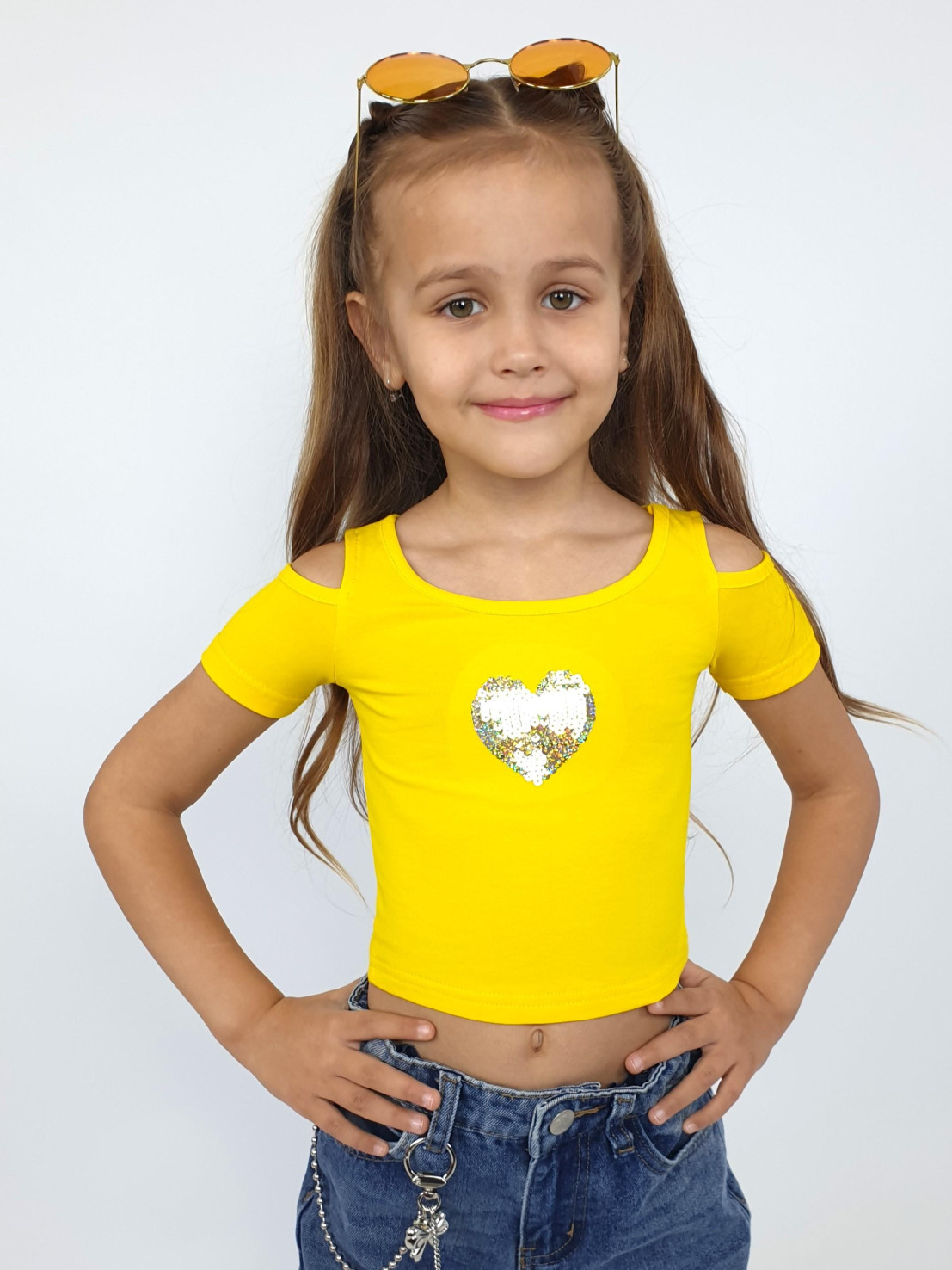 Эта яркая футболочка обязательно привлечёт внимание! Желтый цвет поднимет настроение, а стильный дизайн подчеркнёт индивидуальность вашей малышки. Эластичный кулирный трикотаж обеспечивает комфорт даже при активных играх. Бренд Lunева — качество, проверенное родителями. Выбирайте стильную одежду для своих принцесс уже сейчас!»