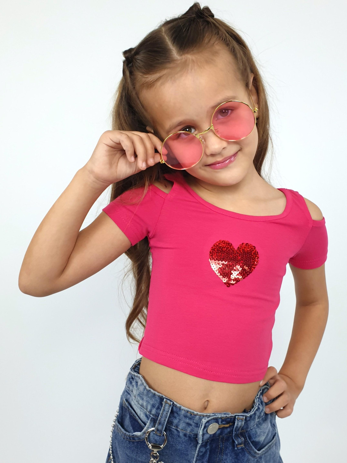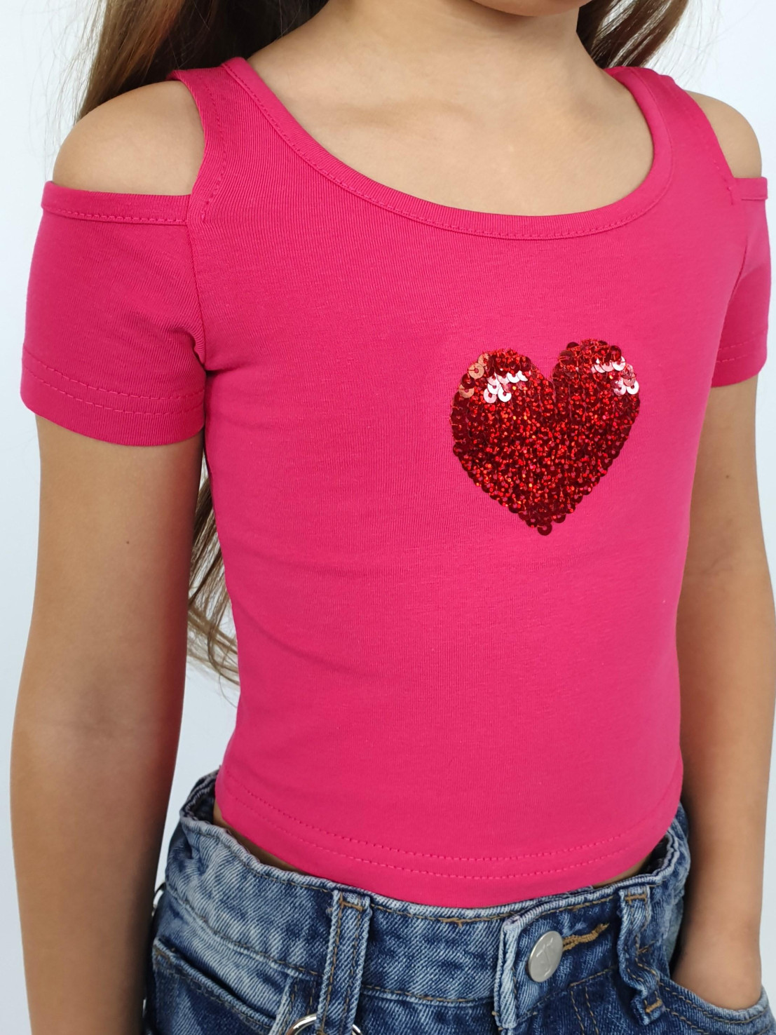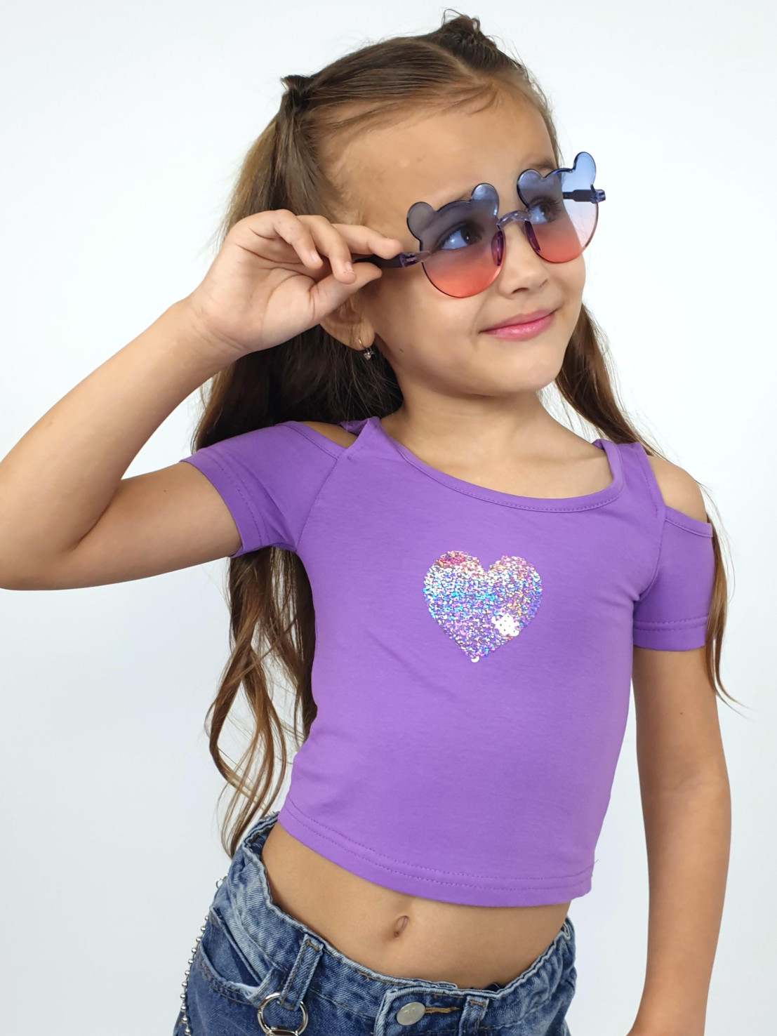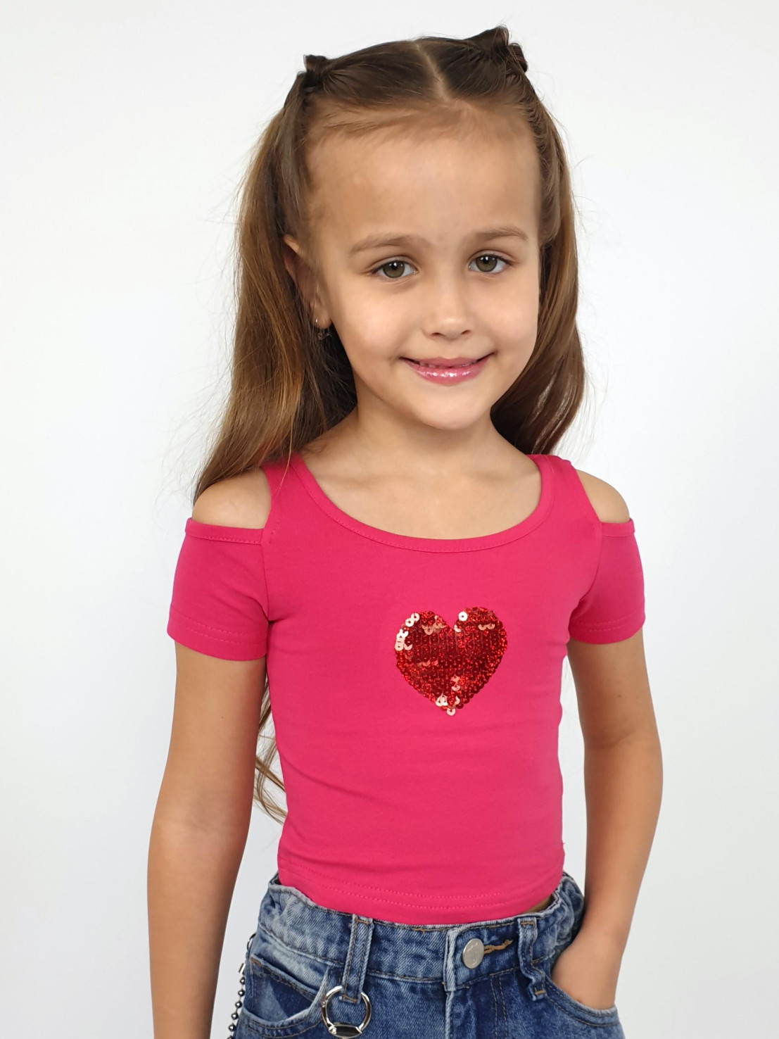 Кулирное полотно: 95% х/б,5% лайкра. Фуфайка-укороченная с коротким рукавом,с вырезом на плече.Горловина окантована.Перед с вышивкой.