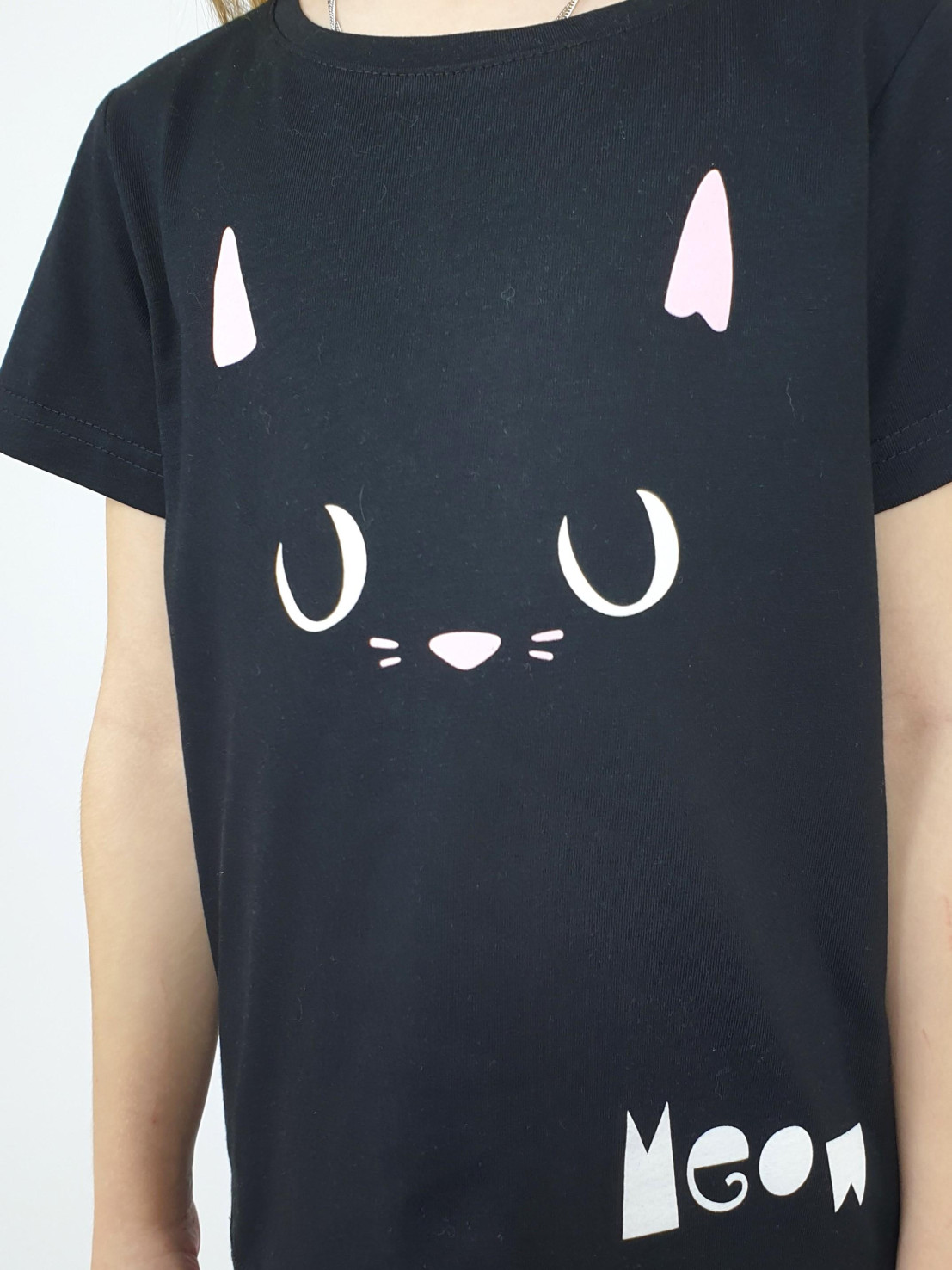 Кулирное полотно:100% х/б. Фуфайка(пижамная)-прямая,рукав втачной,короткий.Горловина обработана планкой.Печать на переде. Брюки(пижамные)-длинные прямые,верхний срез подшит с резинкой.Печать на передних половинках.