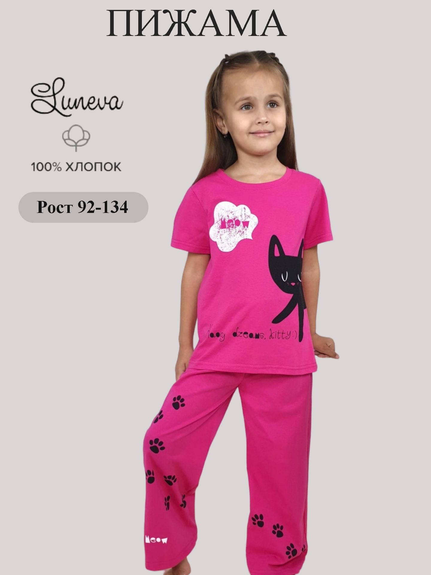 Погрузитесь в мир нежности вместе с детской пижамой от бренда Lunева! Пижама выполнена из мягкого кулирного полотна (100% хлопок) розового оттенка фуксии, который обязательно порадует маленькую модницу. Комфорт дополняется удобным фасоном: удобная короткая кофточка с круглой горловиной и брюки с удобной резинкой. Уютно, стильно и безопасно для кожи вашего ребенка!