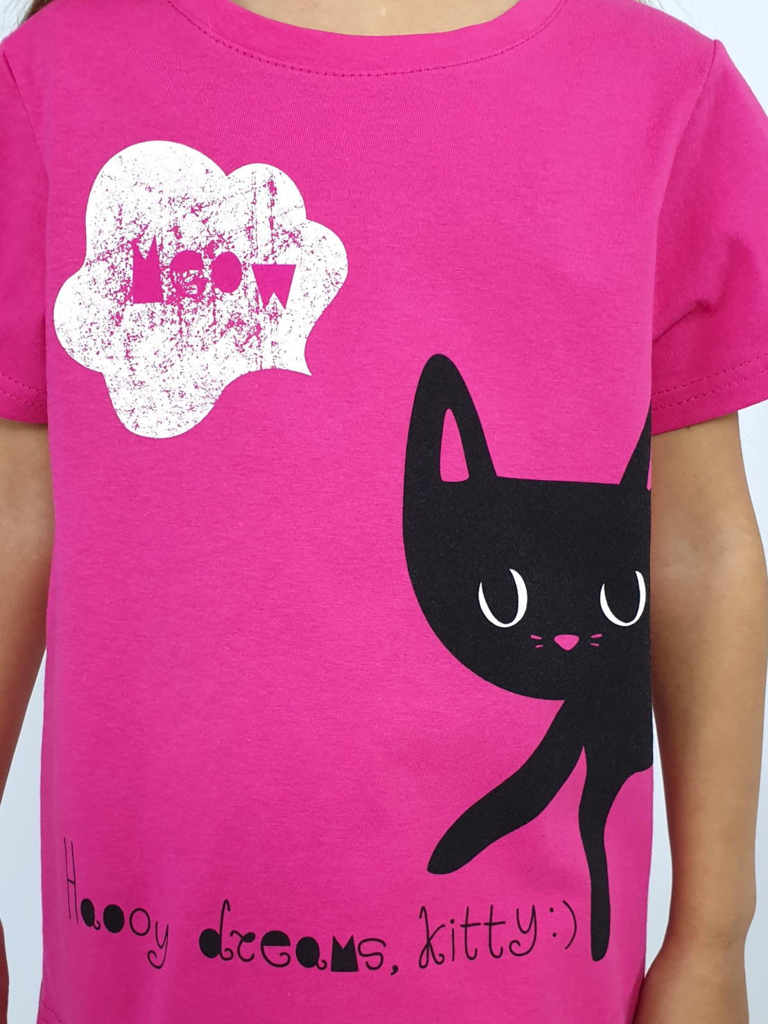 Кулирное полотно:100% х/б. Фуфайка(пижамная)-прямая,рукав втачной,короткий.Горловина обработана планкой.Печать на переде. Брюки(пижамные)-длинные прямые,верхний срез подшит с резинкой.Печать на передних половинках.