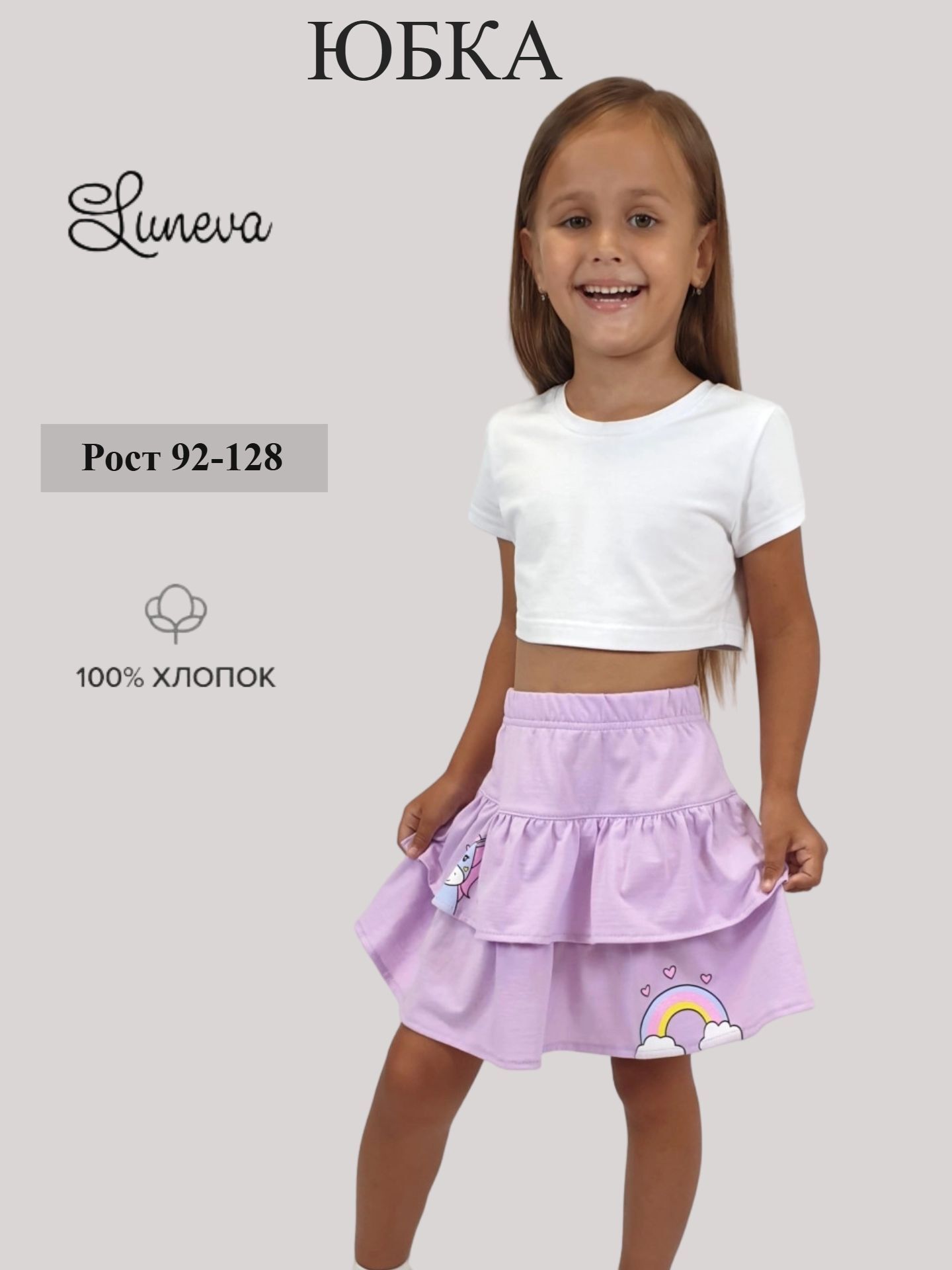 Юбка представлена в стиле повседневного chic, идеально подойдет как для прогулок по городу, так и в качестве элемента стильного выходного образа. Закрытый крой делает модель подходящей для женщин любого возраста. Товар произведен в России компанией «Lunева». Печатное изображение наносится исключительно на верхний слой ткани (на рюшу), что гарантирует его стойкость и насыщенность цвета при длительной носке и стирках.