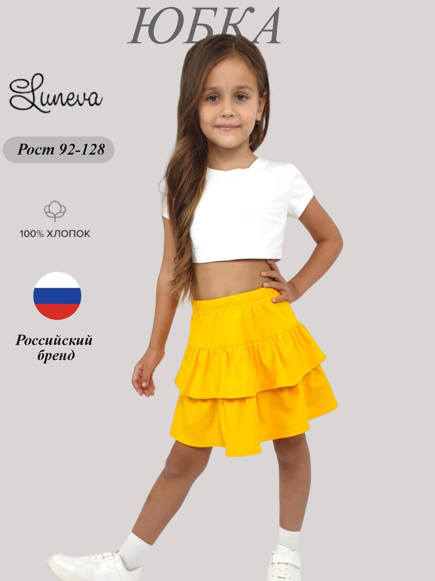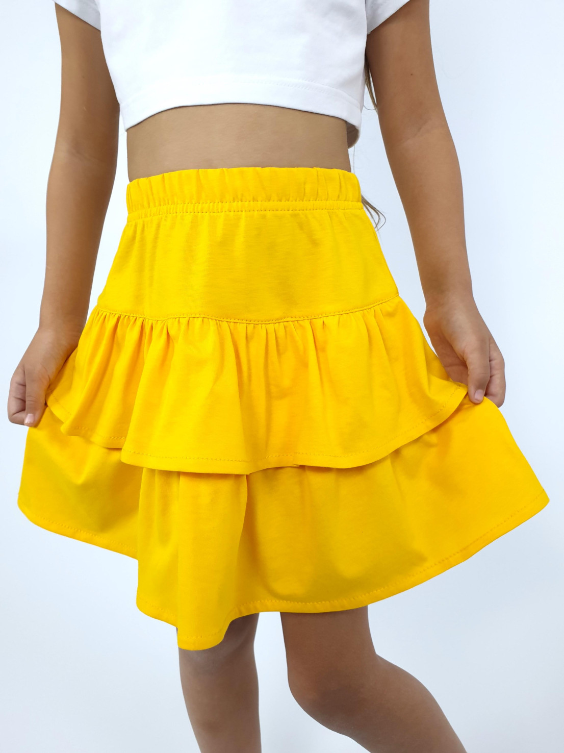 Кулирное полотно:100% х/б. Юбка-на кокетке с резинкой и двумя рюшами.