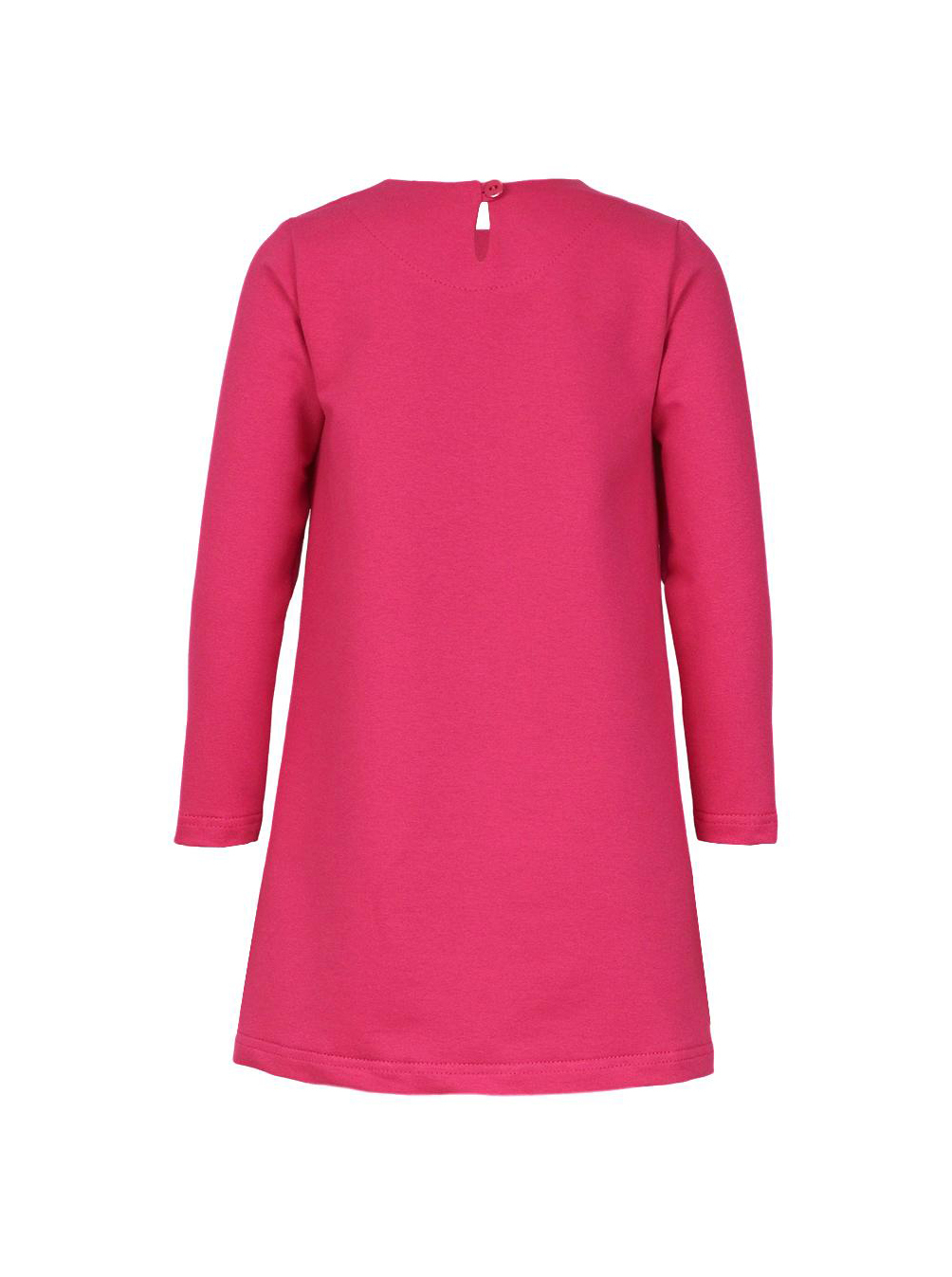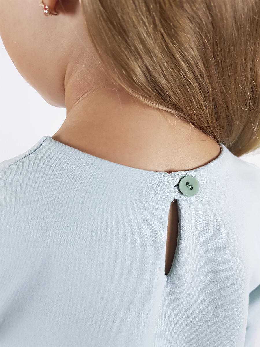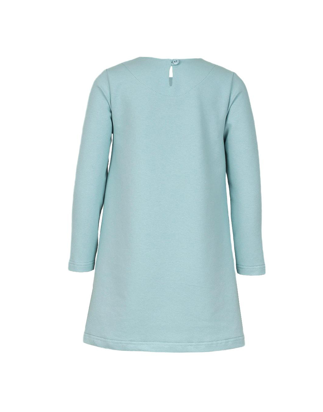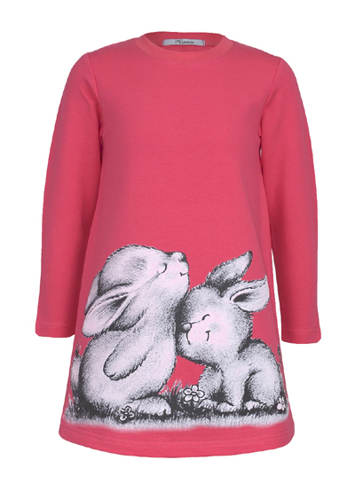 Футер 2-х нитка:80% х/б,14% п/э,6% лайкра. Платье-силуэт трапеция,без воротника,застежка на пуговицу по спинке.Втачной длинный рукав.Печать на полочке,внизу.