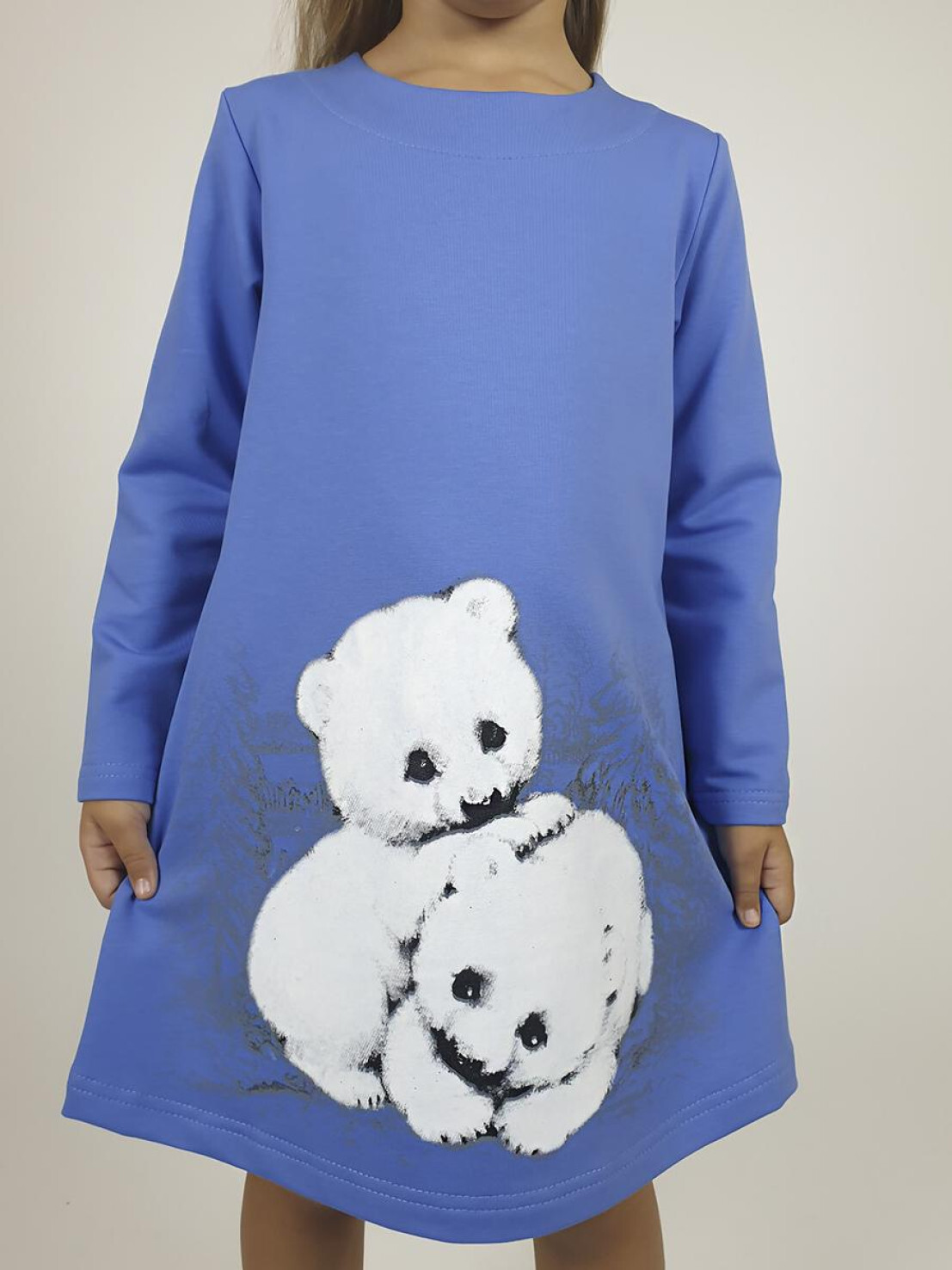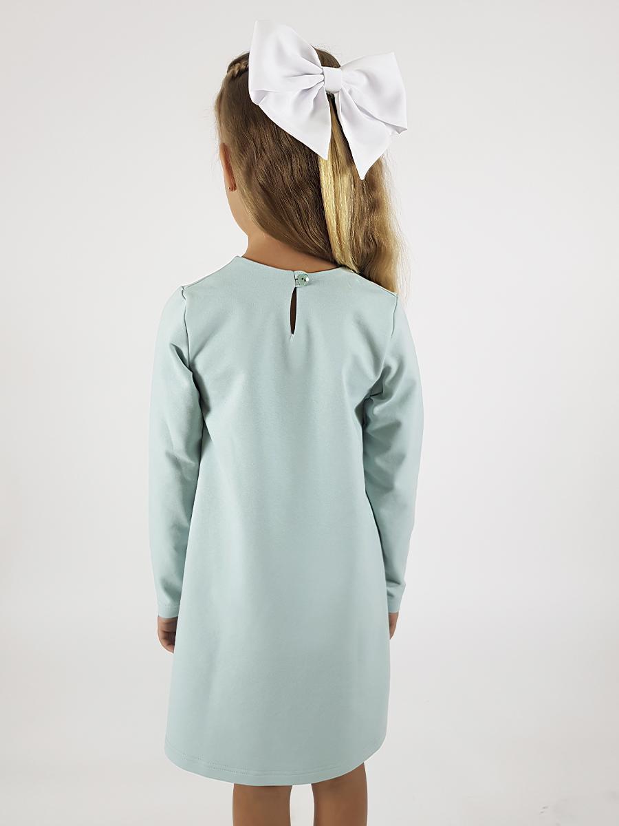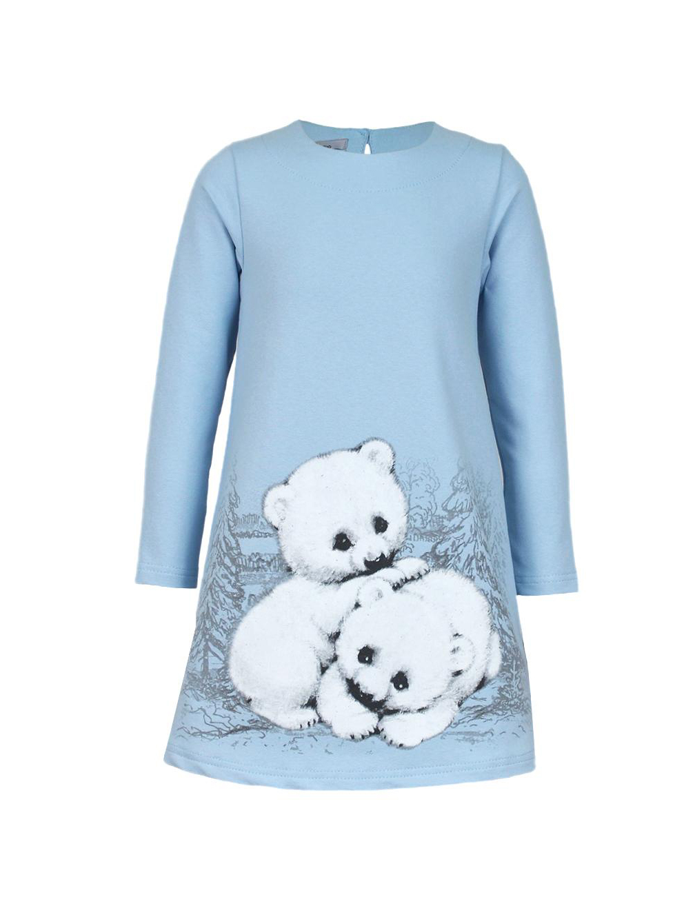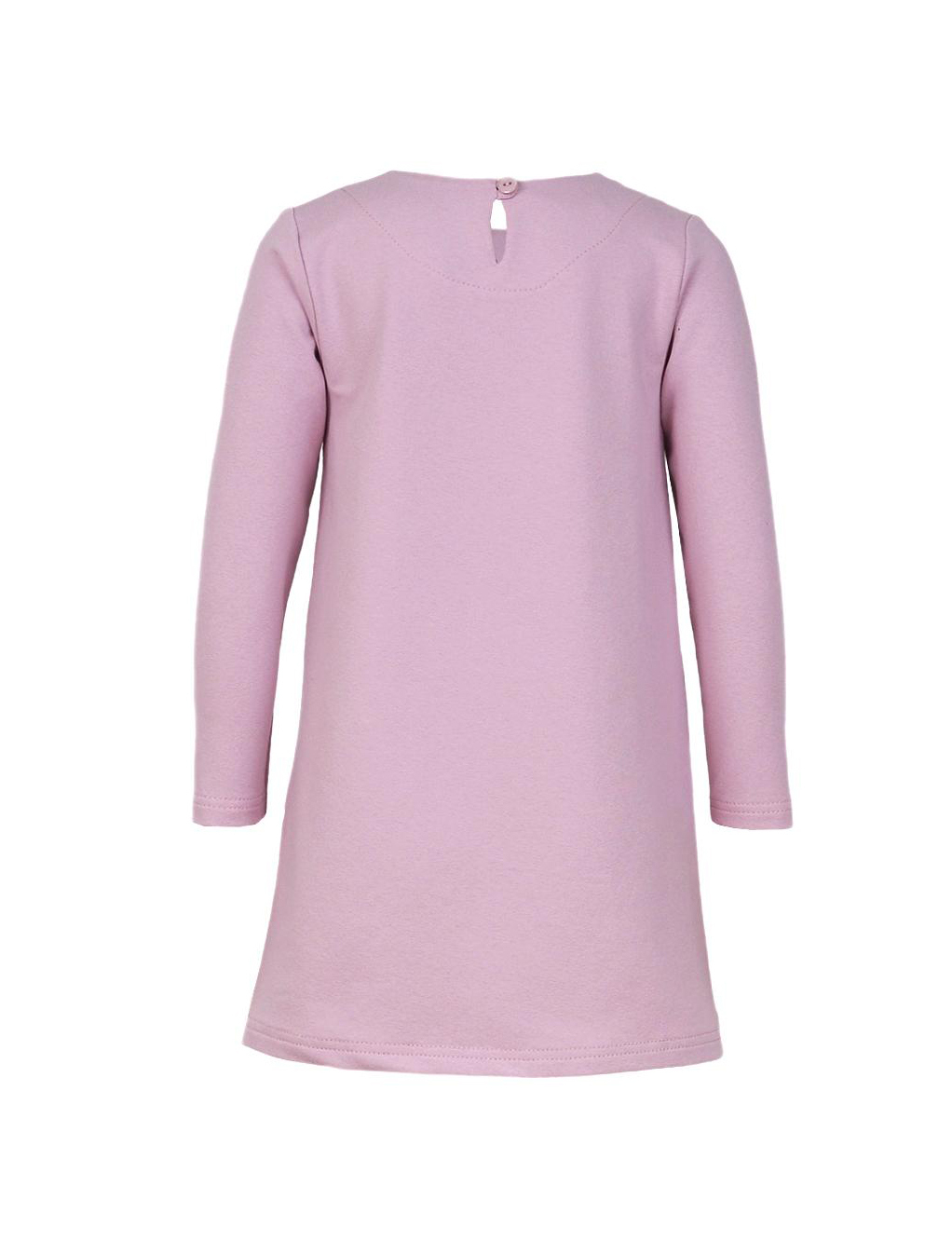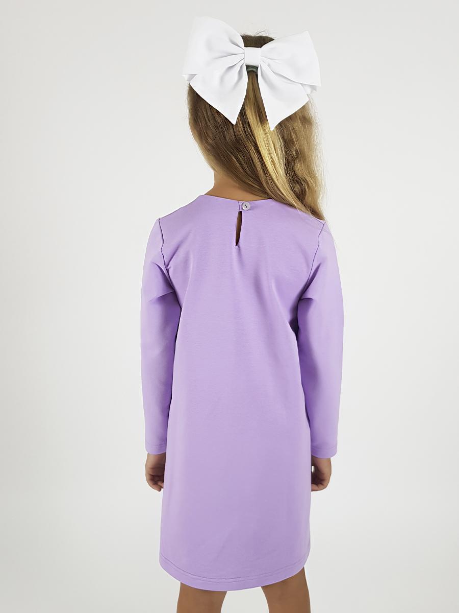Футер 2-х нитка:80% х/б,14% п/э,6 % лайкра. Платье-силуэт трапеция,без воротника,застежка на пуговицу по спинке.Втачной длинный рукав.Печать на полочке,внизу.