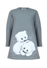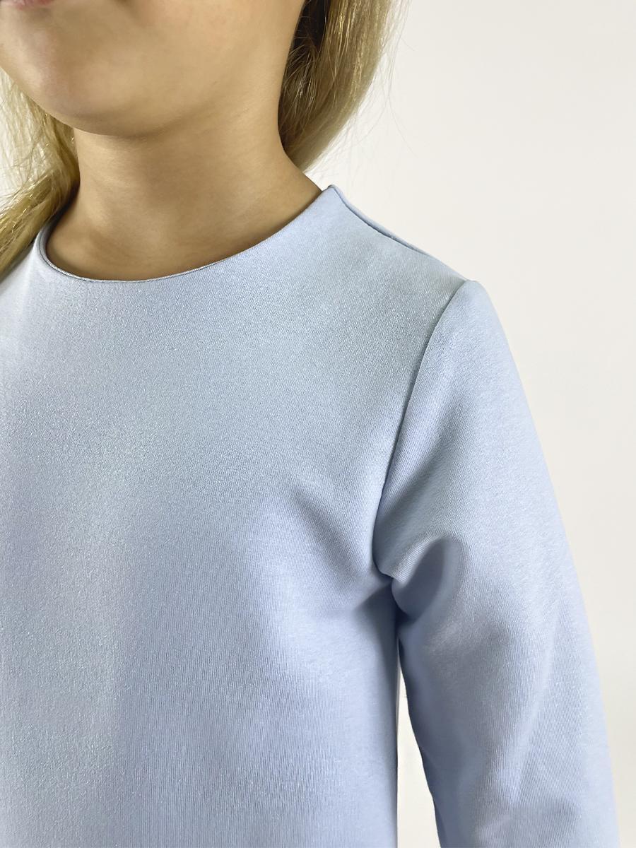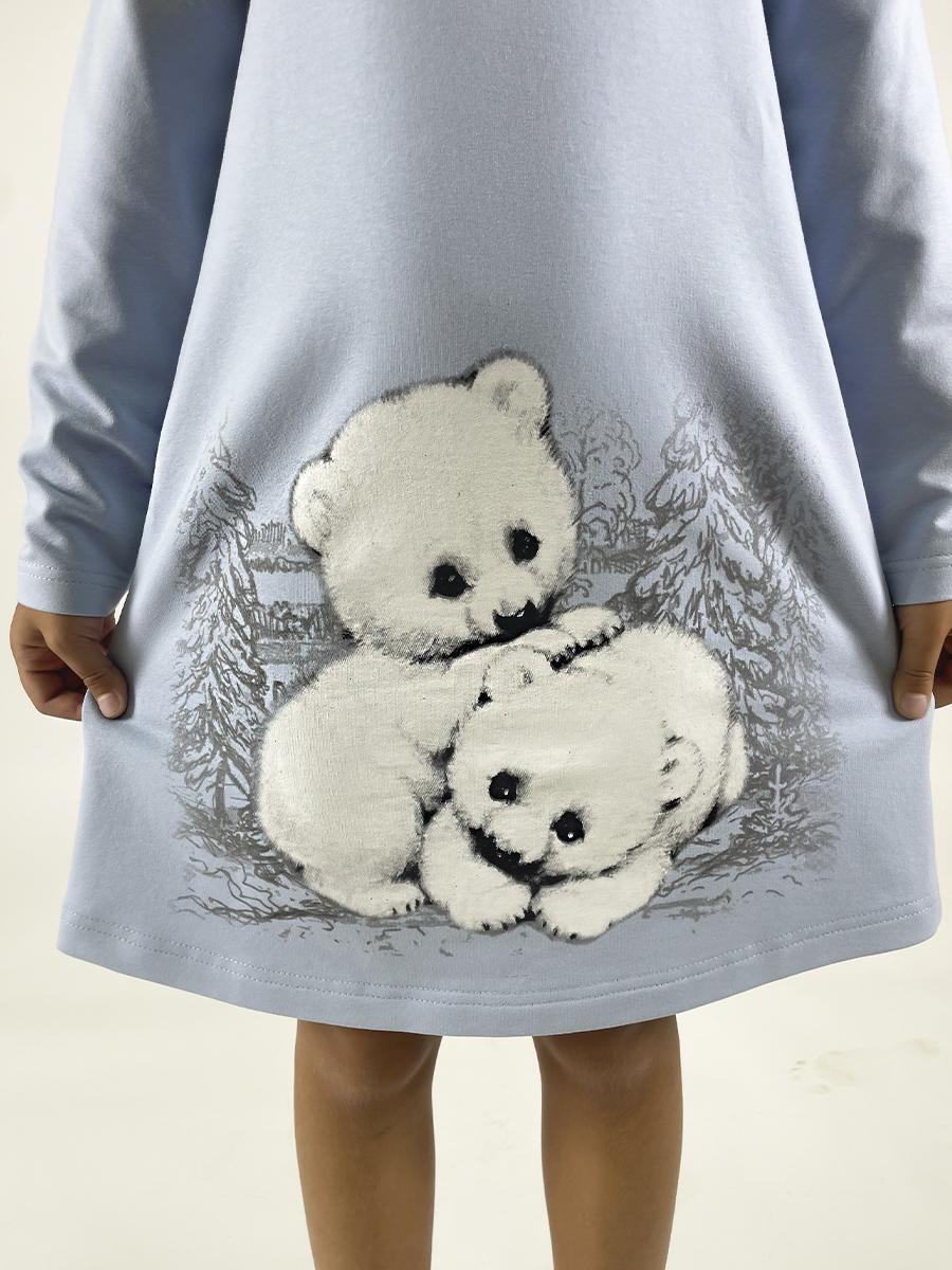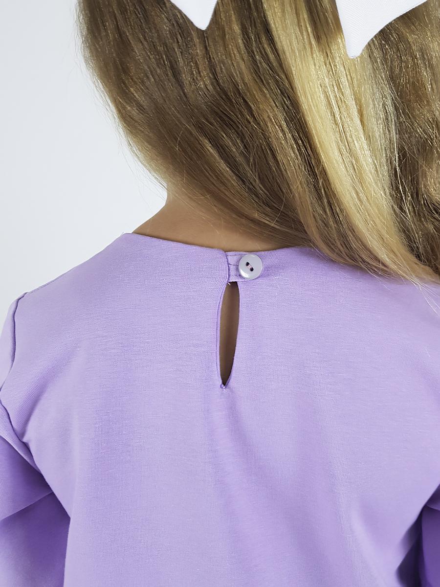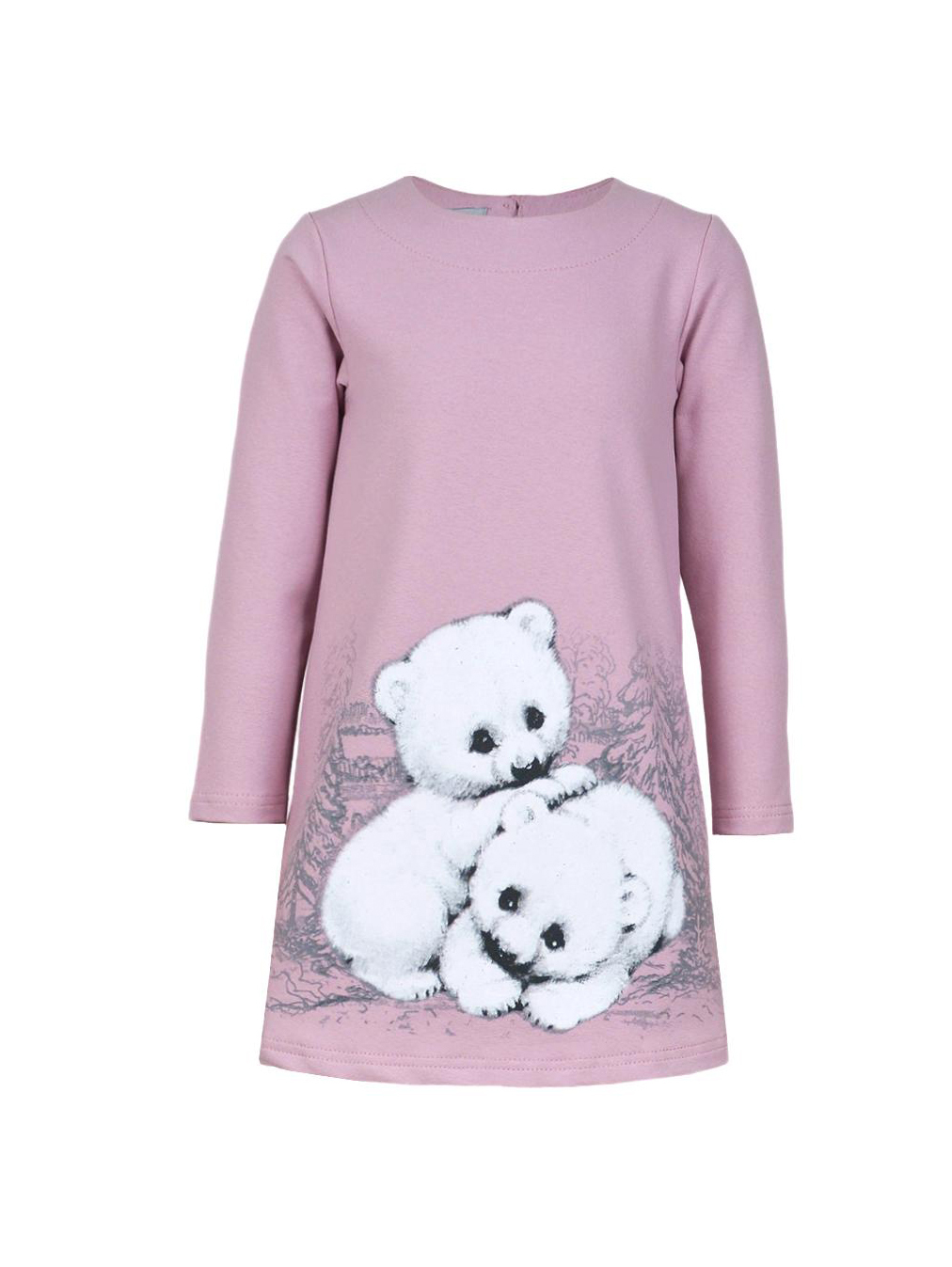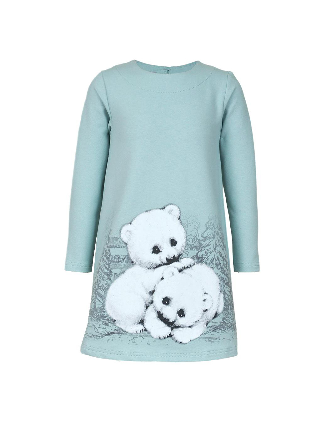 Футер 2-х нитка:80% х/б,14% п/э,6 % лайкра. Платье-силуэт трапеция,без воротника,застежка на пуговицу по спинке.Втачной длинный рукав.Печать на полочке,внизу.