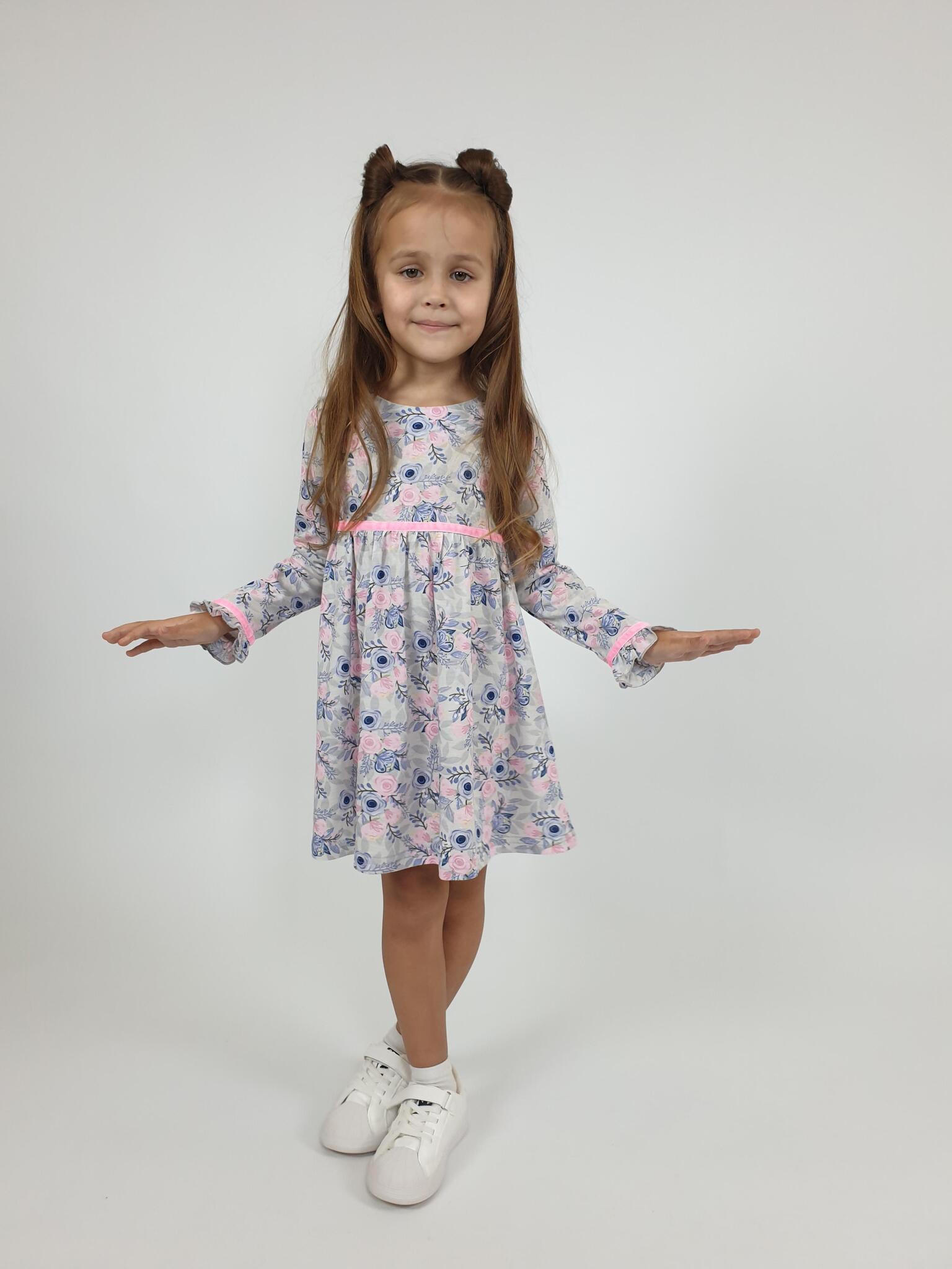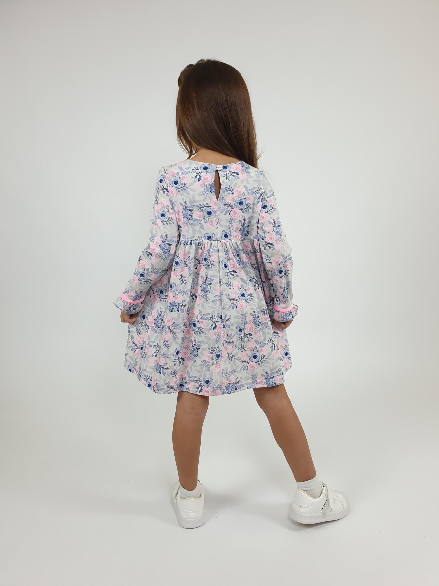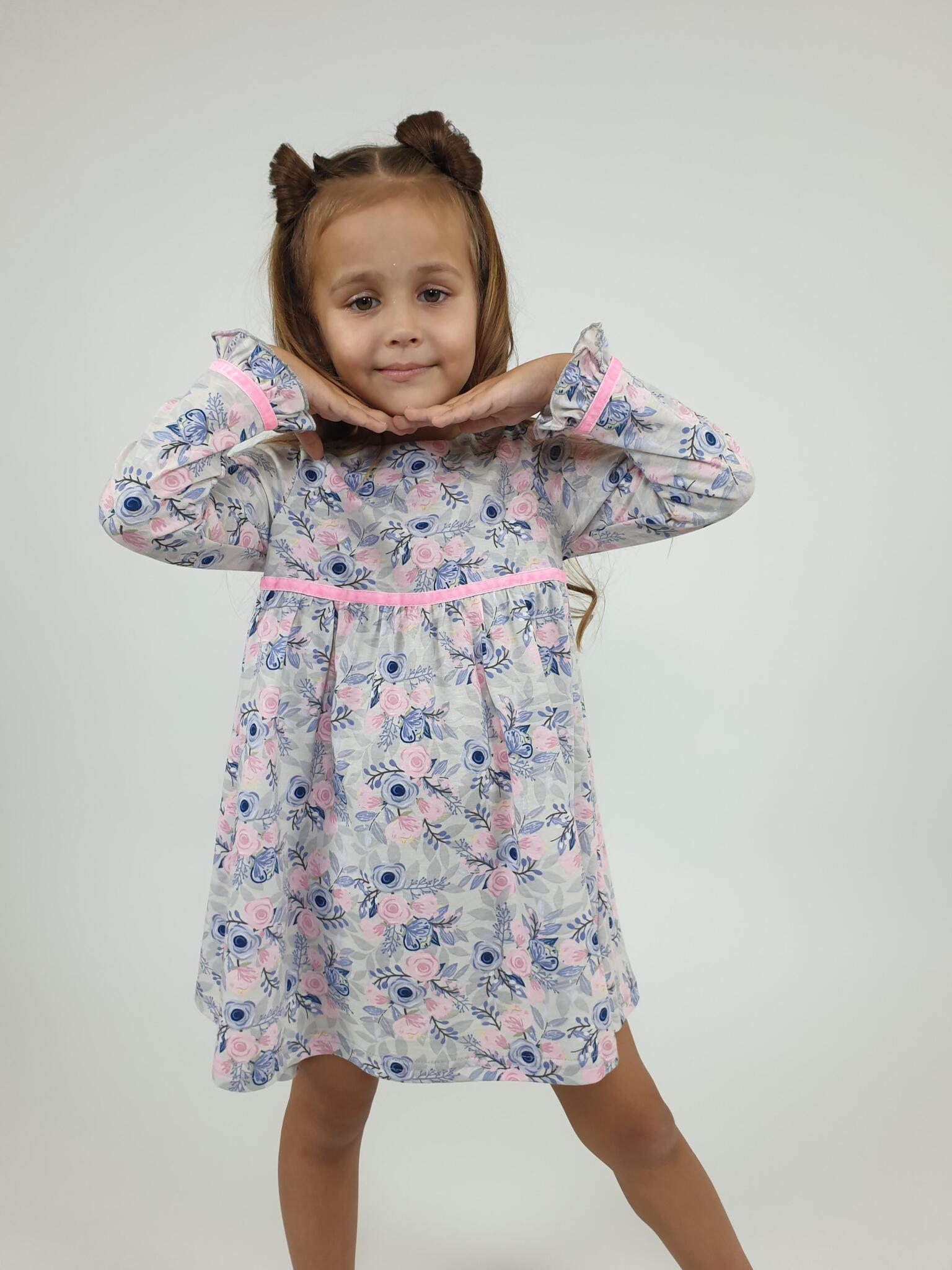 Платье -завышена линия талии с кокеткой и отделочной тесьмой,юбка со сборкой.Рукав втачной длинный с рюшей и отделочной тесьмой.Застежка по спинке на пуговицу.Горловина обработана обтачкой.Низ изделия подшит.