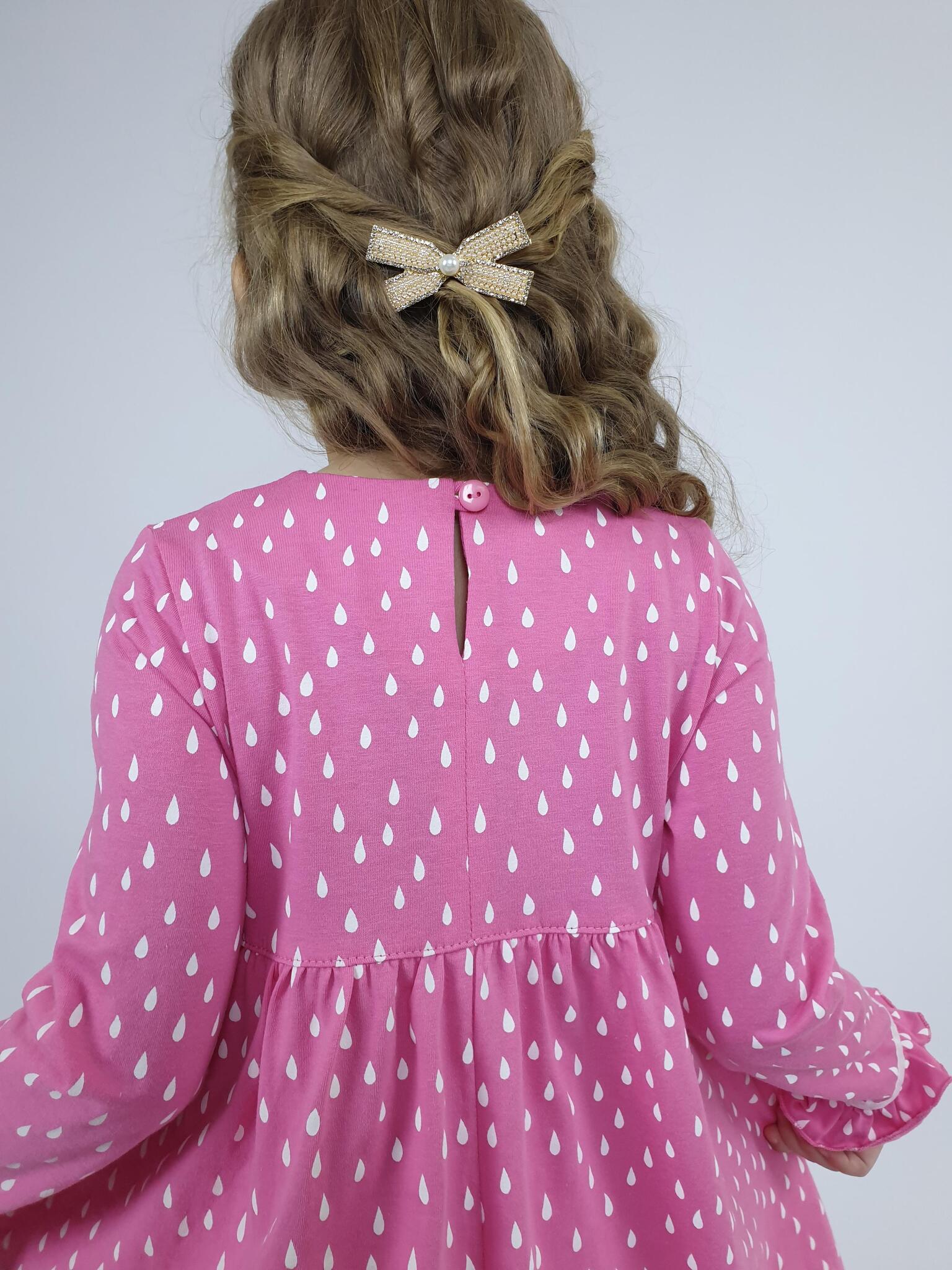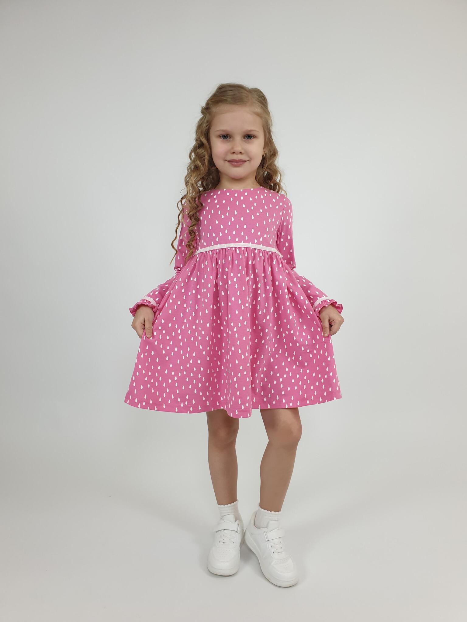 Платье -завышена линия талии с кокеткой и отделочной тесьмой,юбка со сборкой.Рукав втачной длинный с рюшей и отделочной тесьмой.Застежка по спинке на пуговицу.Горловина обработана обтачкой.Низ изделия подшит.