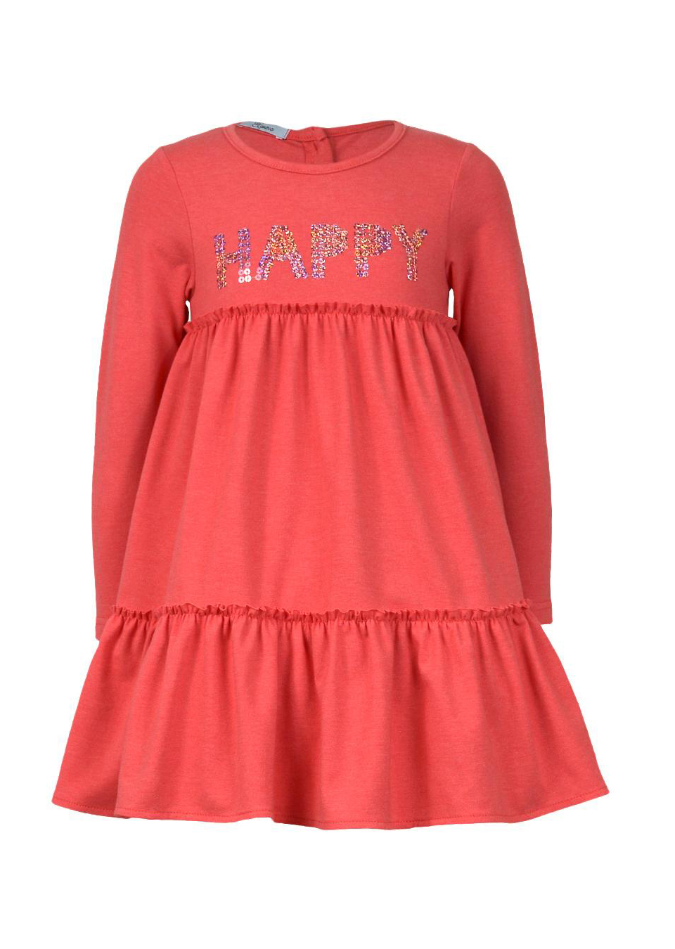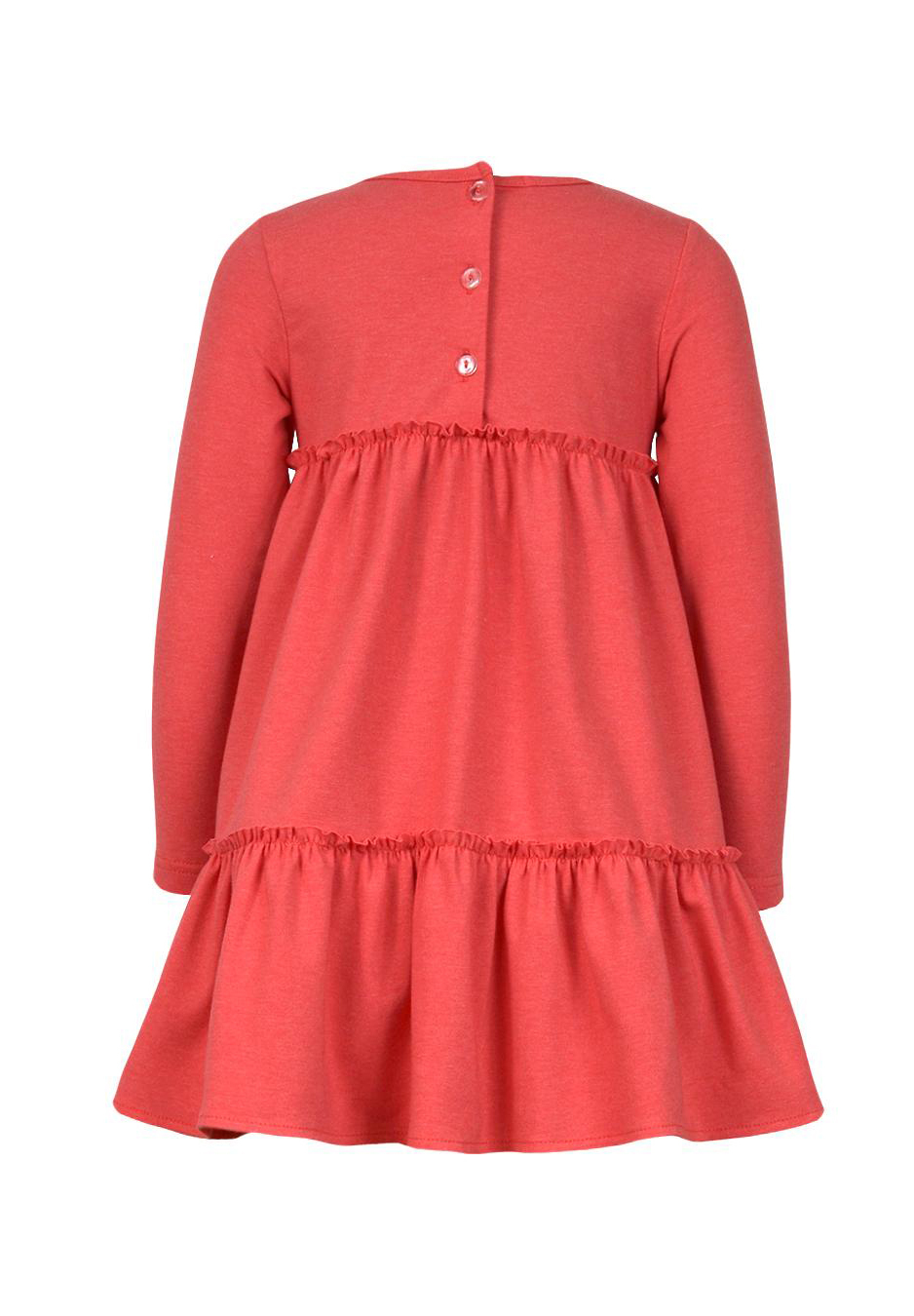 Платье-силуэт трапеция,длинный втачной рукав.Кокетка переда с вышивкой,застежка по кокетке спинки на пуговицы.Юбка переда и спинки из двух воланов.Горловина окантована.