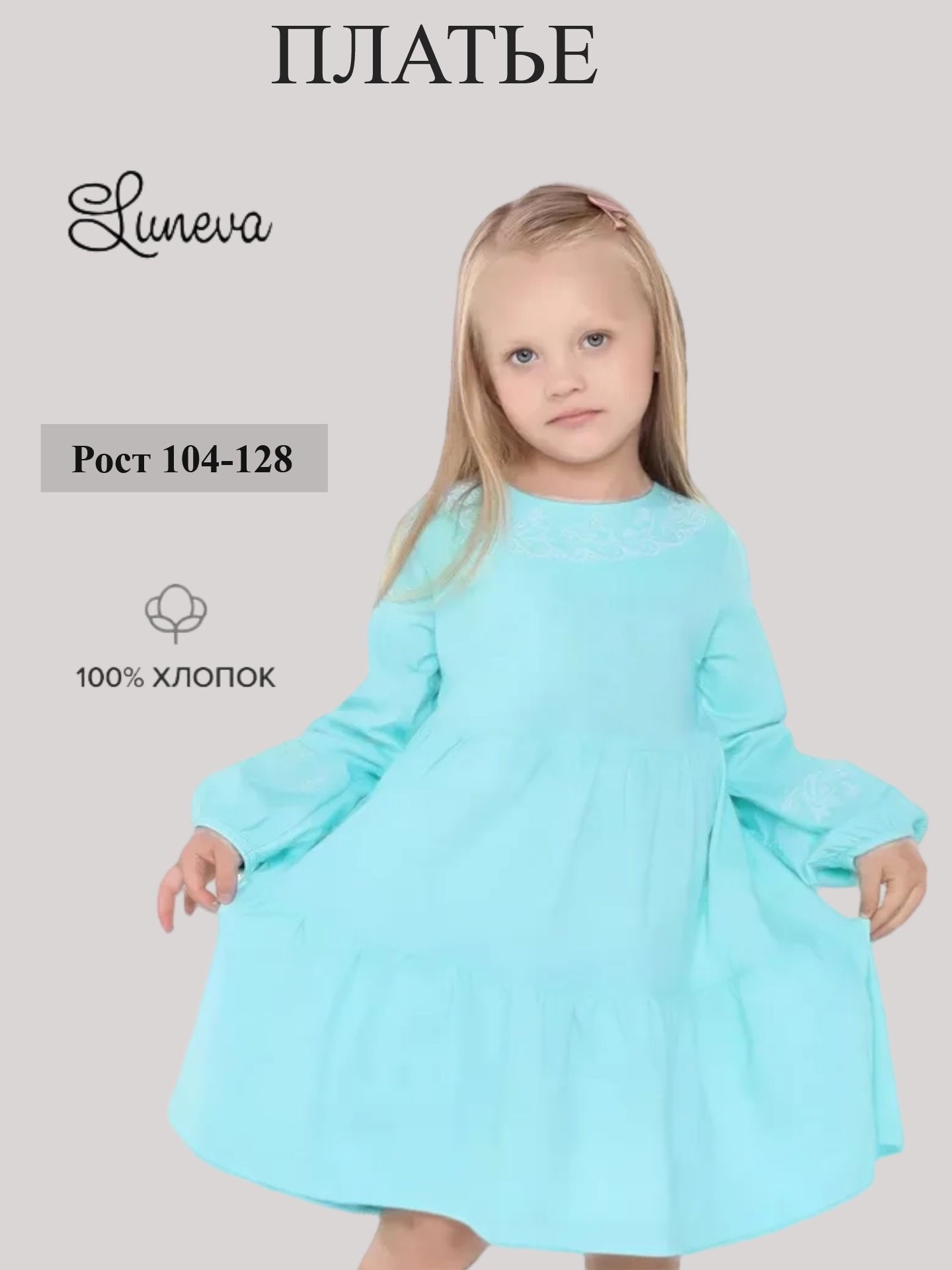 9-68-4 платье для девочки с длинным рукавом Luneva