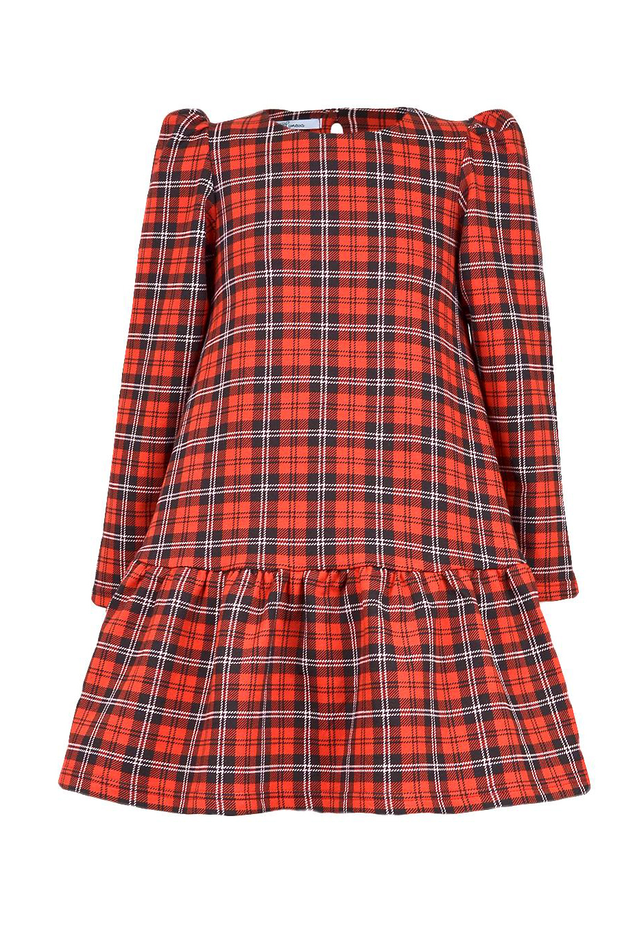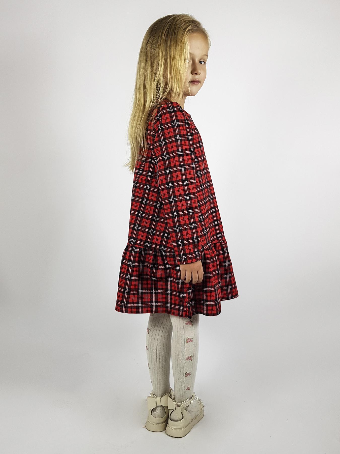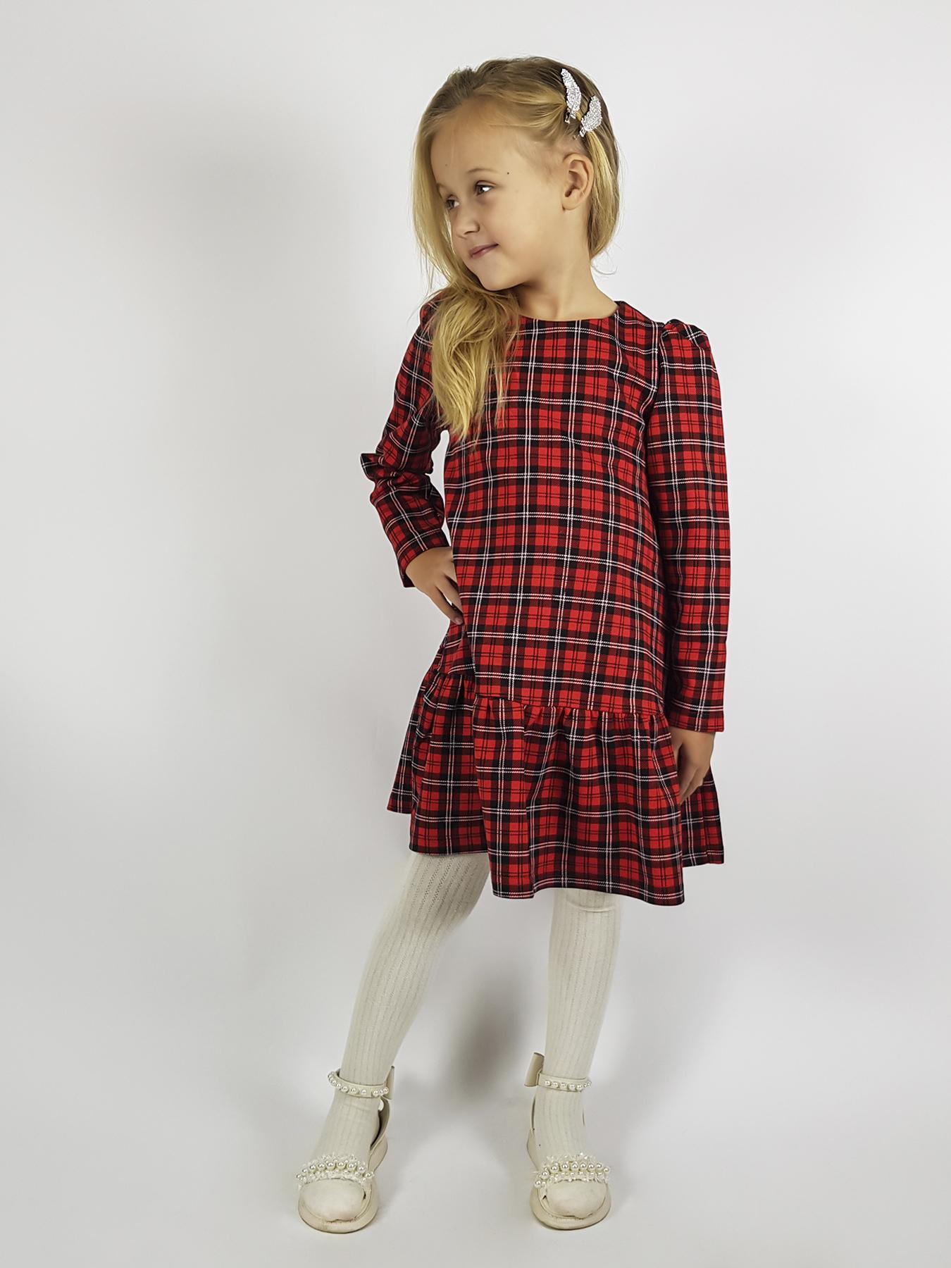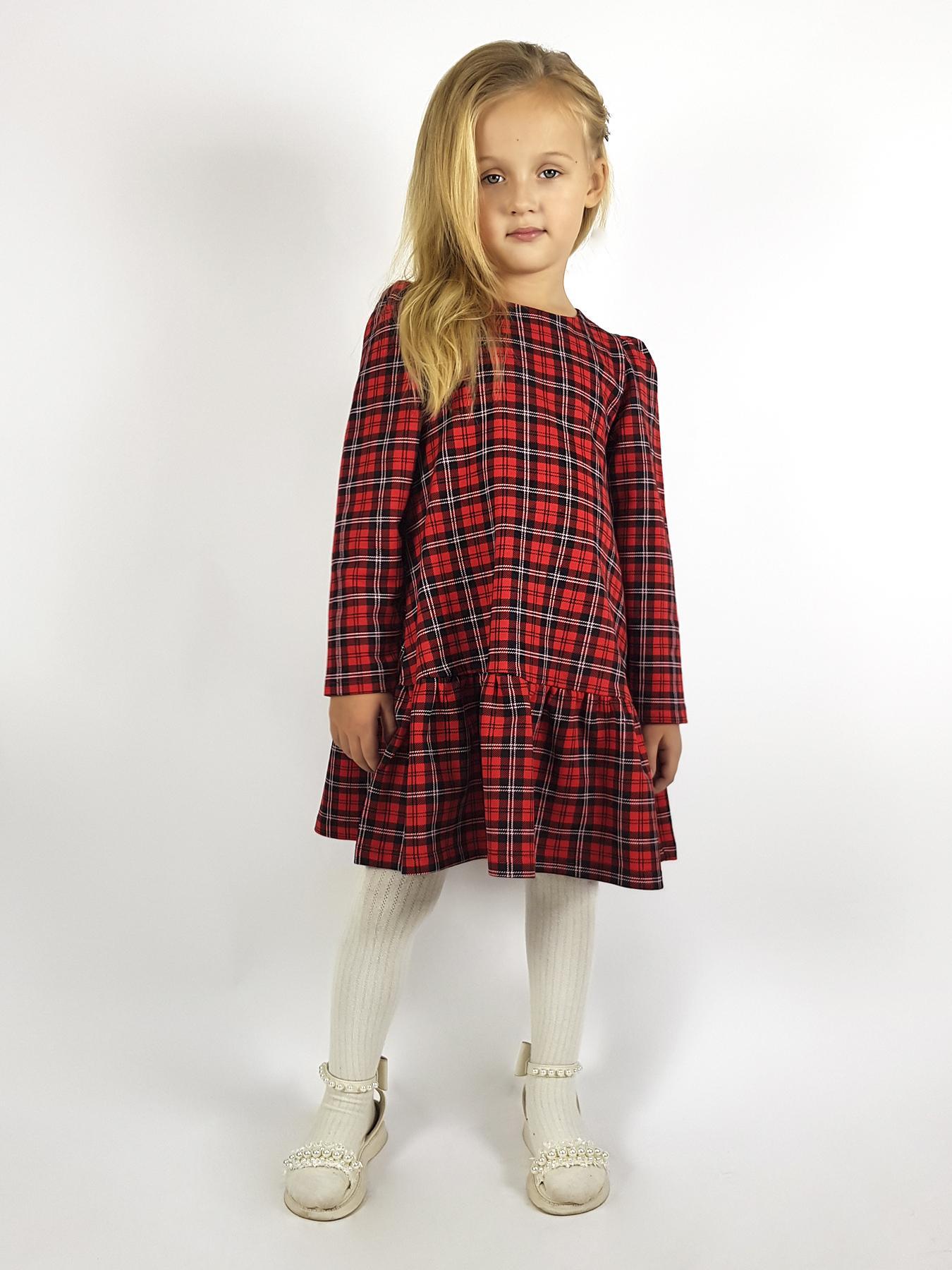 Платье-силуэт трапеция,длинный рукав,сборка по окату.Отрезной волан внизу в сборку.Горловина обработана обтачкой,застежка по спинке на пуговицу.