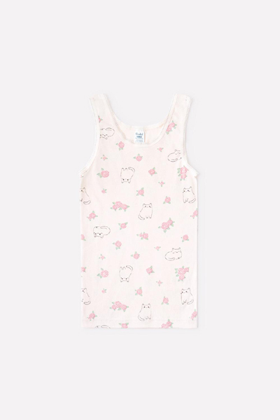 К 1077/котики в цветах на светлом жемчуге майка для девочки